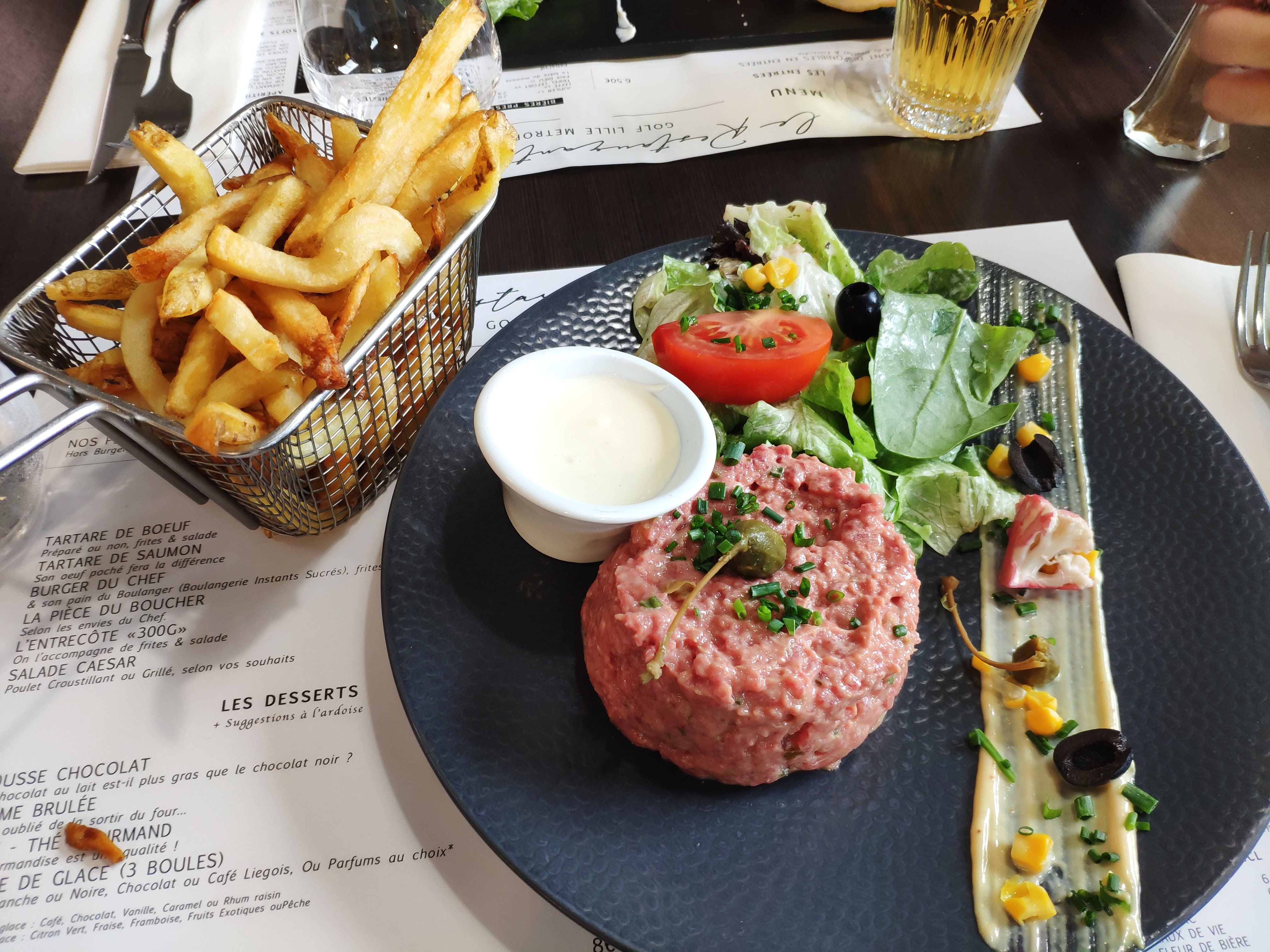 Service rapide et efficace, le filet américain accompagné de frites était très bon, ainsi que le café gourmand.