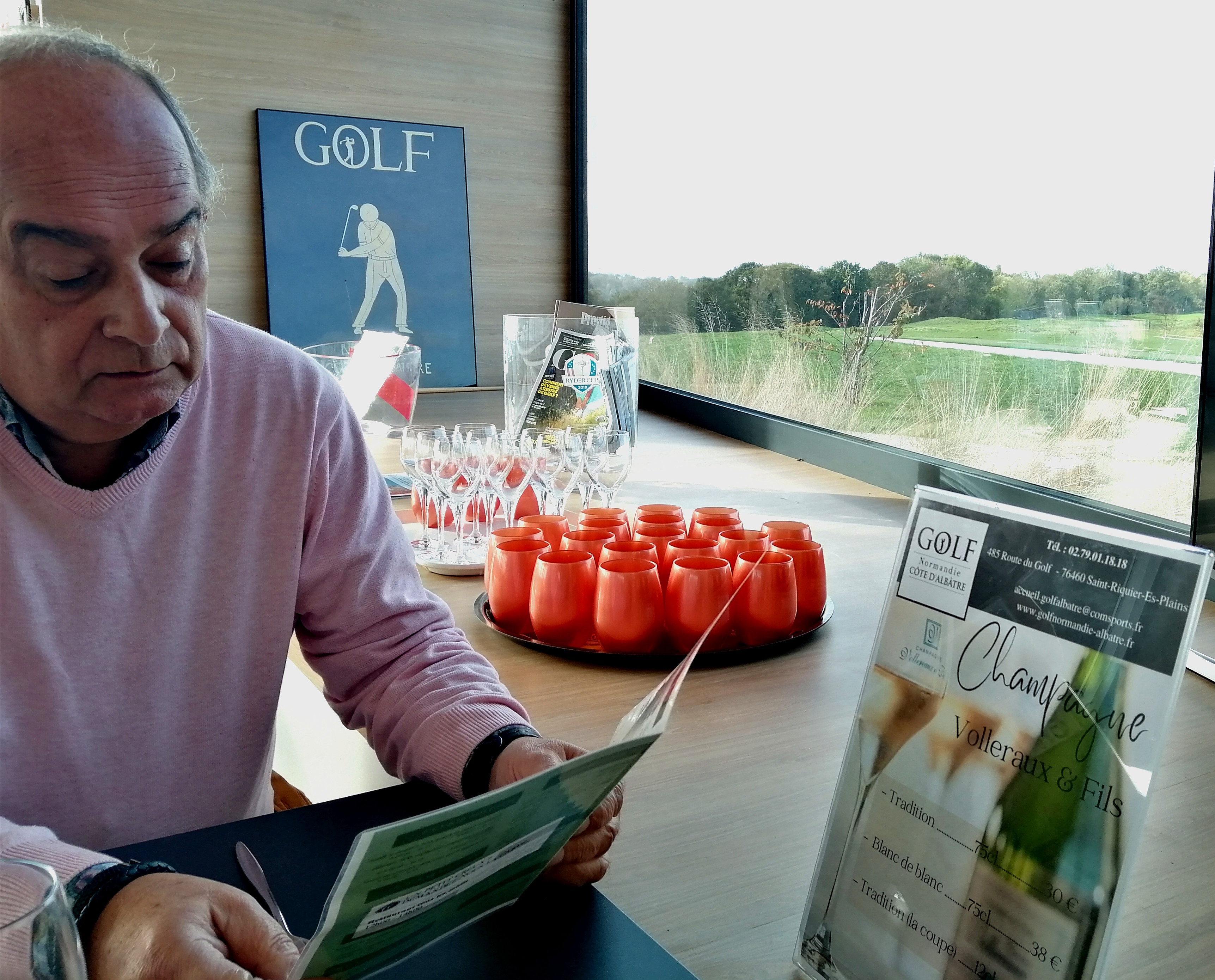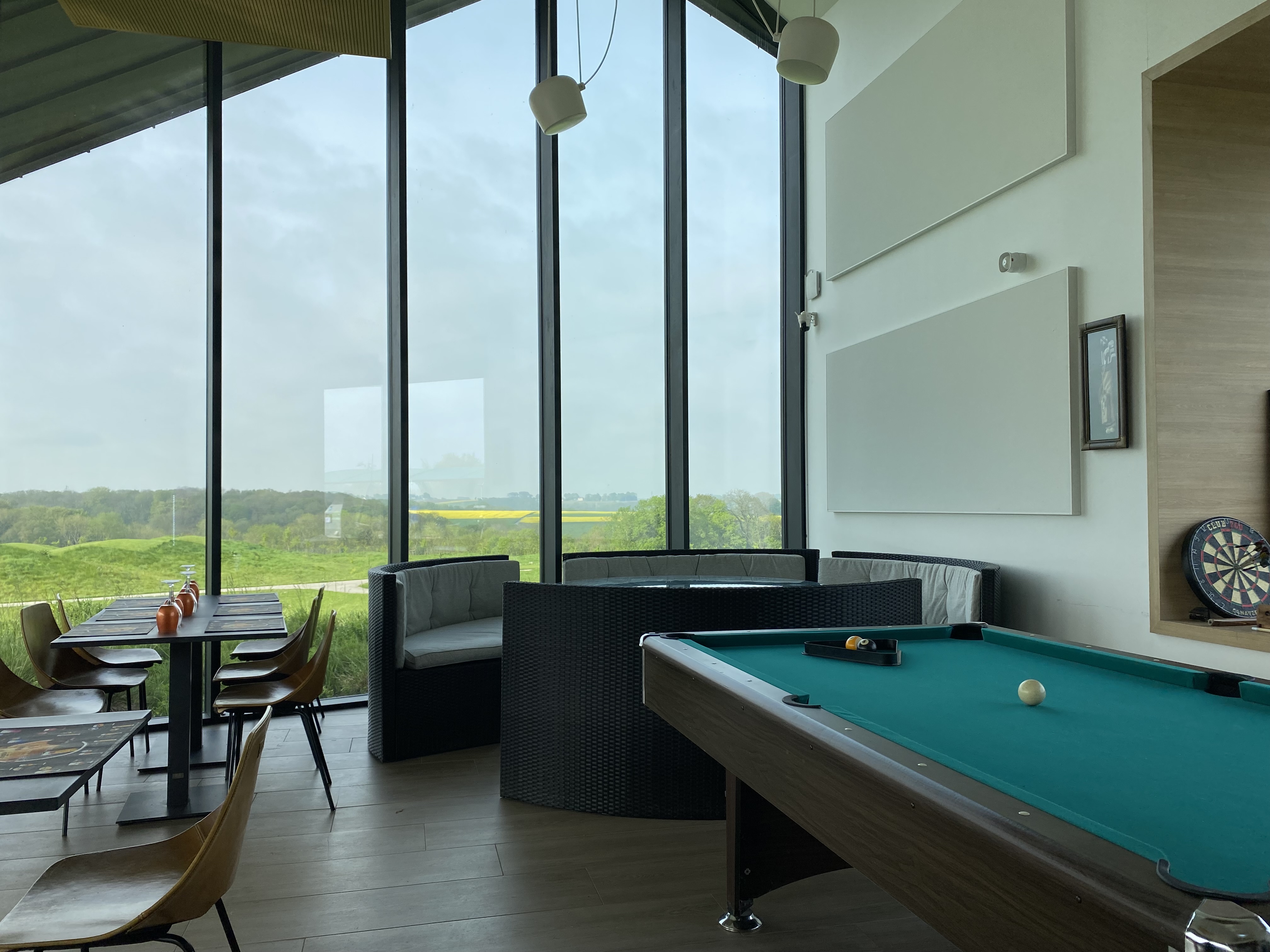 Le restaurant est une merveilleuse expérience Dans un décor design très élégant et ouvert sur le très beau parcours d’un golf ouvert en 2016 le restaurant du club house mérite le détour. un excellent menu à prix ultra compétitif nous a fait déguster un gravlax très goûteux suivi d’une volaille forestière avec une sauce incroyable et pour finir un somptueux flanc à la noix de coco. Service très efficace et très professionnel. A noter les vins et les alcools ont des prix très raisonnables ( nulle part on ne trouve une bouteille de champagne à 30€!) Aux beaux jours ( ça existe en Normandie) la très belle terrasse a une vue époustouflante….