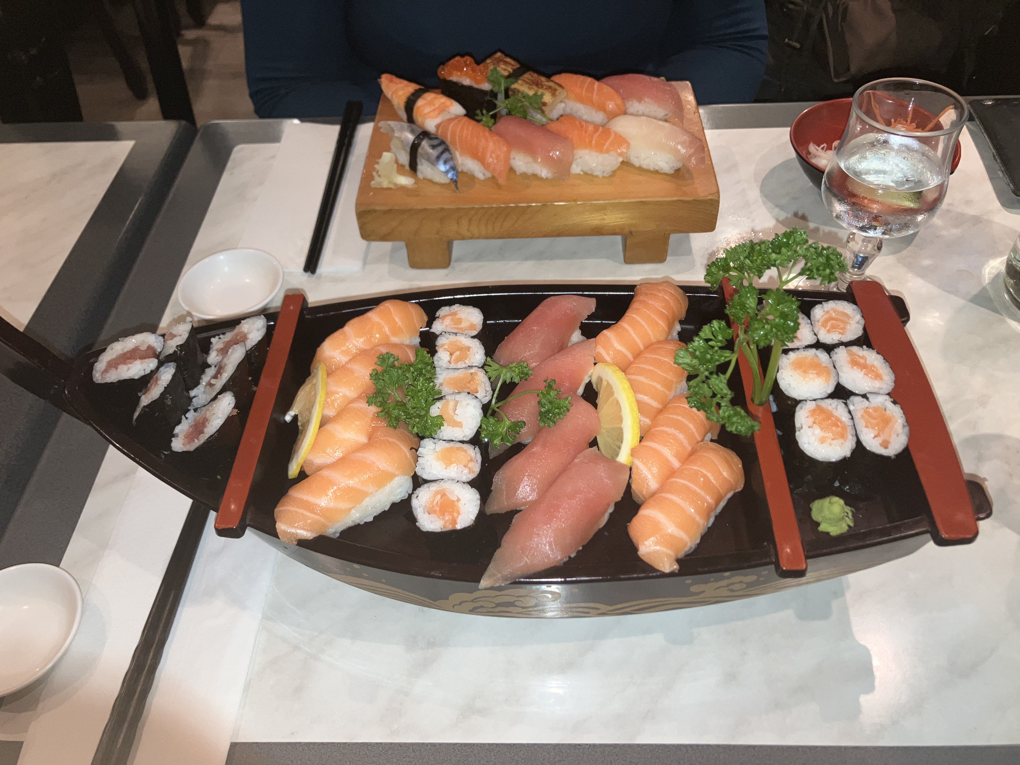 Excellents plats et personnel sympathique. Unique point négatif a été le prix, moyen rapport, nous étions trois grands mangeurs de sushi, l'addition a grimpé a 160€ sans que nous nous apercevions. In fine je pense que le prix était un peu trop grand pour la qualité, mais l'expérience était globalement satisfaisante.