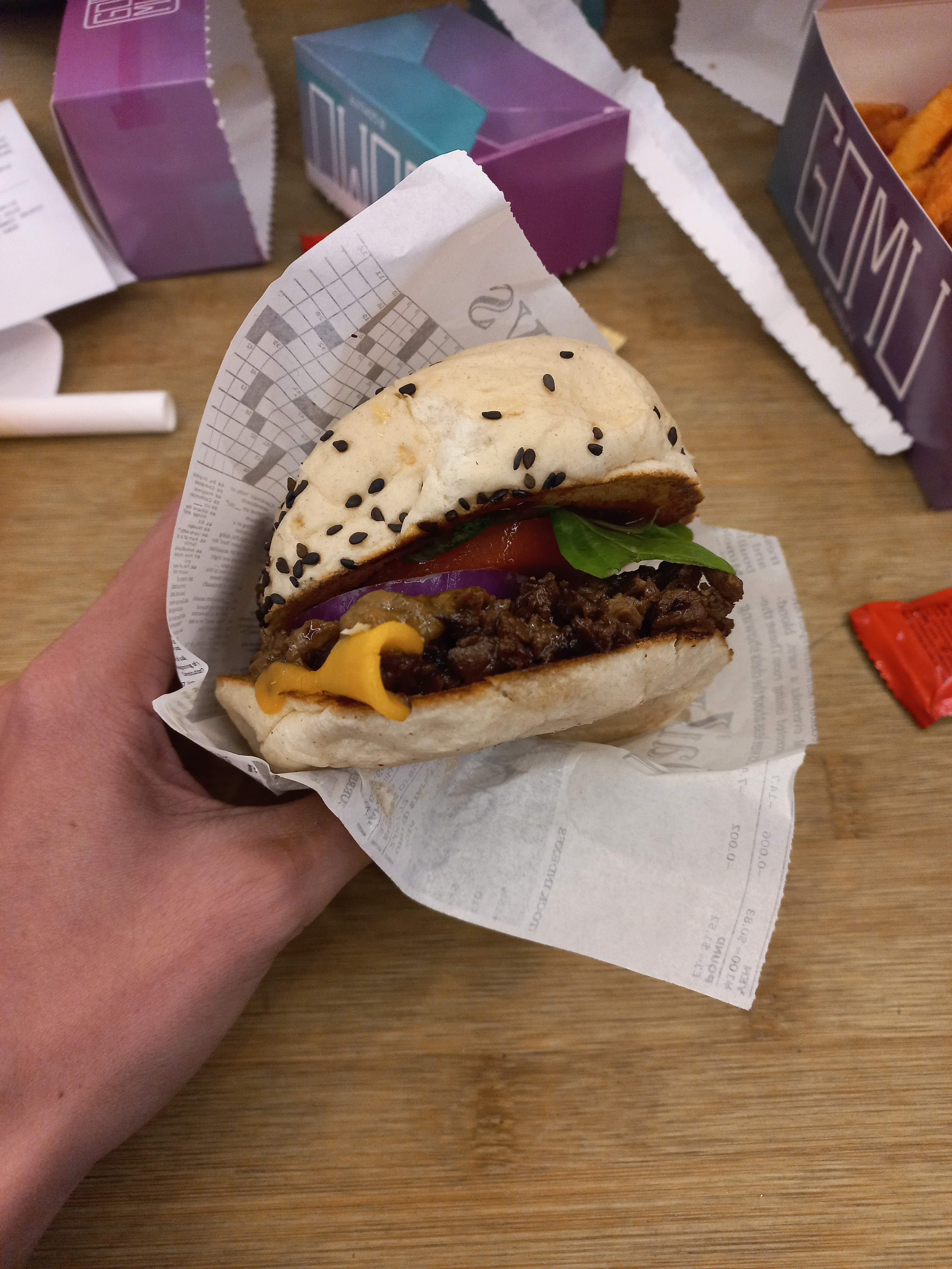 Burger super bon et pain moelleux ! En revanche on nous a dit qu’il allait avoir 30 à 40 min d’attente juste avoir avoir payé…