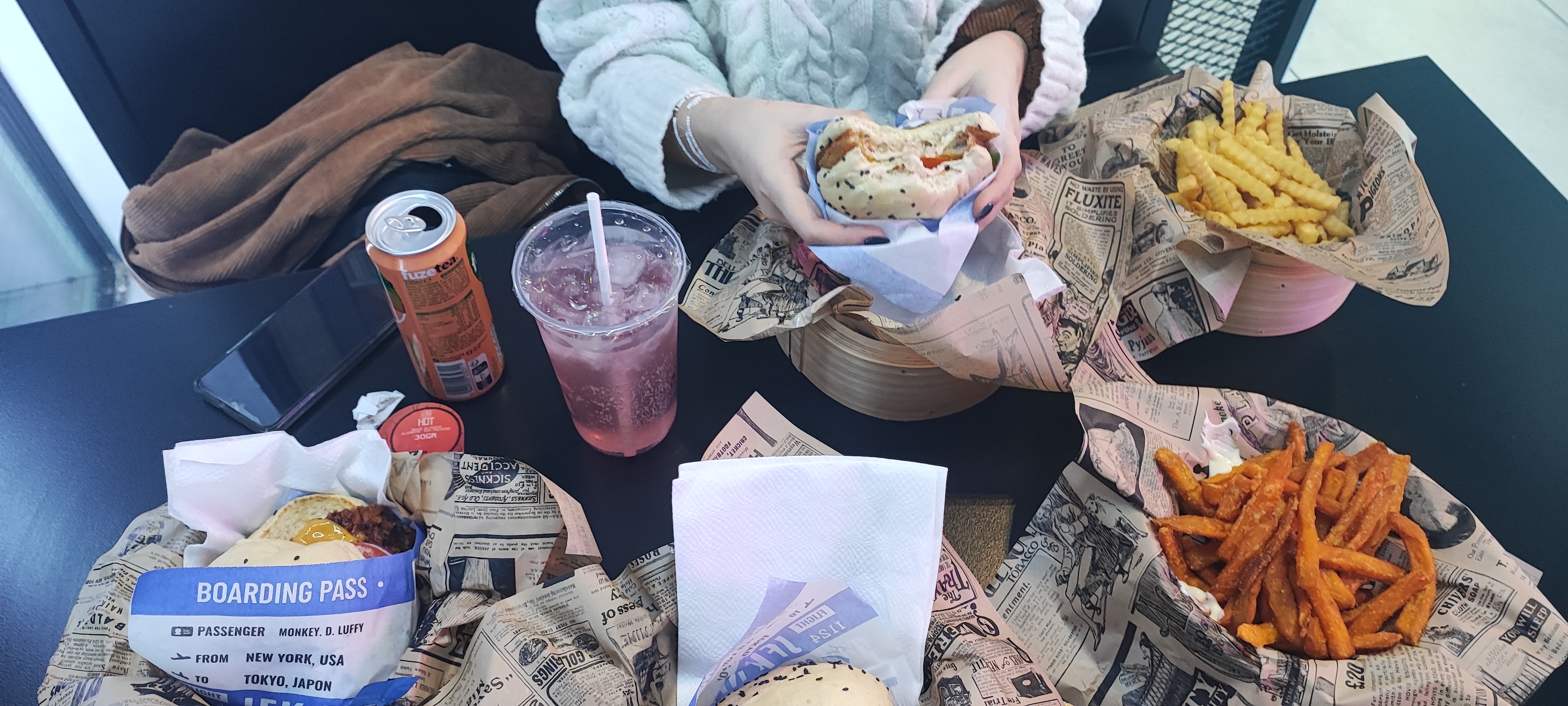 Fast food très sympa avec des petites références à One Pièce évidemment ! Légèrement chère mais ça se comprends à la qualité des burgers 👌 Un peu surchargé pour manger sur place, et un comptoir ou la nourriture attends et où les gens peuvent discuter à côté (possibilité de postillons). Mais malgré ça et la légère attentes, la nourriture reste excellente 🤩