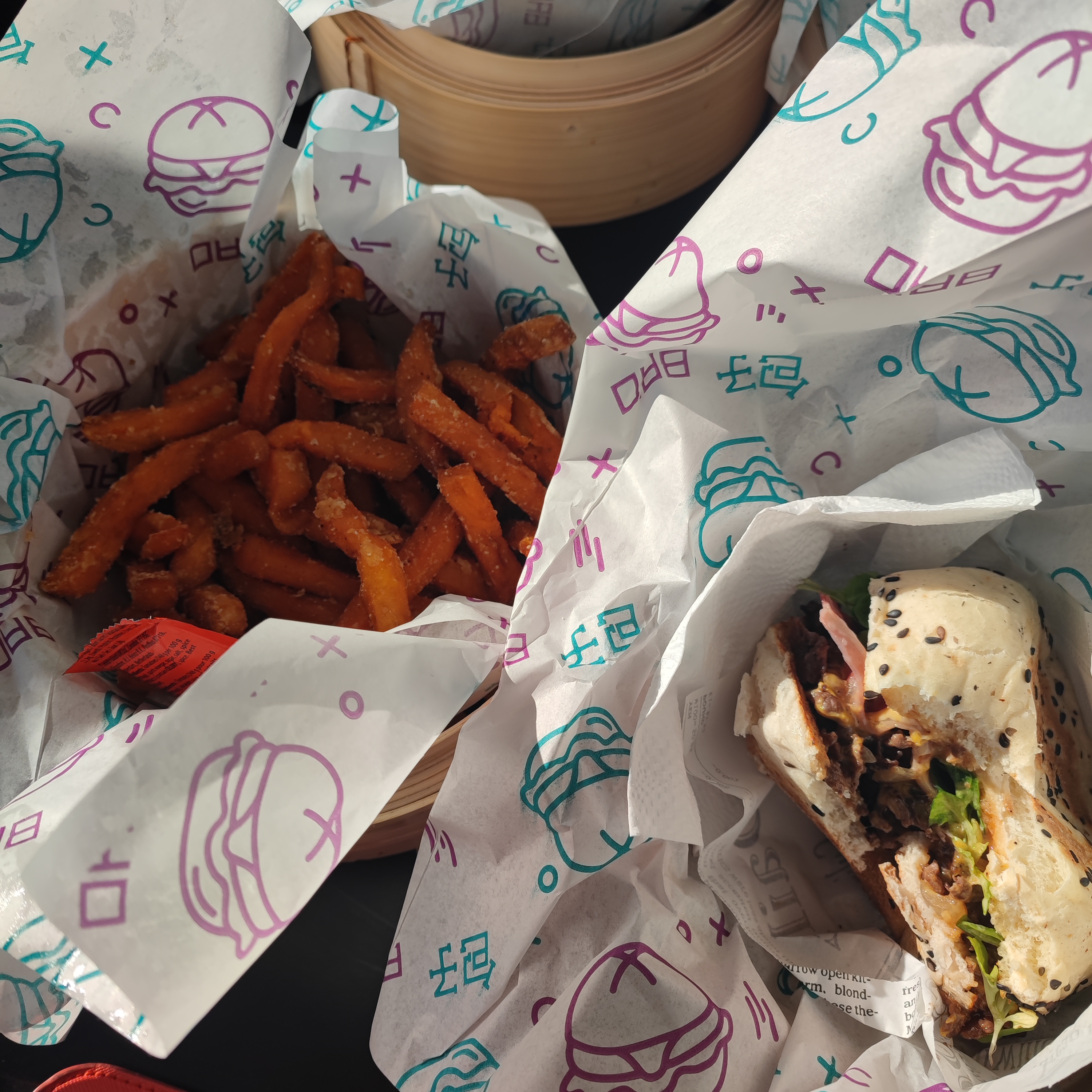 Baoburger qui donne très envie… cependant 1h d’attente, les boissons ont été servies 1h avant donc plus très fraîches malheureusement. Lors de la remise de commande nous demandons les sauces comprises avec les frites, il n’y en a plus et il faut payer pour les autres… nous mettons cela sur le rush de l’ouverture mais ce n’est pas très commercial au vue de l’attente et du prix de notre commande. En espérant avoir une meilleure expérience à l’avenir. Merci à Elina pour son accueil.