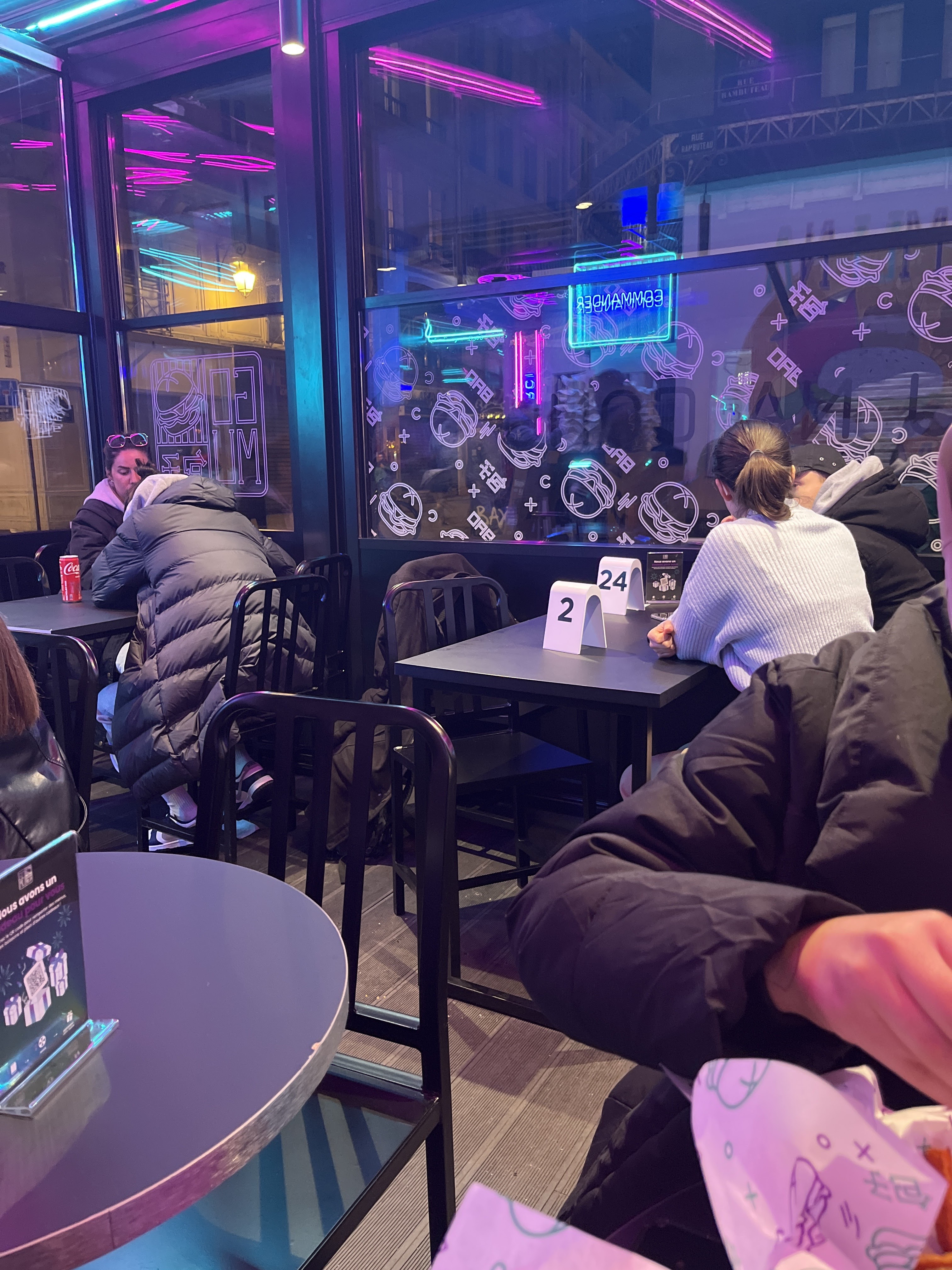Lieu très prisé, des tables se libèrent plus ou moins vite Les bao burgers sont corrects, les bao sont un peu pâteux, il manque un peu de sauce, les frites sont correctes, la galette du burger végé est pas mal