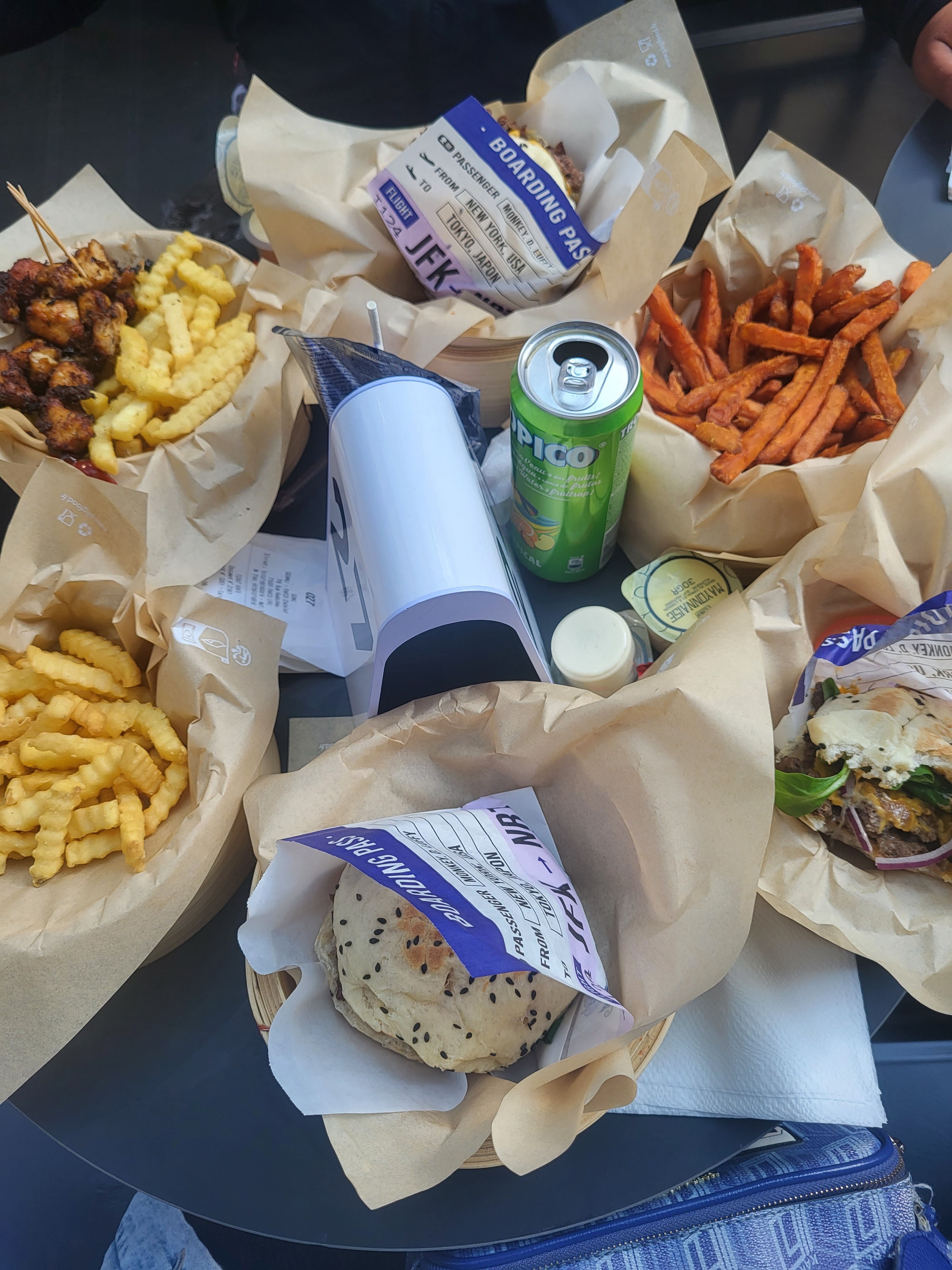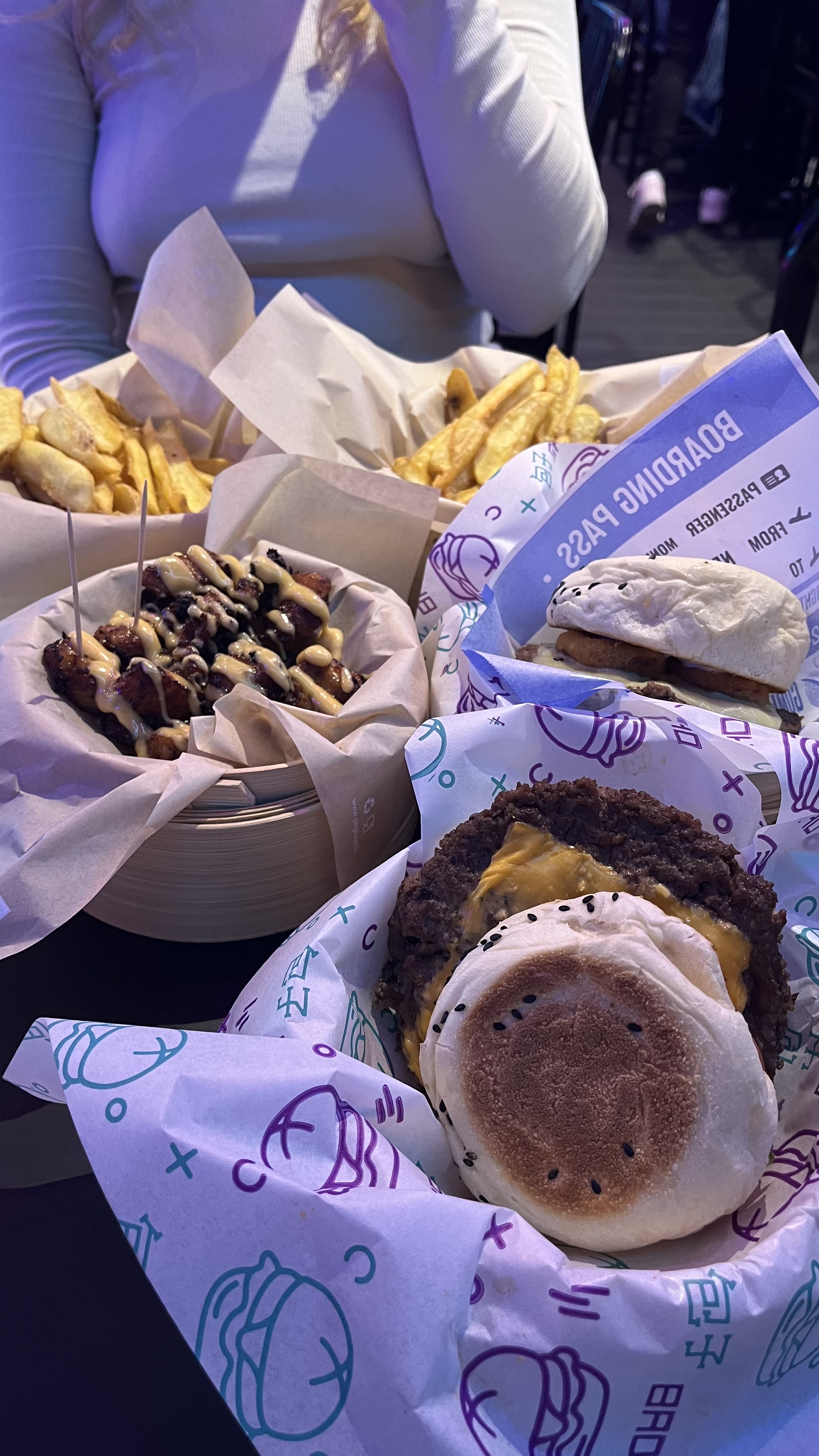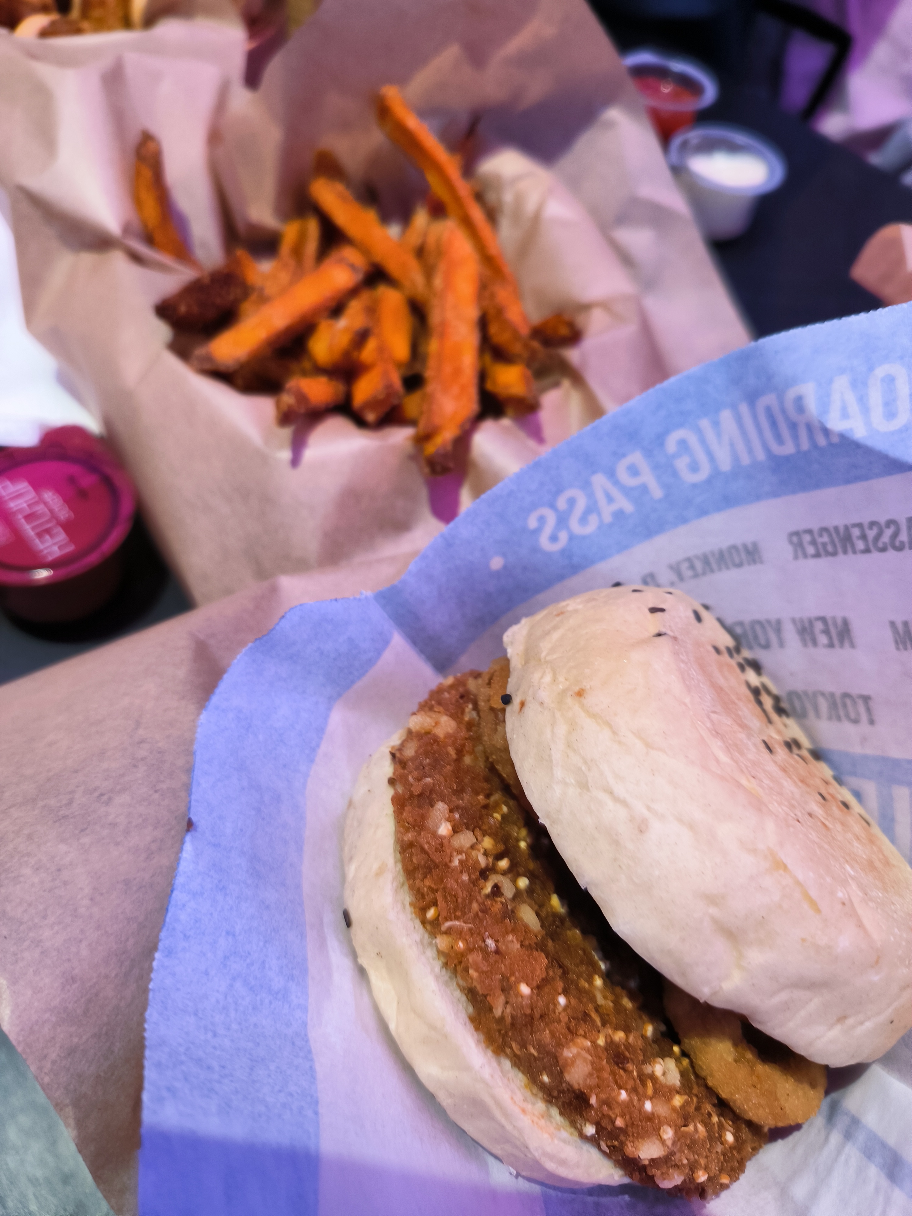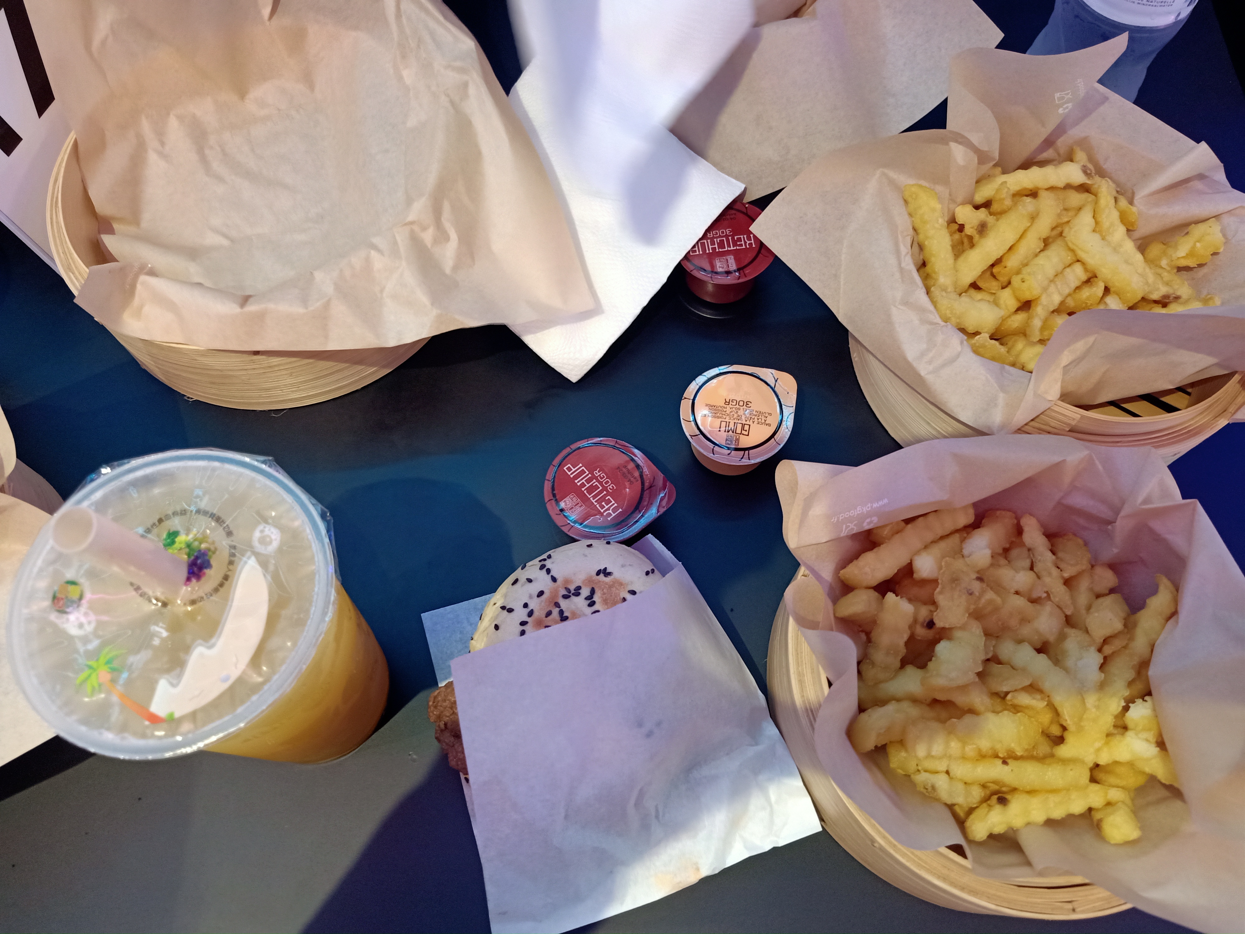 sur-côté 🙃 Ayant de grandes attentes pour les burgers ( burger cheetos ), je trouve le goût très banal, même presque fade... Le système est tout de même correct, avec des bornes et un beeper.