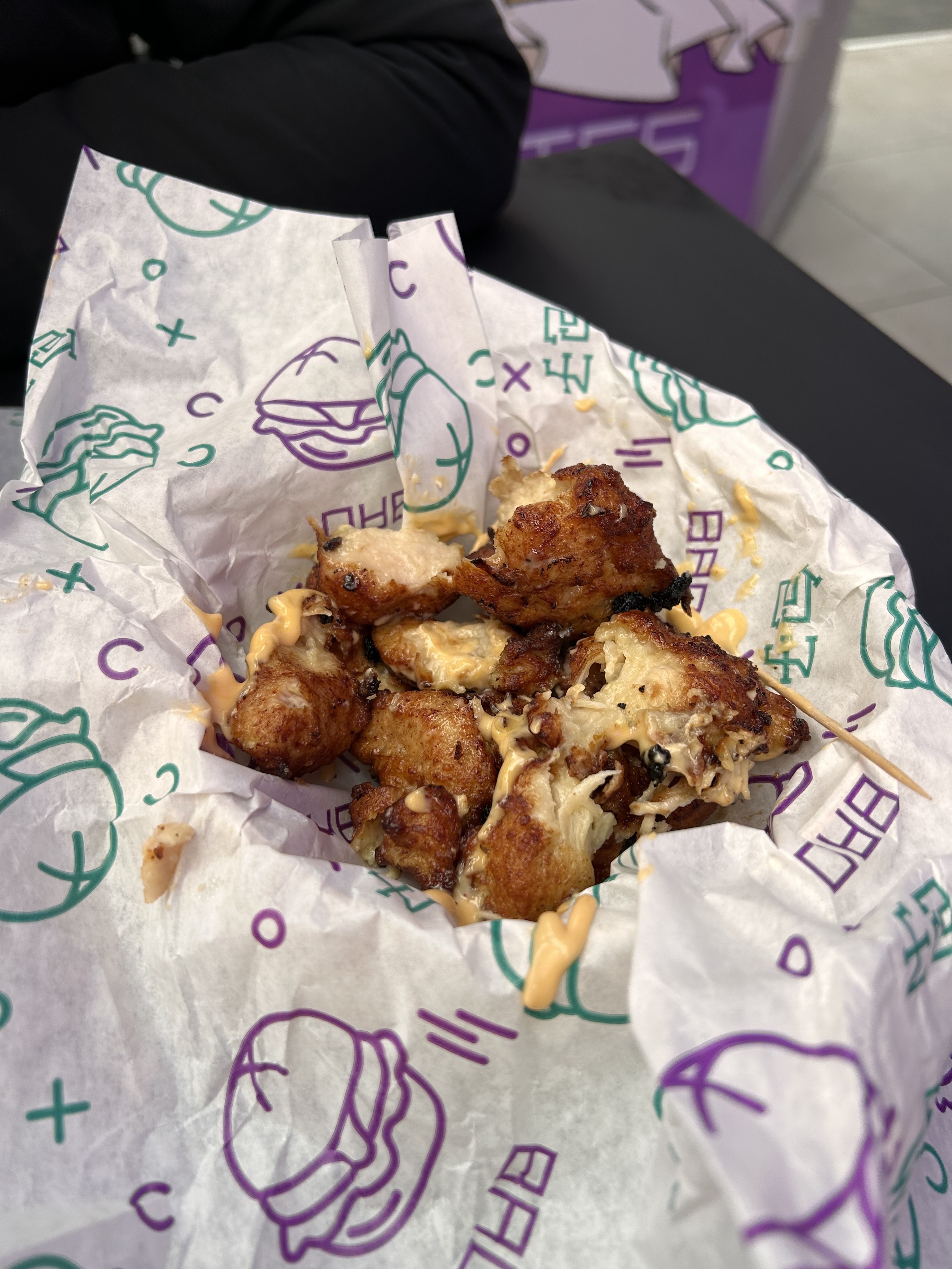Le burger n'a rien d'exceptionnel, les frites de patates douces sont correctes, les petites boules de poulet en entrée sont bonnes. L'ambiance est très fast food et un peu cracra. Bref ça passe mais c'est pas ouf.