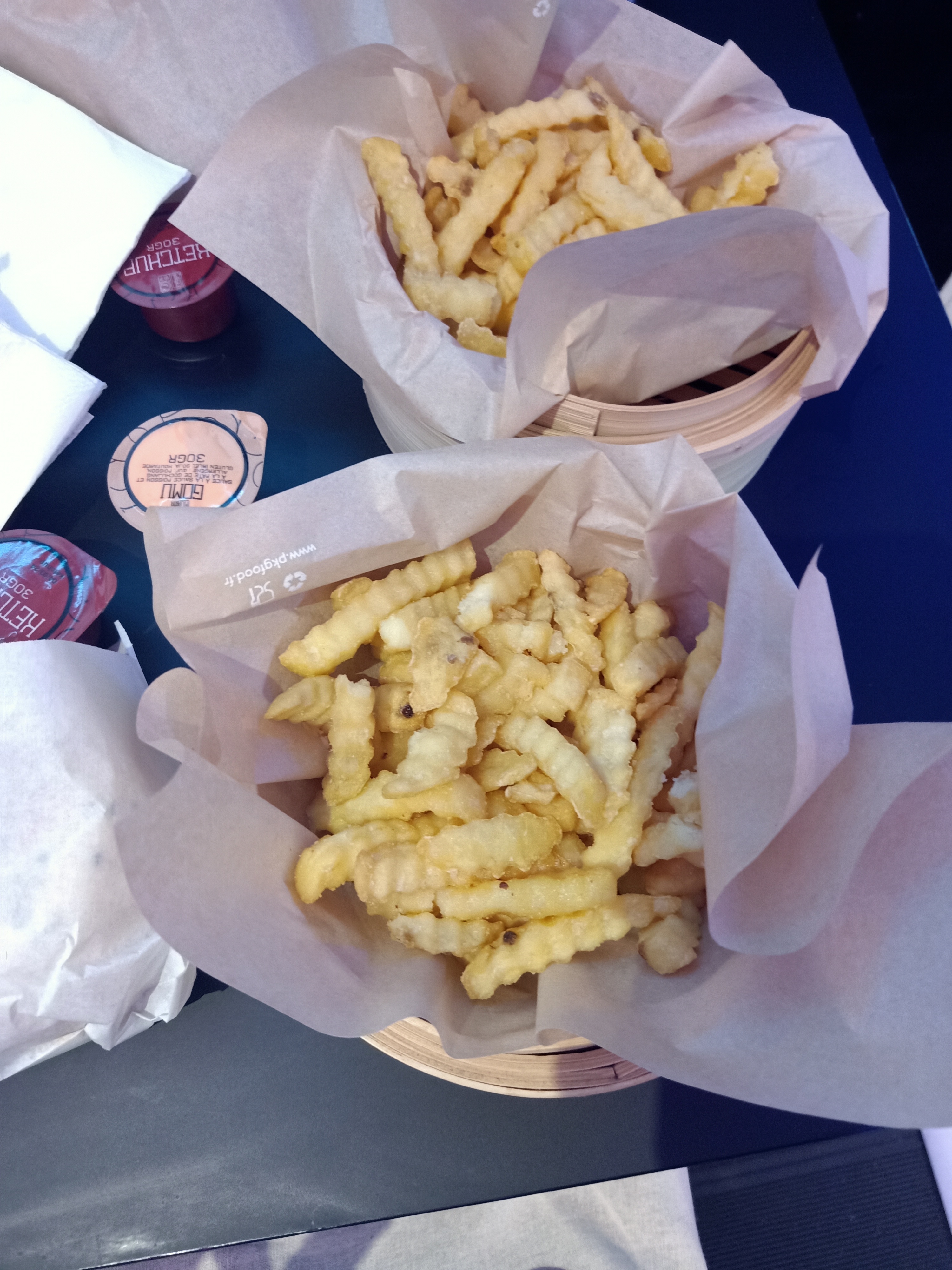 Le bao à la crevette était bon, les frites parfaites bien qu’un peu trop salées, par contre la sauce mayonnaise est beaucoup trop difficile à ouvrir et enfin, la musique est vraiment trop forte !!