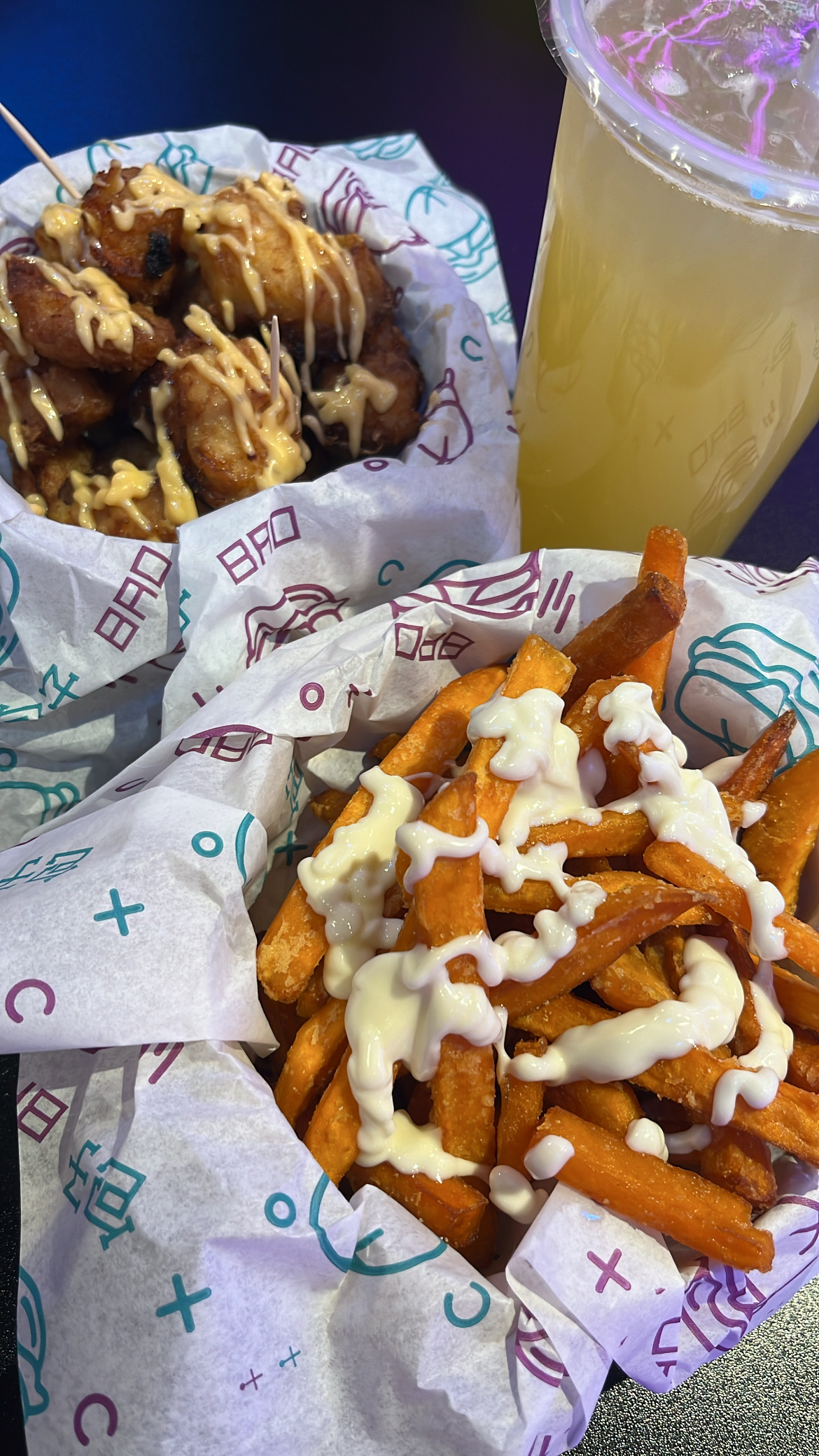 Hier étant mon anniversaire mon chéri et moi sommes venus découvrir Gomu , a l'entrée on commande sur écran tactile ont n'a juste a prendre un chevalet c'est très pratique sa permet de bien personnaliser sa commande, et moi qui aime le mélange un peux sucrer salée je n'es pas était déçu entre le poulet tendre et caramélisées, le burger mozza ou la mozzarella était croustillante mais fondante à souhait le pain qui es moelleux pour moi ayant des soucis de dents c'est parfait et les frites a la patate douce un régal et le bubble tea surprenant ça sera avec grand plaisir que nous reviendrons ☺️ PS ; le concept où ont peut mangé dans des sorte de bulles et génial moi qui n'aime pas forcément manger quand y a beaucoup de monde ☺️