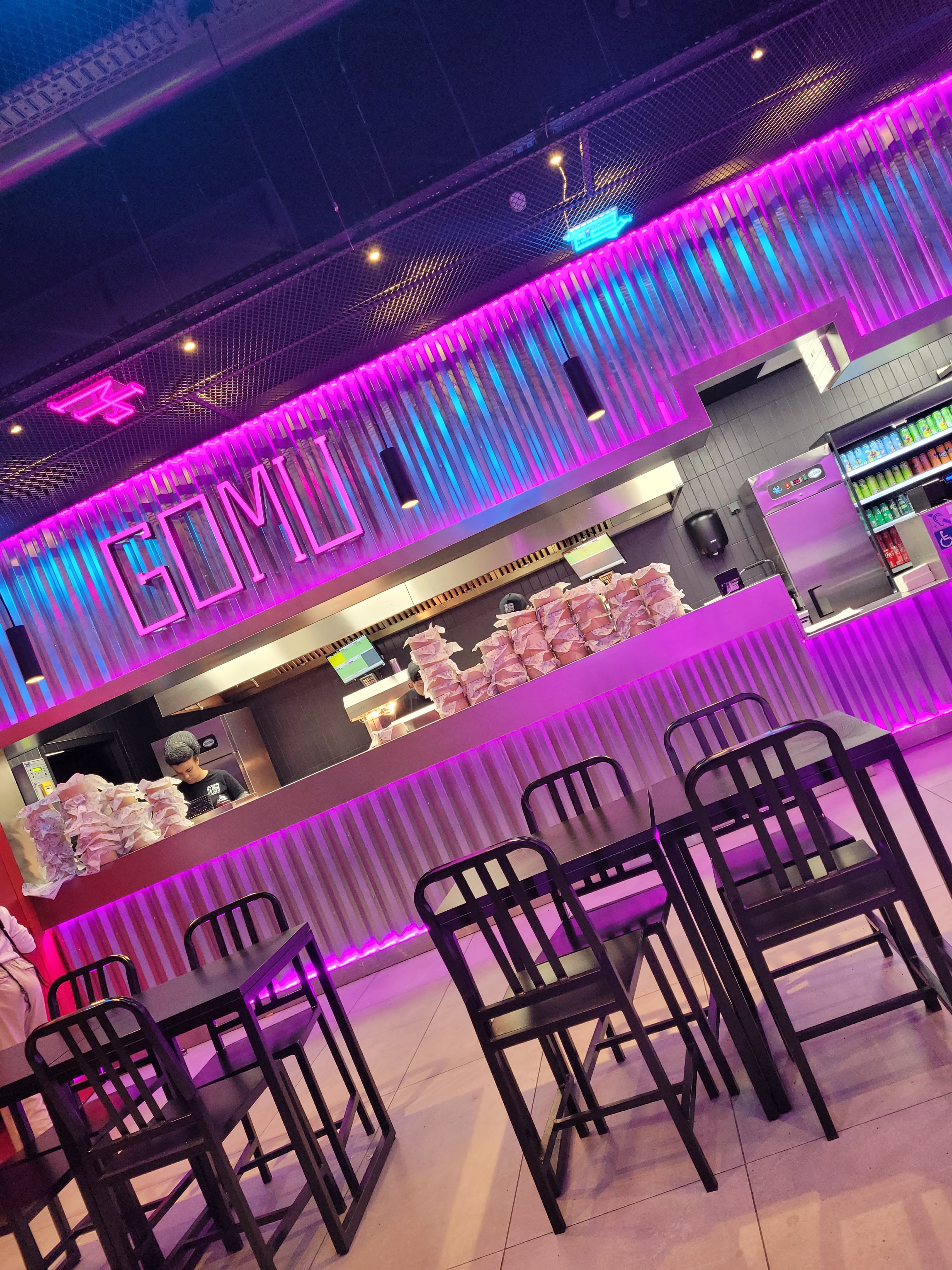 Première fois que j'essaye un gomu, beaucoup de monde car victime de son succès. Pour ma part, niveau gout c'est incroyable, il y a beaucoup de choix, beaucoup de saveurs, la direction artistique est très belle et originale. Le seul bémol, le prix c'est quand même très chère pour un menu burger, sans compter les sauces payantes qui je trouve n'ont pas leur place dans des fast-food et une sauce ar menu pour le prix que c'est c'est quand même assez élevé.