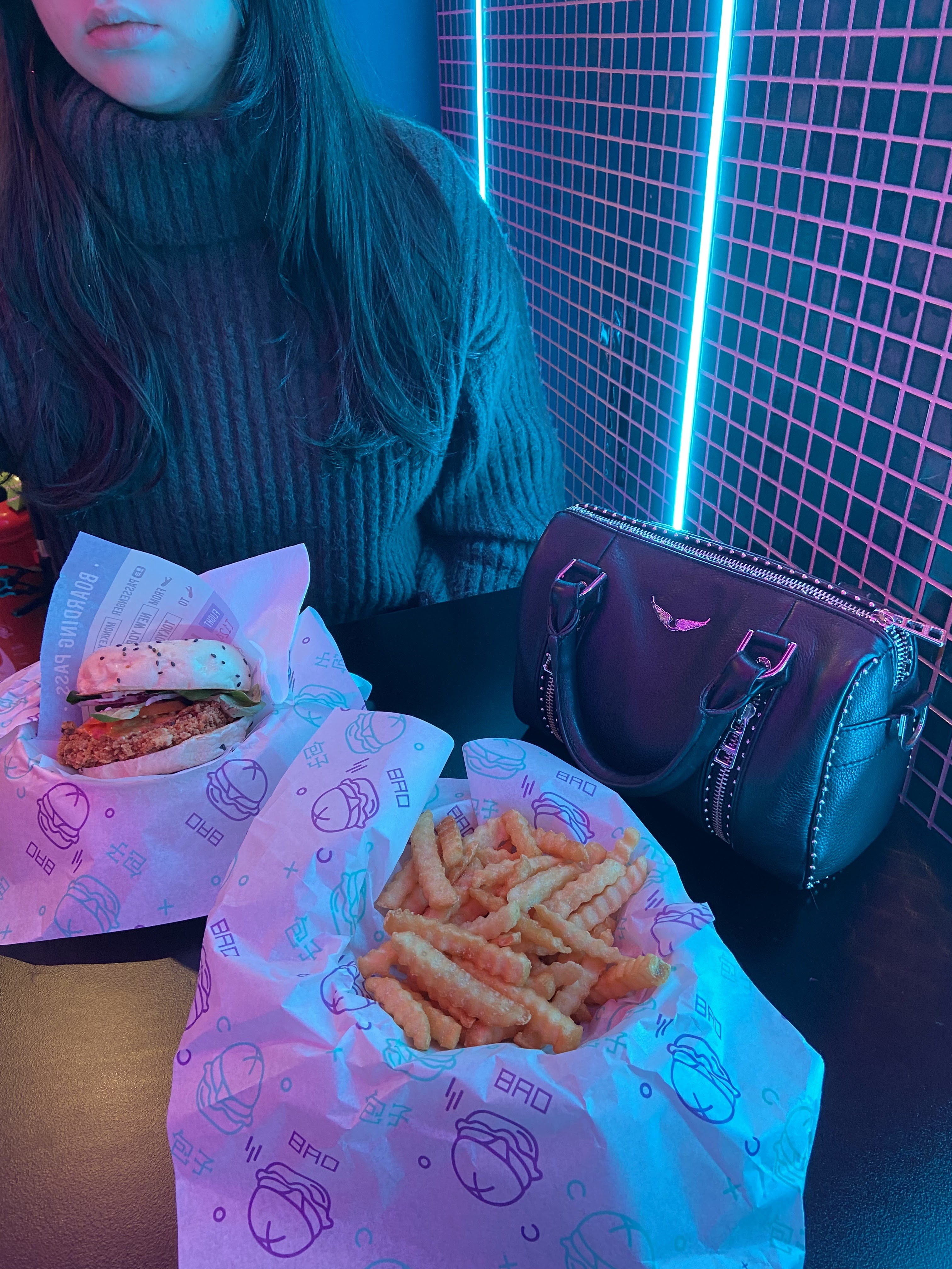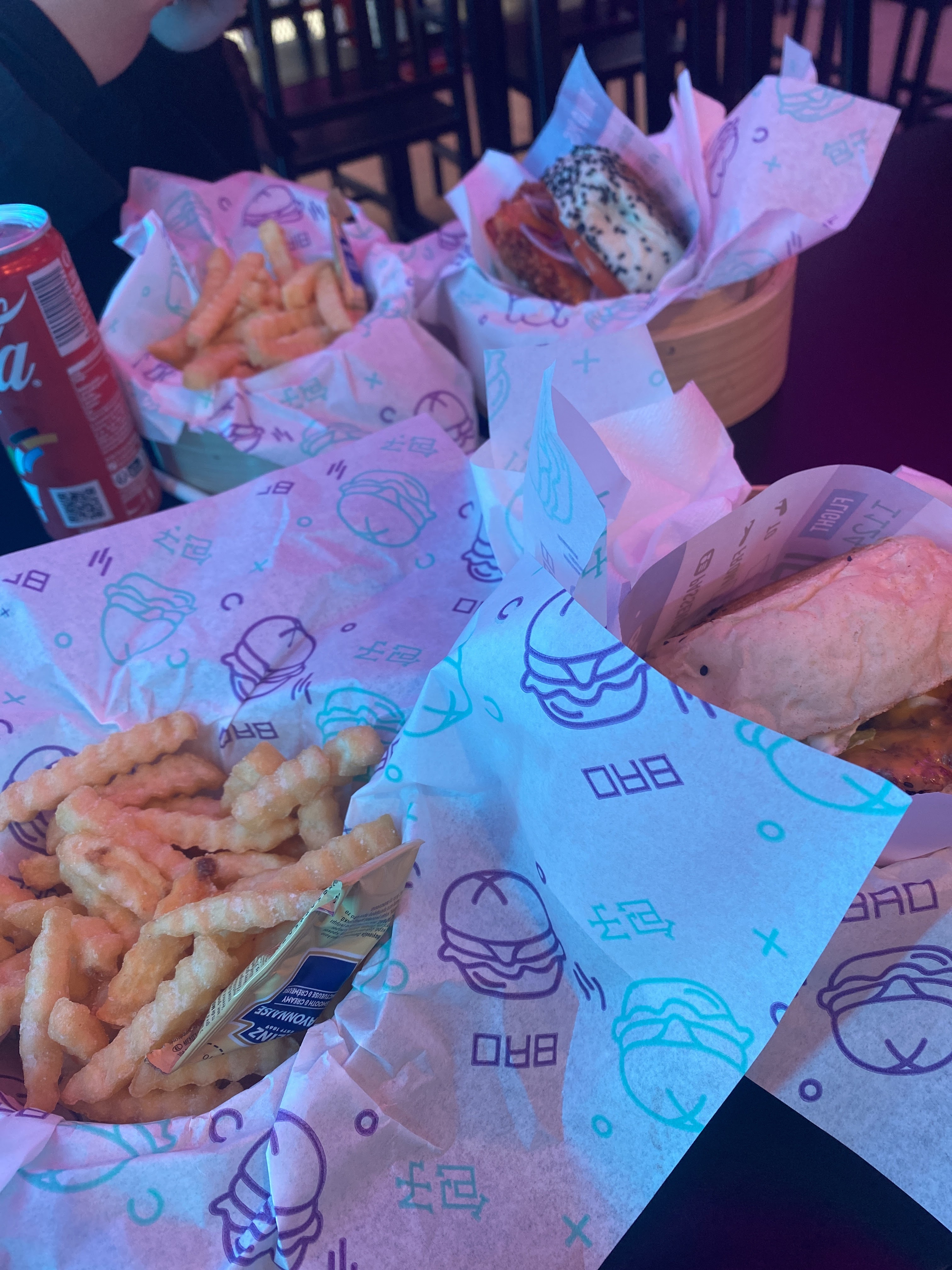 Restaurant de Burger avec des pain Bao. L'ambiance et la déco sont super sympa, rempli de néons. Les Burger sont super bon, legé avec le pain bao Et les garnitures peuvent être modifier comme ont le souhaite. J'ai accompagné de frites de patate douce et d'un boisson tropical. C'était très bon mais un peu chère.