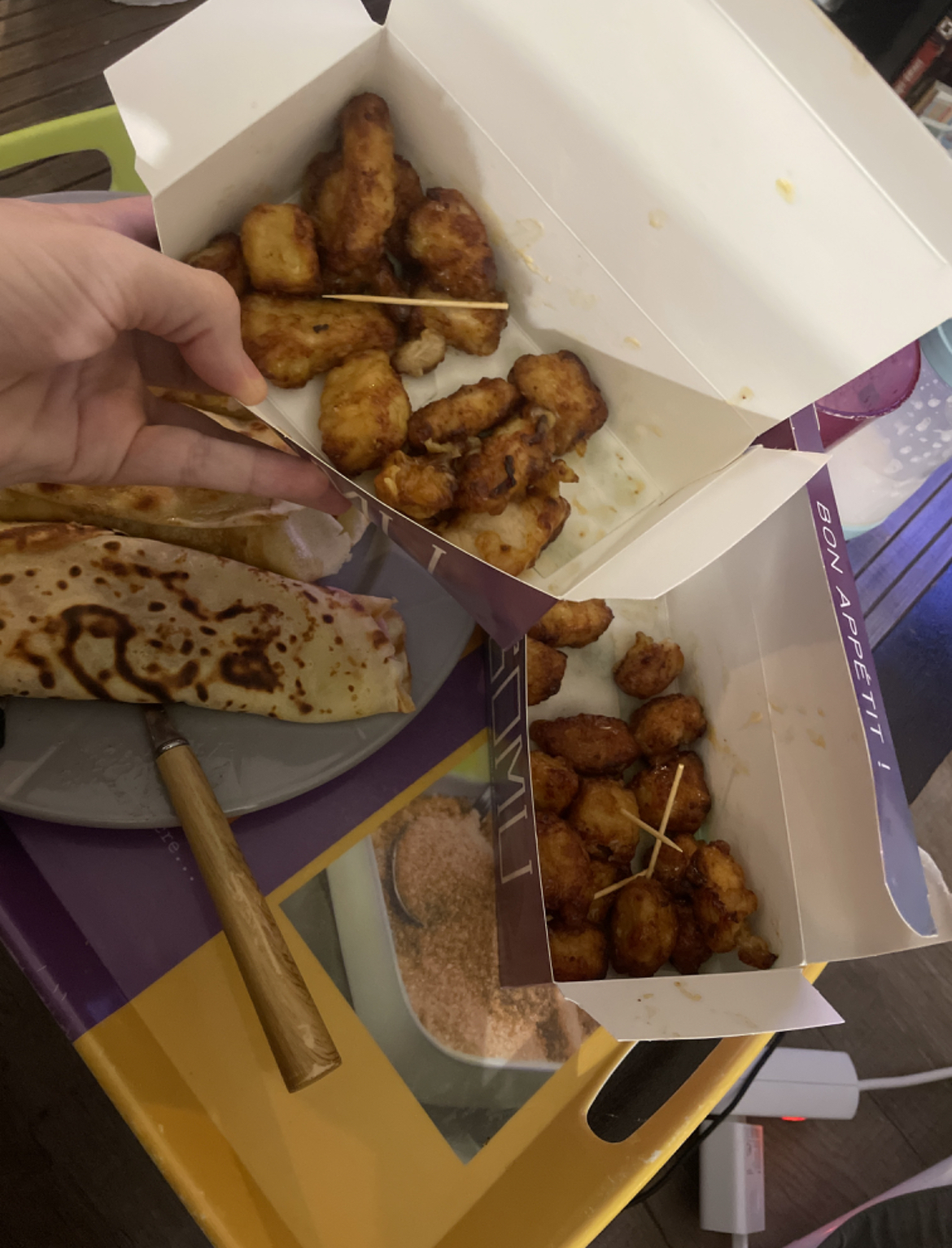 Quellesl saveurs ! 👃♨️ (Goûts exclusif) Un service animé ! 💫 (Des serveurs bienveillants) Le ➕️ (Un plat offert par cause de l'oubli d'une commande): des morceaux de poulet caramélisé