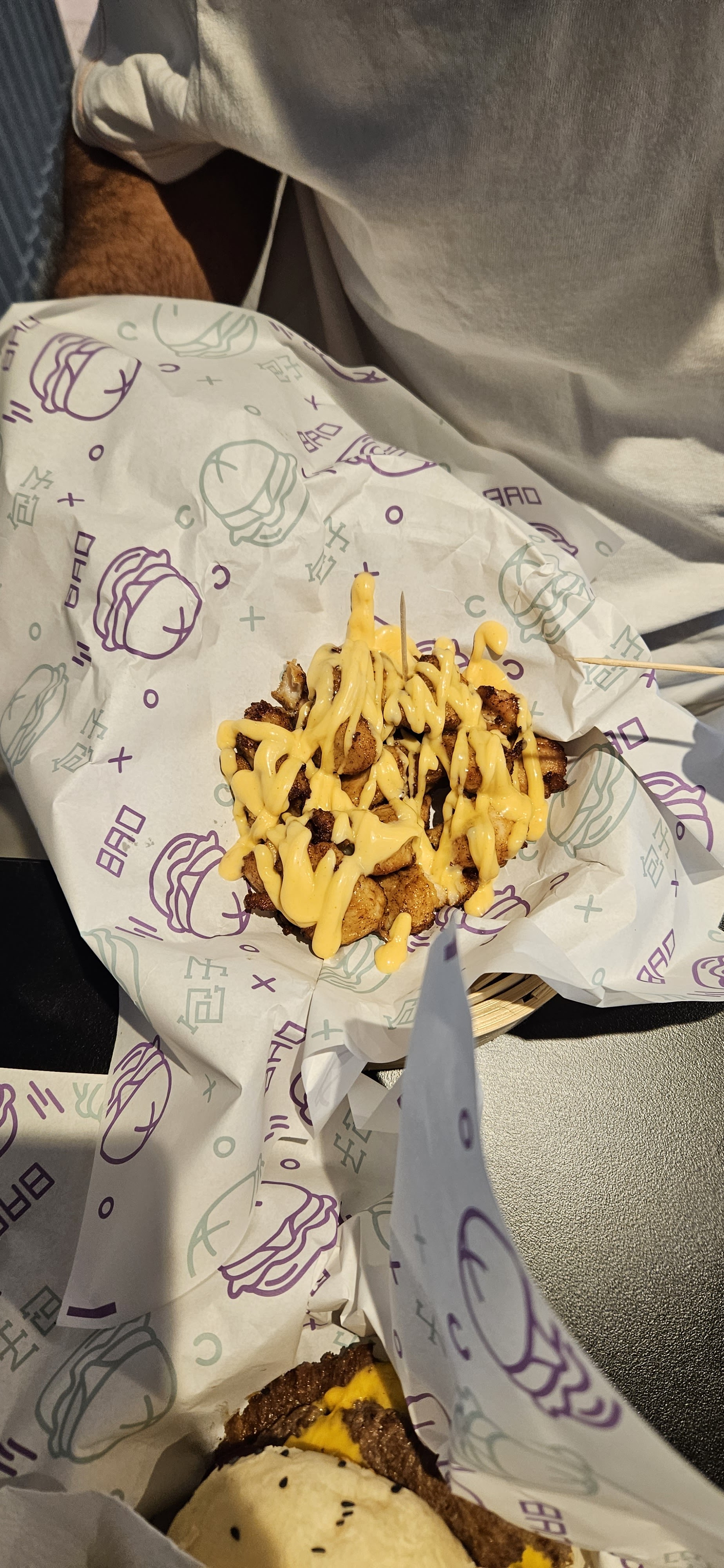 Le meilleur Bao Burger que j’ai mangé. Le pain est excellent et le poulet était succulent. Je vous conseille aussi en accompagnement Gomu Poulet qui est servi avec une petite sauce incroyable. Je reviendrais sûrement 👍