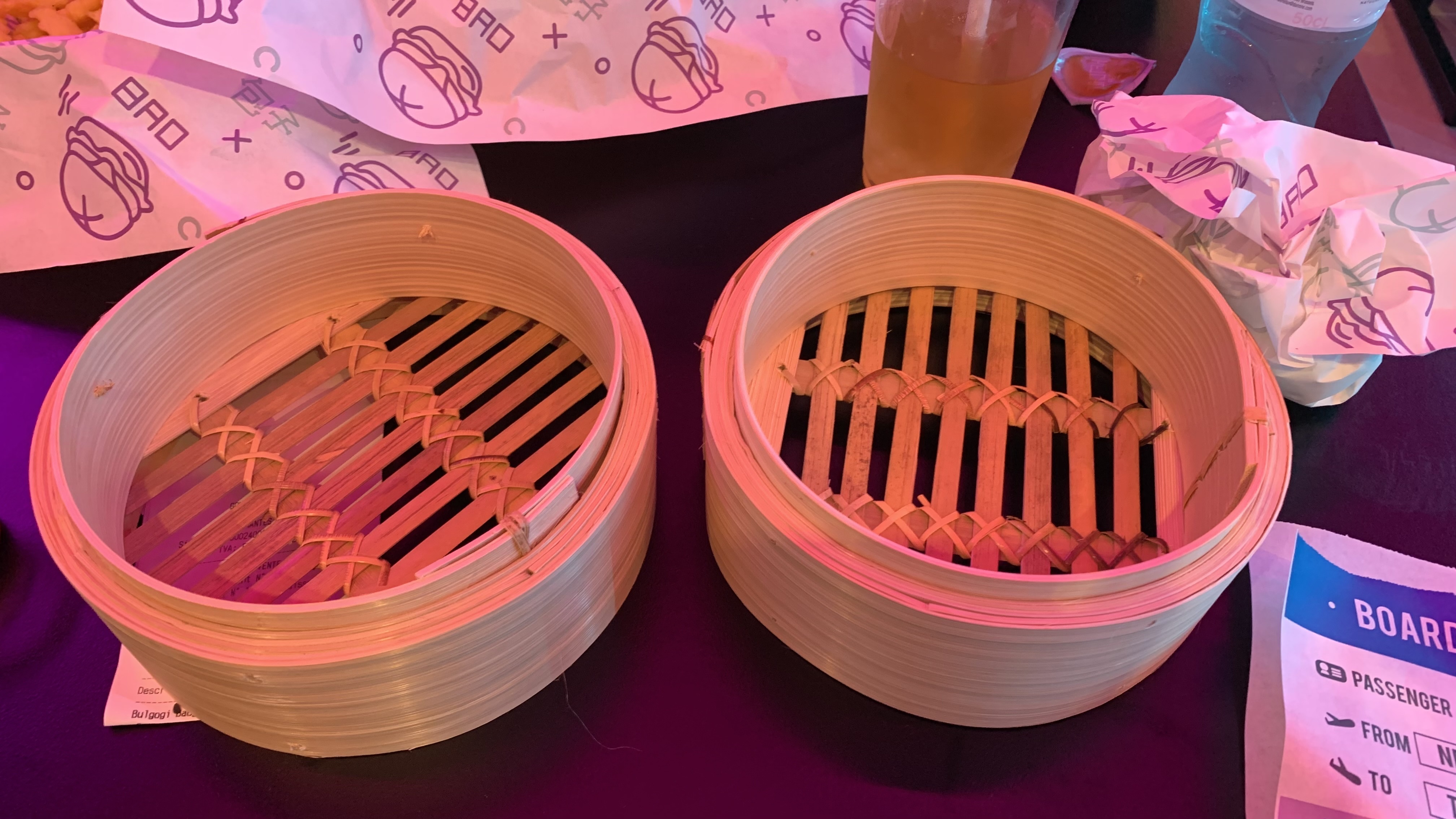 Venu 2 fois. Une première fois en solo pour un menu et goûter les produits : très bon, service rapide, concept intéressant dont on paye le prix. Une seconde fois à 4 pour 4 boissons et 2 baos nutella : serveur sympa mais qui cumulait les erreurs, musique beaucoup trop forte et sans rapport avec le concept. Aussi, corrigez votre affichage « Ne jetez pas vos paniers svp » Bref, vous tenez un truc chouette mais soyez exigeants si vous voulez tenir sur la durée.