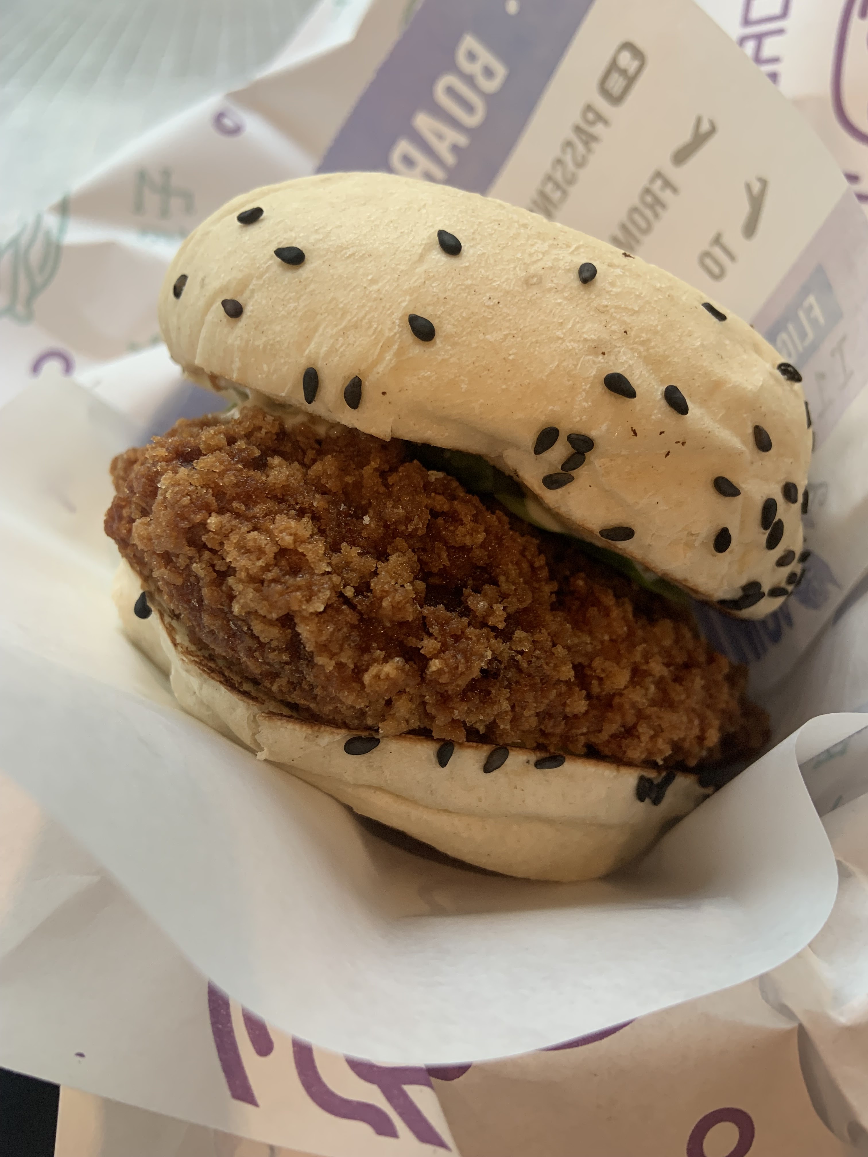 Le pain bao n'apporte rien de spécial et n'a pas vraiment de goût. La viande et la marinade du boeuf bulgogi est bonne (j'aimerais bien connaître l'origine de la viande par ailleurs). J'ai aussi pris le poulet frit et j'ai été agréablement surprise, les morceaux sont caramélisés dans une sauce sucrée salée au soja, ça change des autres fast food. Après voilà, le concept c'est le pain bao pour surfer sur les tendances et c'est pas terrible en goût, je préfère un pain classique ou potato bun.