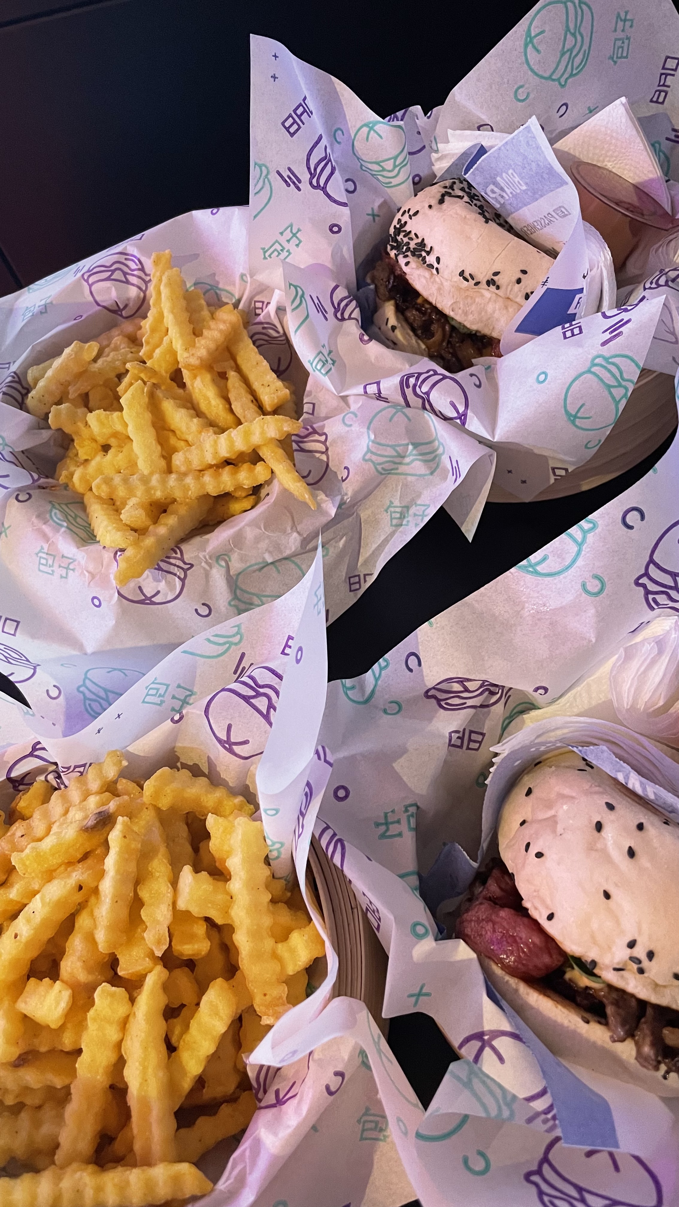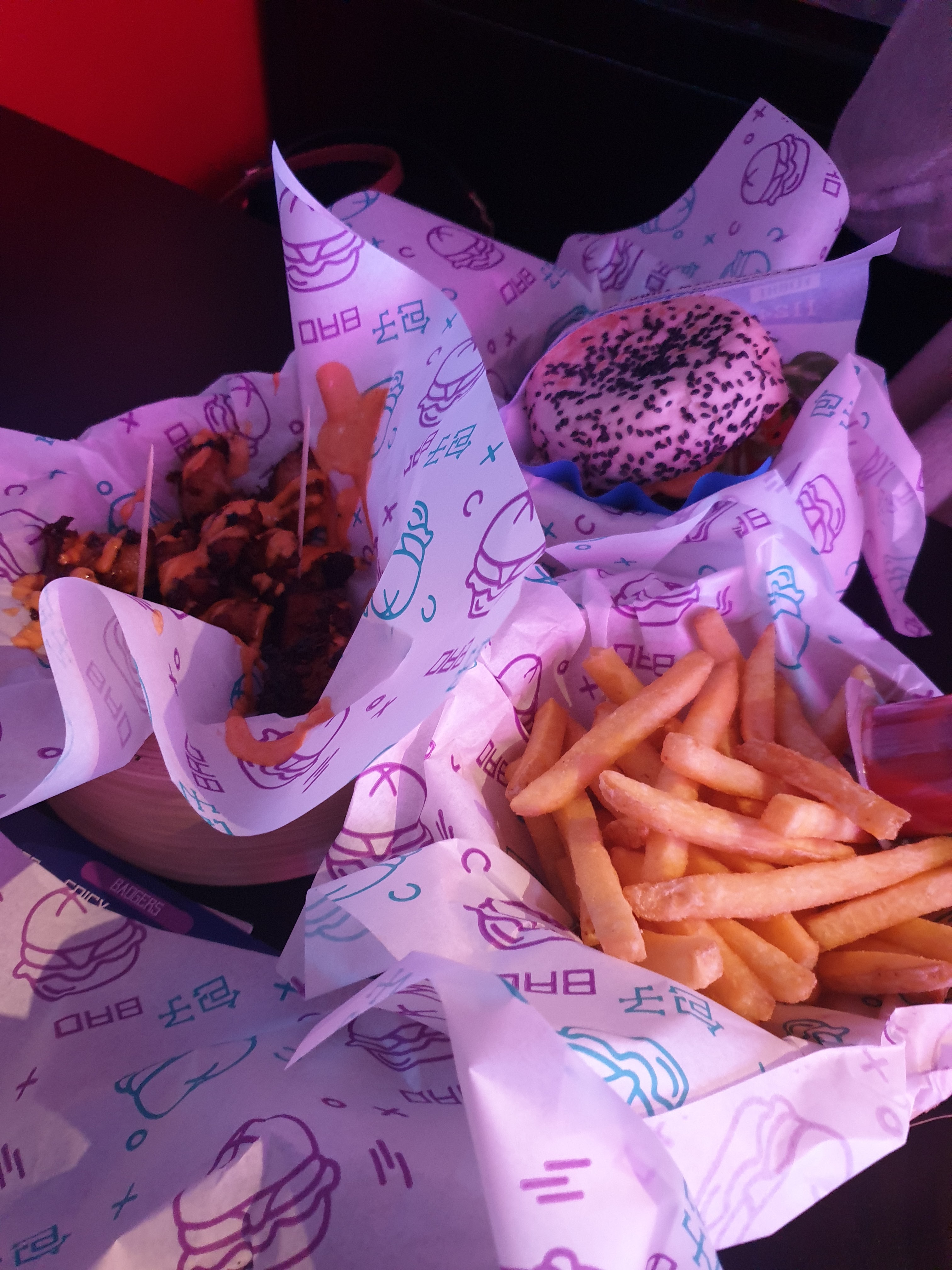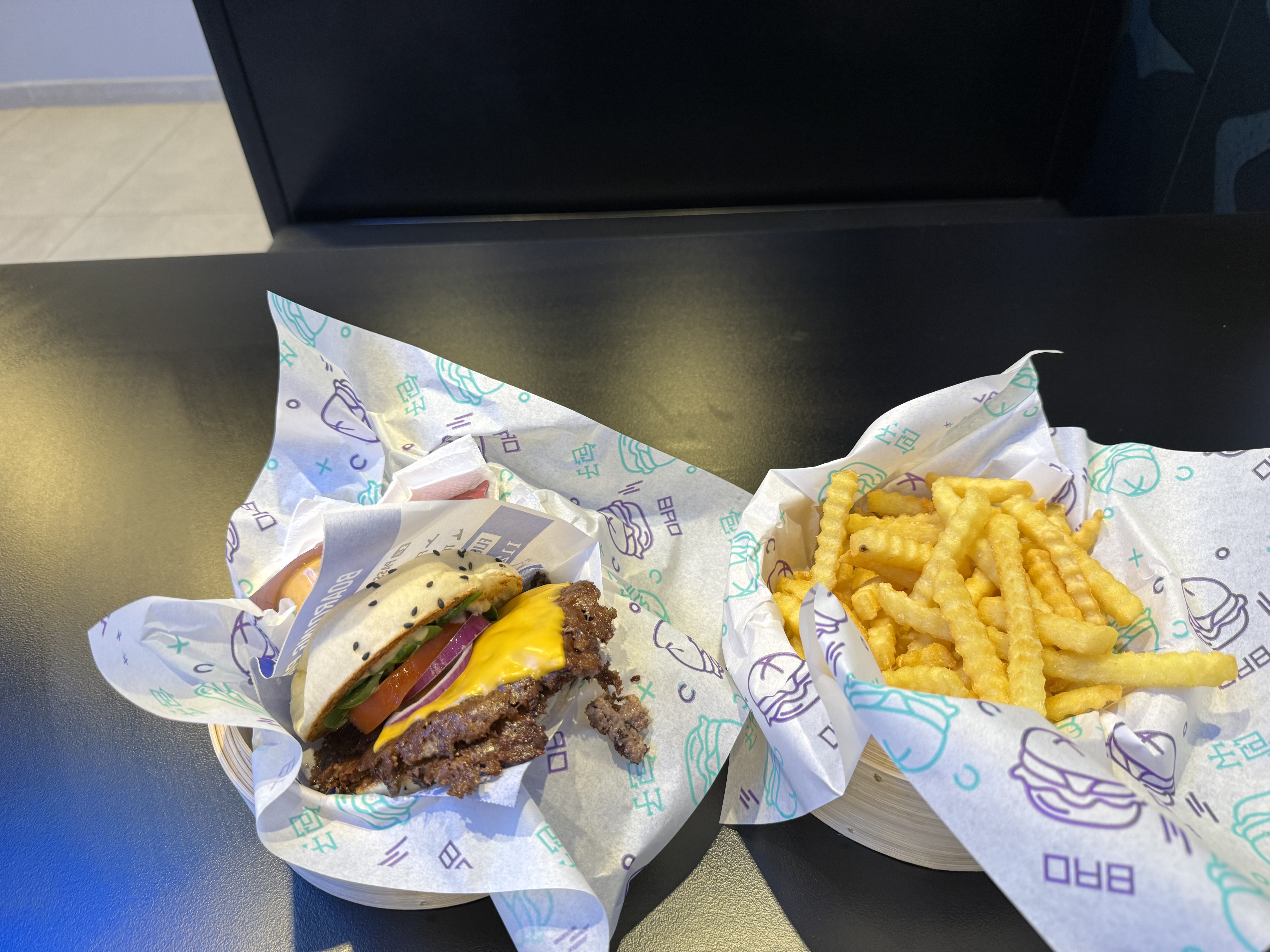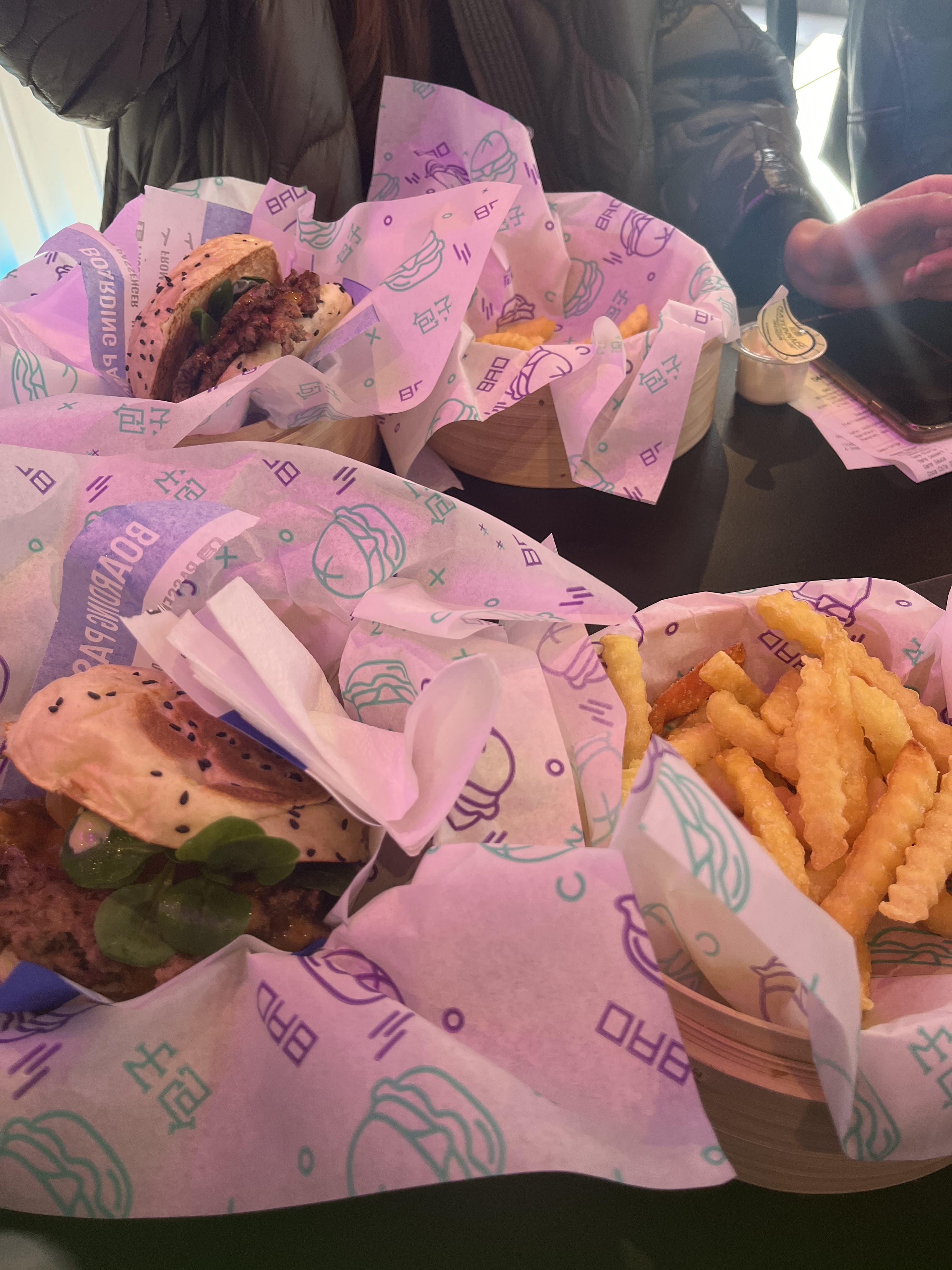 Les burgers étaient bons dans l’ensemble mais je doute fortement que l’appellation « bao » soit adaptée pour un pain qui semble être un pain blanc classique sans la texture du vrai bao, ça reste tout de même bon mais pas ce à quoi on s’attendait. Pour le prix il est vrai que le burger est assez petit, les frites en revanche ont une bonne quantité. Le lieu n’est effectivement pas très propre (les tables collent) et la playlist pas terrible. Malgré tout je pense que nous ne reviendrons pas.