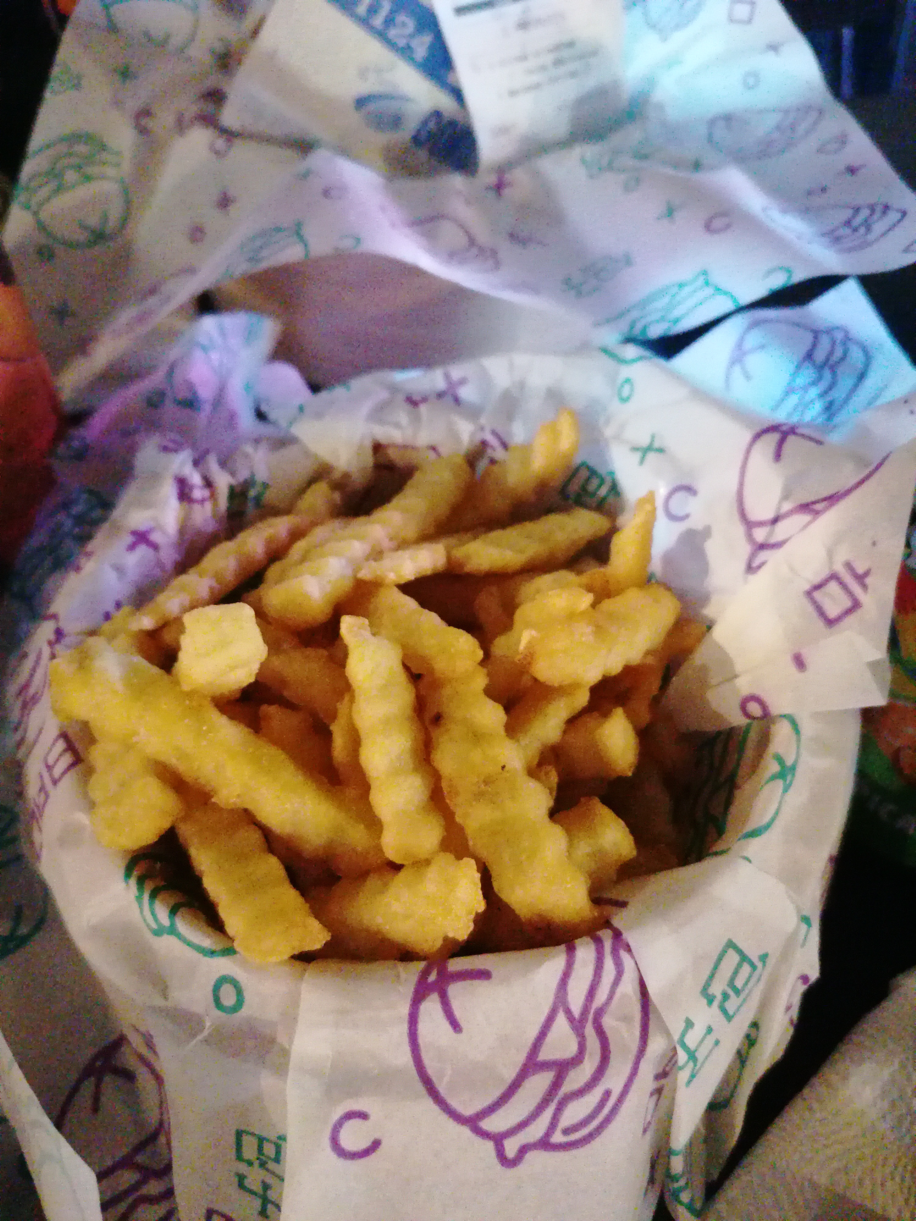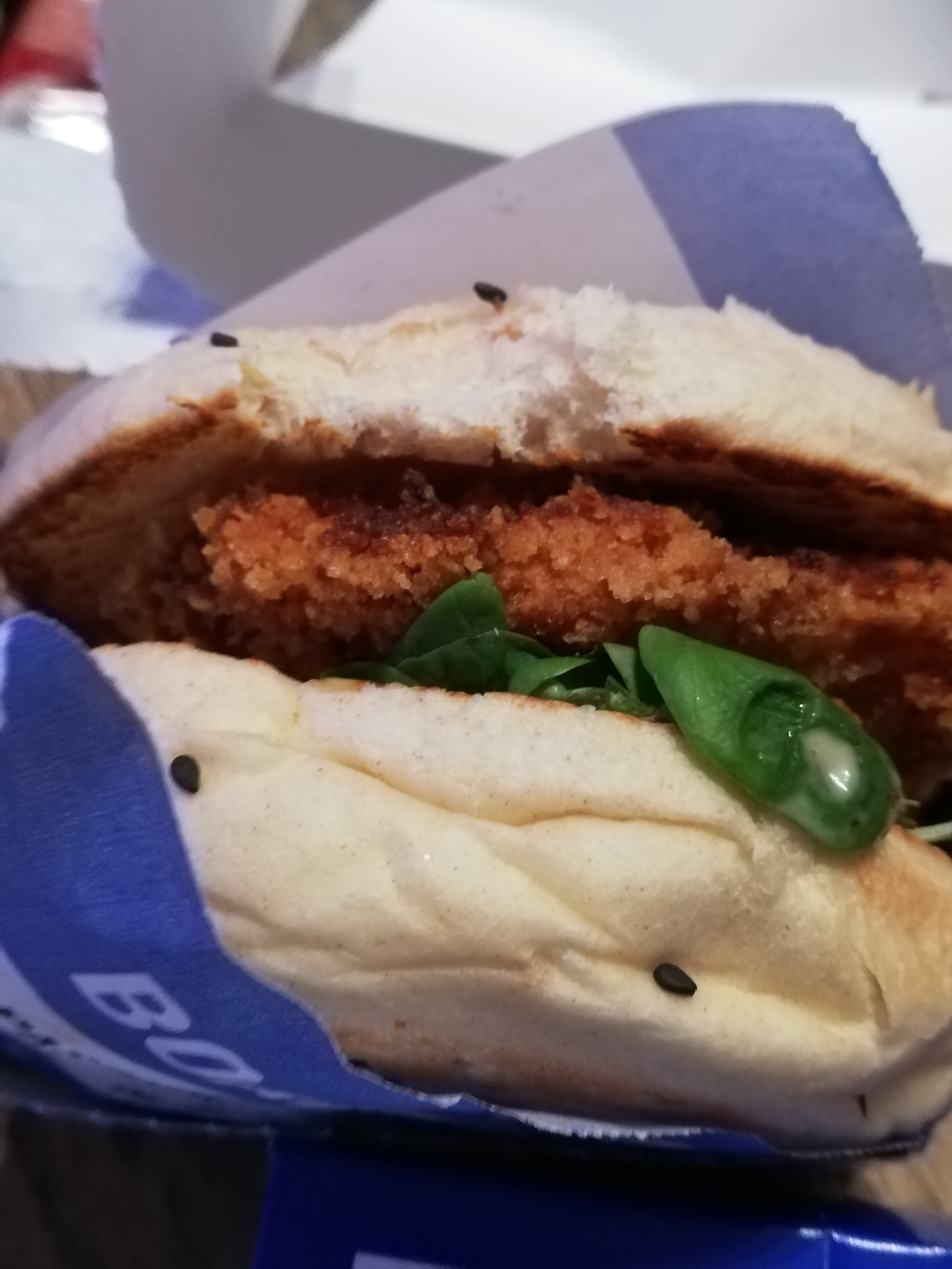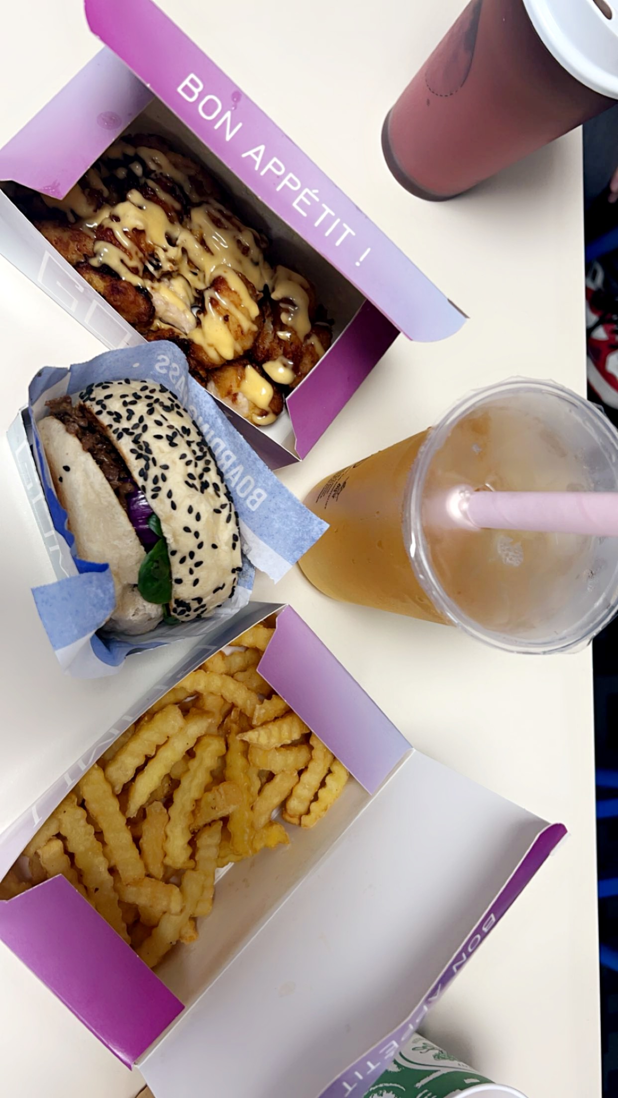 Un peu déçue car les frites étaient froides, le sandwich était bon mais les morceaux d’oignons etaient énormes et le bubble tea etait trop sucré. Malgré tout ça m’a plu, j’y reviendrais une seconde fois pour me faire un deuxième avis! Petit clin d’oeil à l’emballage du sandwich 😉