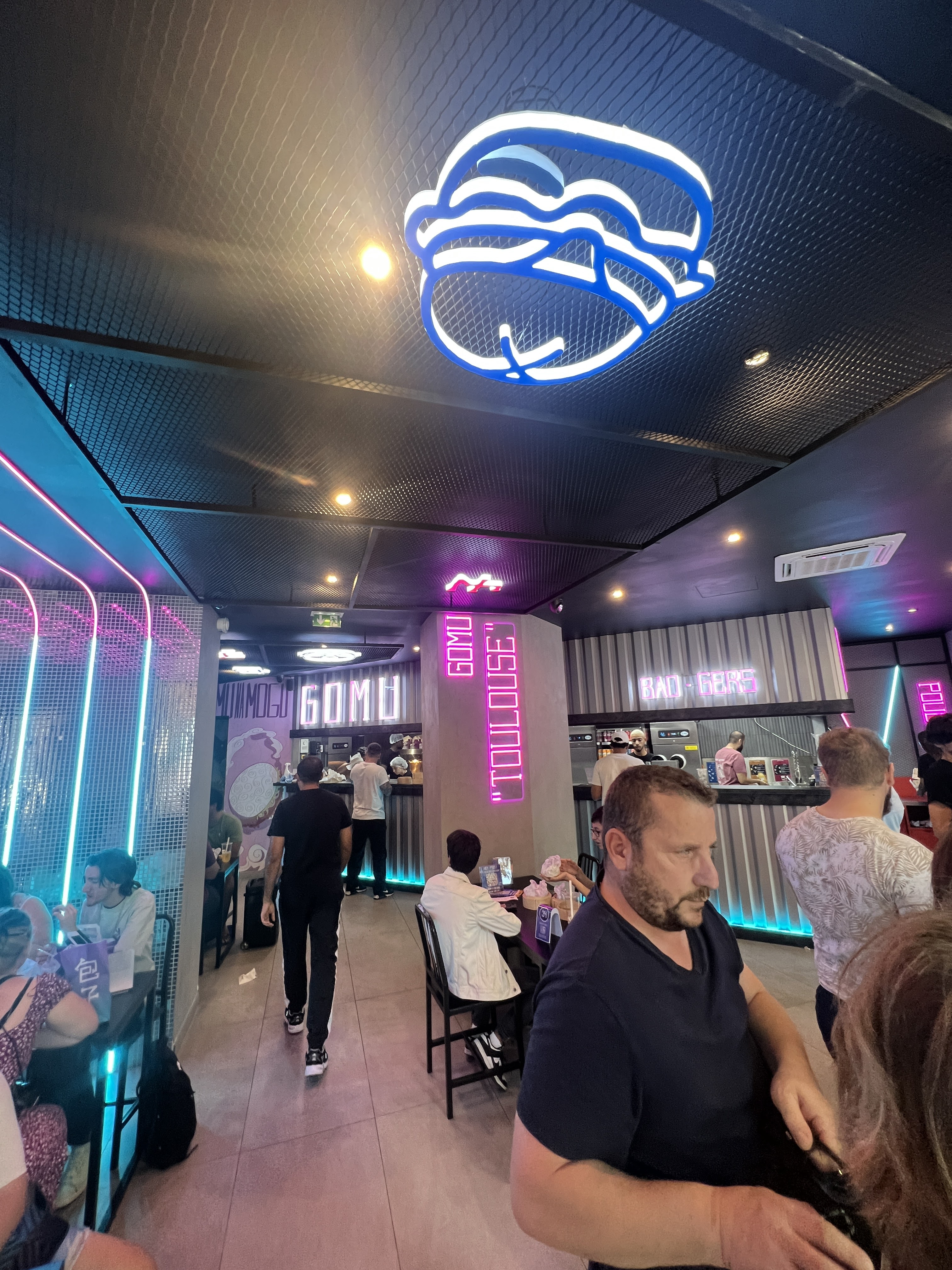 Nous avons testé ce week-end GOMU, les burgers au pain Bao le goût change des burgers traditionnels, franchement c’est une belle découverte. Le burger a la galette de crevette sauce aïoli vraiment bon le petit bémol c’est qu’ils ne sont pas consistant.. les burgers sont petit, bien dommage ! Le burger au poulet pané très bon et j’ai adorée être servit dans les petits paniers, une super idée ! L’intérieur super moderne très instagramable^^ Les couleurs avec les leds J’adore ! La serveuse Zina, aux petits soins avec la clientèle, merciii Les prix sont un peu plus cher qu’un burger Classic mais les produit sont de qualités !