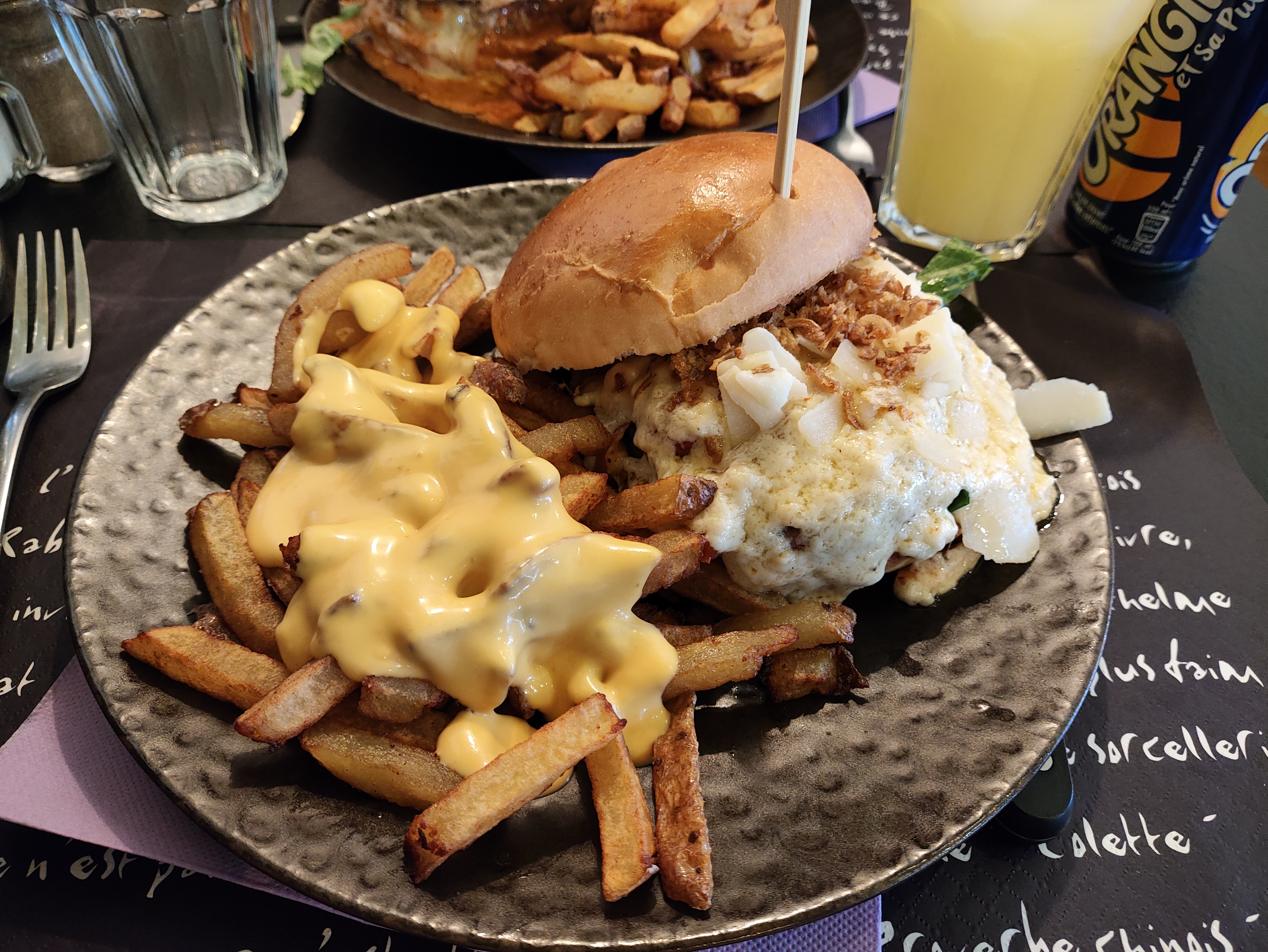 Maison très gourmande! Plat généreux, burger végétarien très copieux, de bonnes saveurs. Accueil chaleureux toujours dans la bonne ambiance. Prix très correct pour cette qualité! Une très bonne adresse steph qui représente bien notre savoir-vivre!