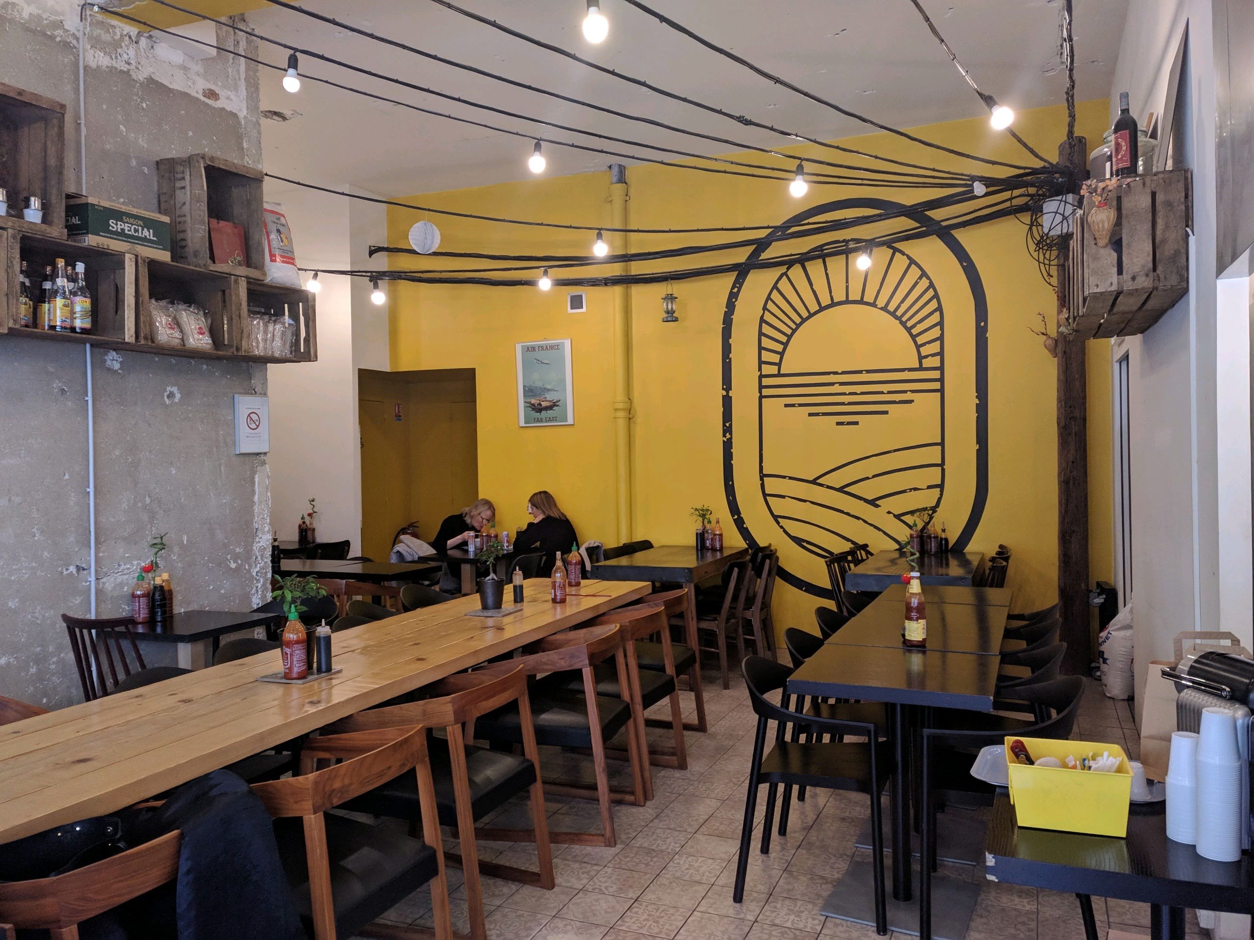 Compte tenu du peu d'offres dans le coin, c'est une chance d'avoir cet endroit. Le service est supersonique. Les quantités minimalistes. La musique ultra-forte. Côté déco, ambiance béton brut et caisses récup' sympa. Je ne dirai pas que j'ai adoré ce que j'ai mangé mais c'était réglementaire. En même temps, difficile de se plaindre dans la région.