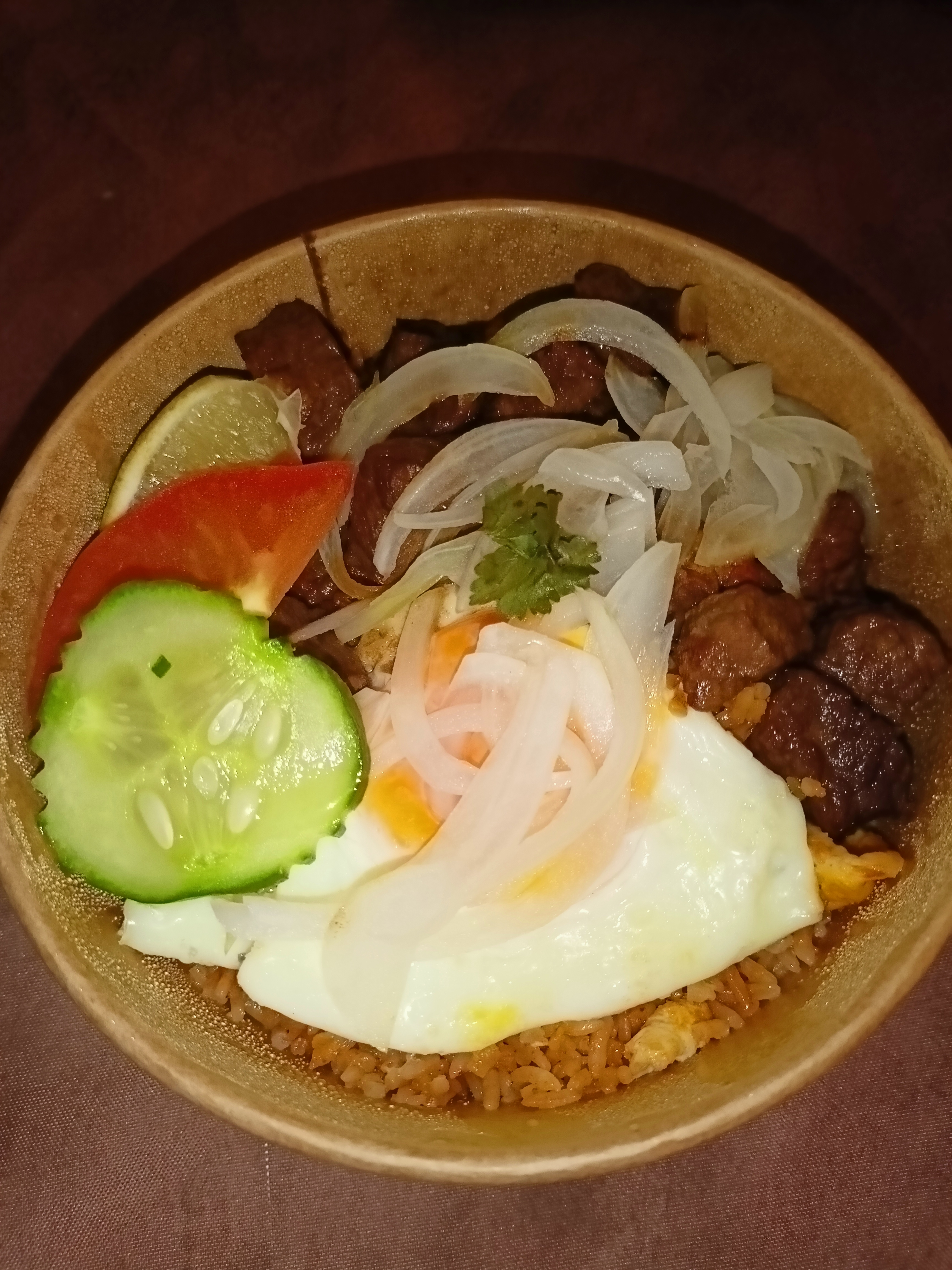 Je n’ai pas pour habitude de laisser des avis, mais j’aurais dû me fier aux commentaires ! 0/10 Le bœuf trop cuit, l’œuf on dirait qu’il a été cuit à l’avance, le plat n’avait aucun goût.