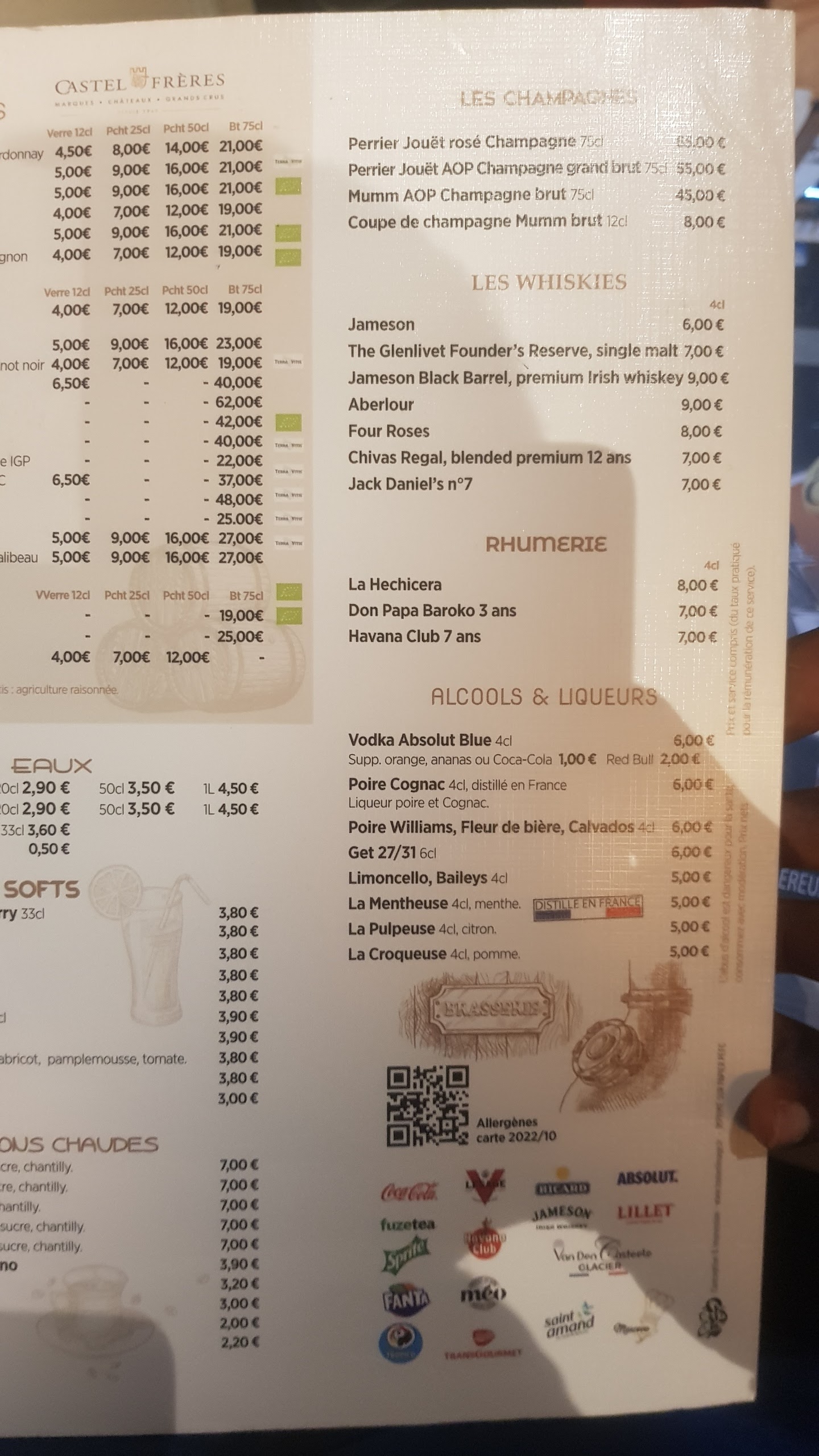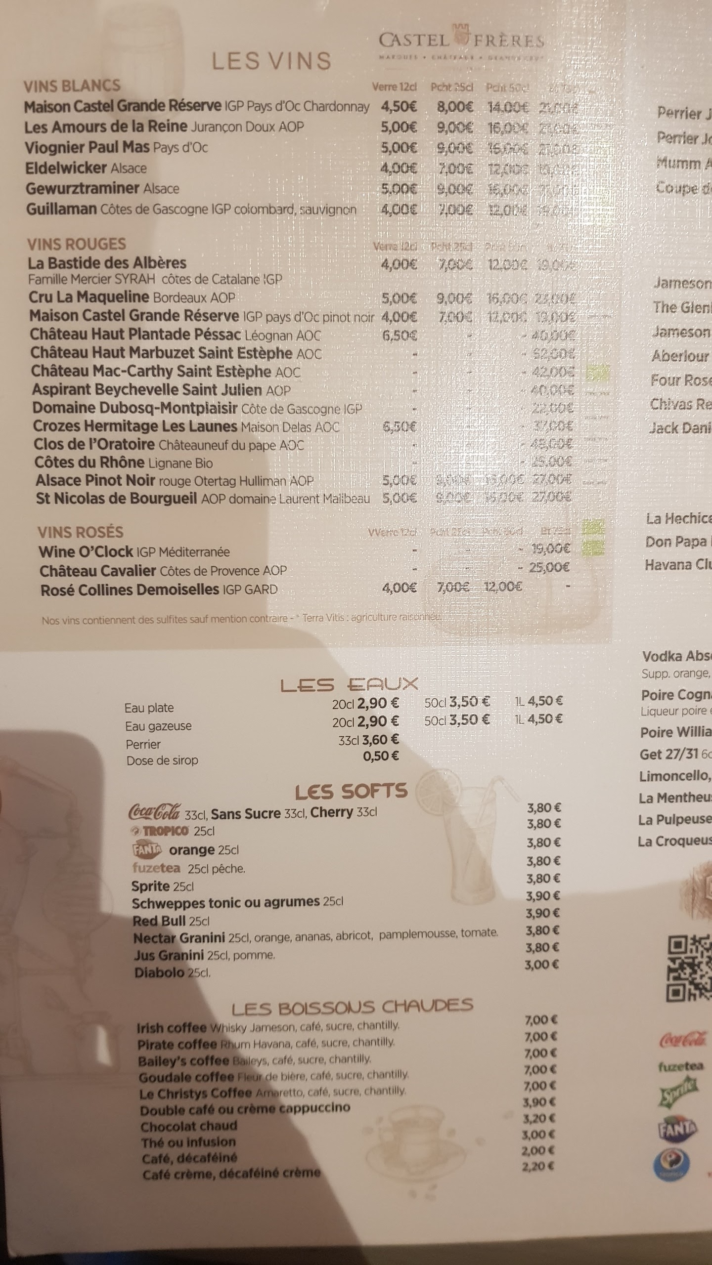 Très moyen Aucun serveur n'a de masque ( mais passons ) Planche aperif très peu de choix Plats correct a part le welsh que je n'ai pas aimer Galces presque fondu a l'arriver et un supplément ( très chère ) de 1€50 pour une pauvres boule de glaces lol moelleux au chocolat fondant bof bof Aller au 3 brasseur ou au comptoir du malt qui est beaucoup mieux