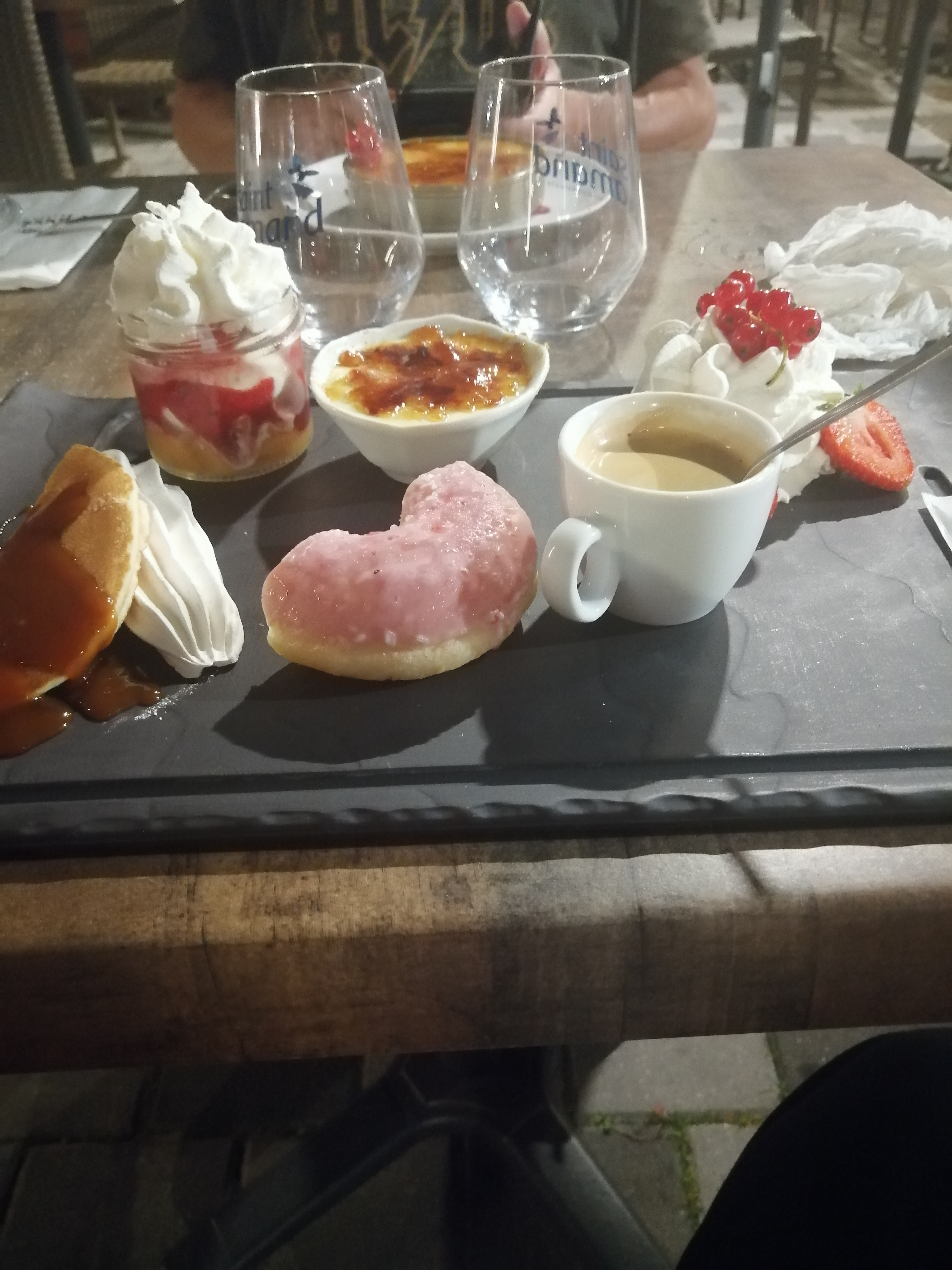 Déçus de la nourriture. Rien d extraordinaire. Le pire est le dessert un café gourmand...framboise moisie ,nous devions avoir un coulis d agrume et c est de la framboise, crème brûlée une catastrophe... Quelle dommage...