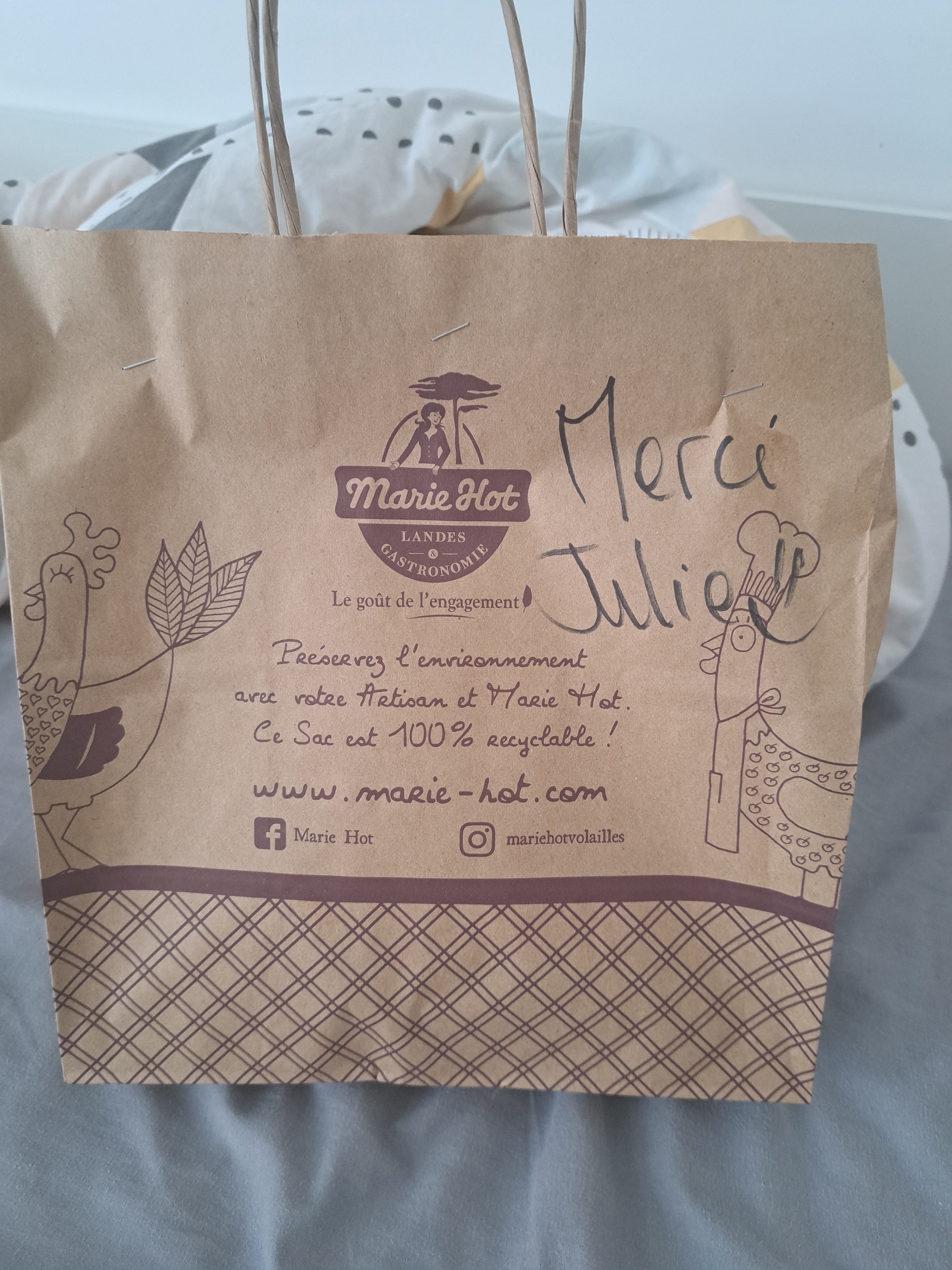 J’ai commandé un poulet entier avec des frites pour emmener chez la grand mère (elle a plus l’âge de cuisiner la pauvre), et bien elle m’a dit que c’était l’un de ses meilleurs poulet de sa vie ! Continuez comme ça et gardez votre sourire !