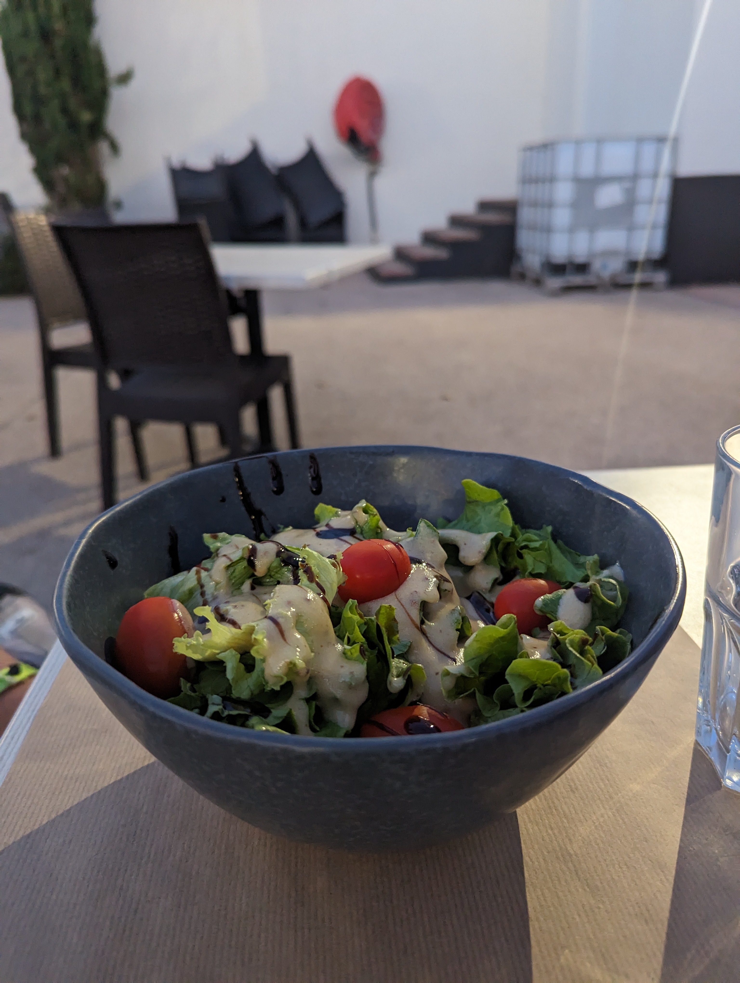 Le restaurant destiné aux clients du camping se trouve juste à côté de la scène. Assurez-vous de réserver car il peut être assez complet et vous ne pourrez pas obtenir de place spontanément. La nourriture est bonne et à un prix raisonnable. Il y a un plat du jour changeant. Vous pouvez également commander et récupérer des pizzas ici. Cependant, nous n’avons pas essayé.