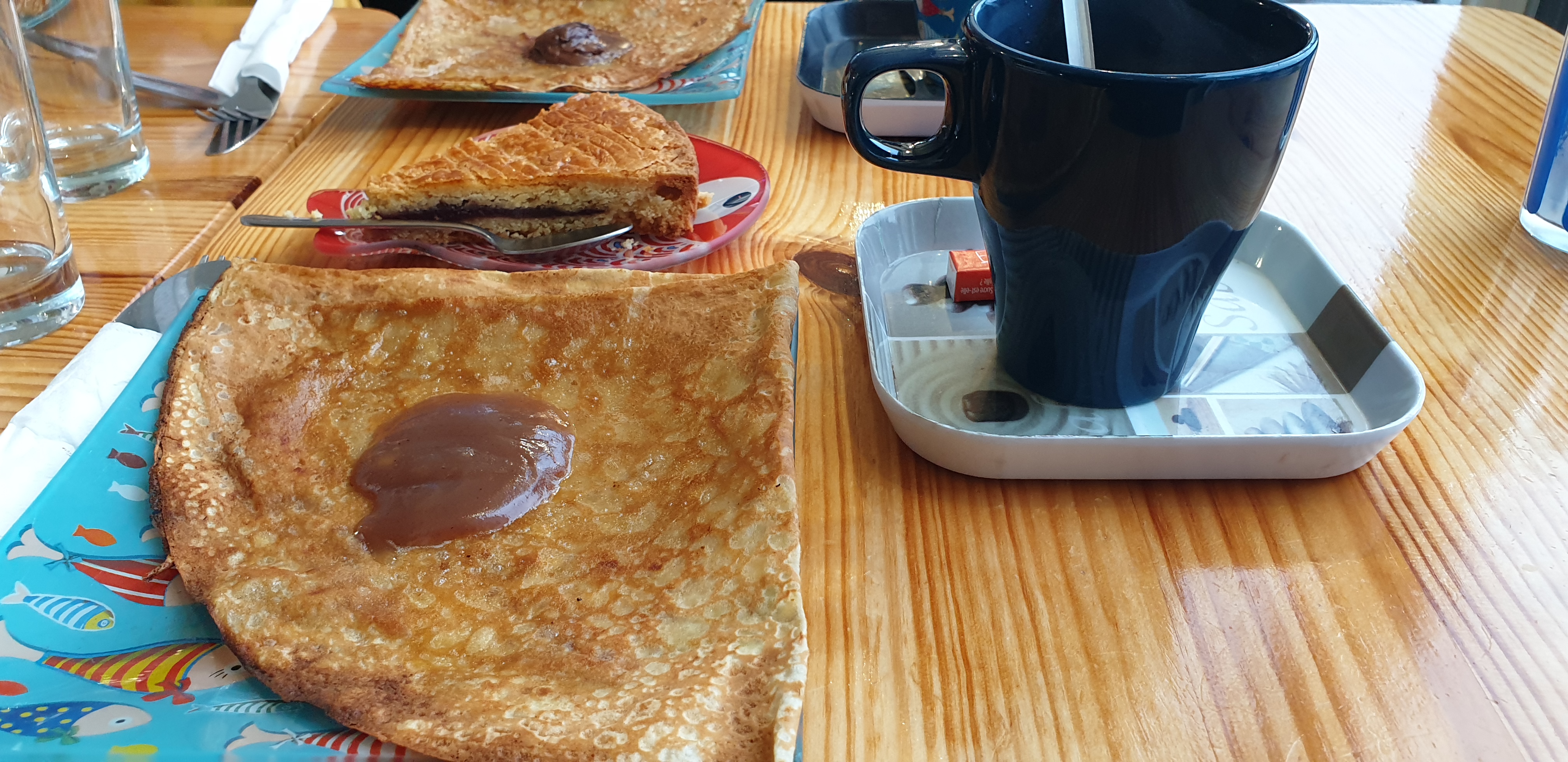 Super crêpes au chocolat et noisettes 😋, je vais revenir pour goûter menu Breton ! Une belle vue et un très chouette accueil.