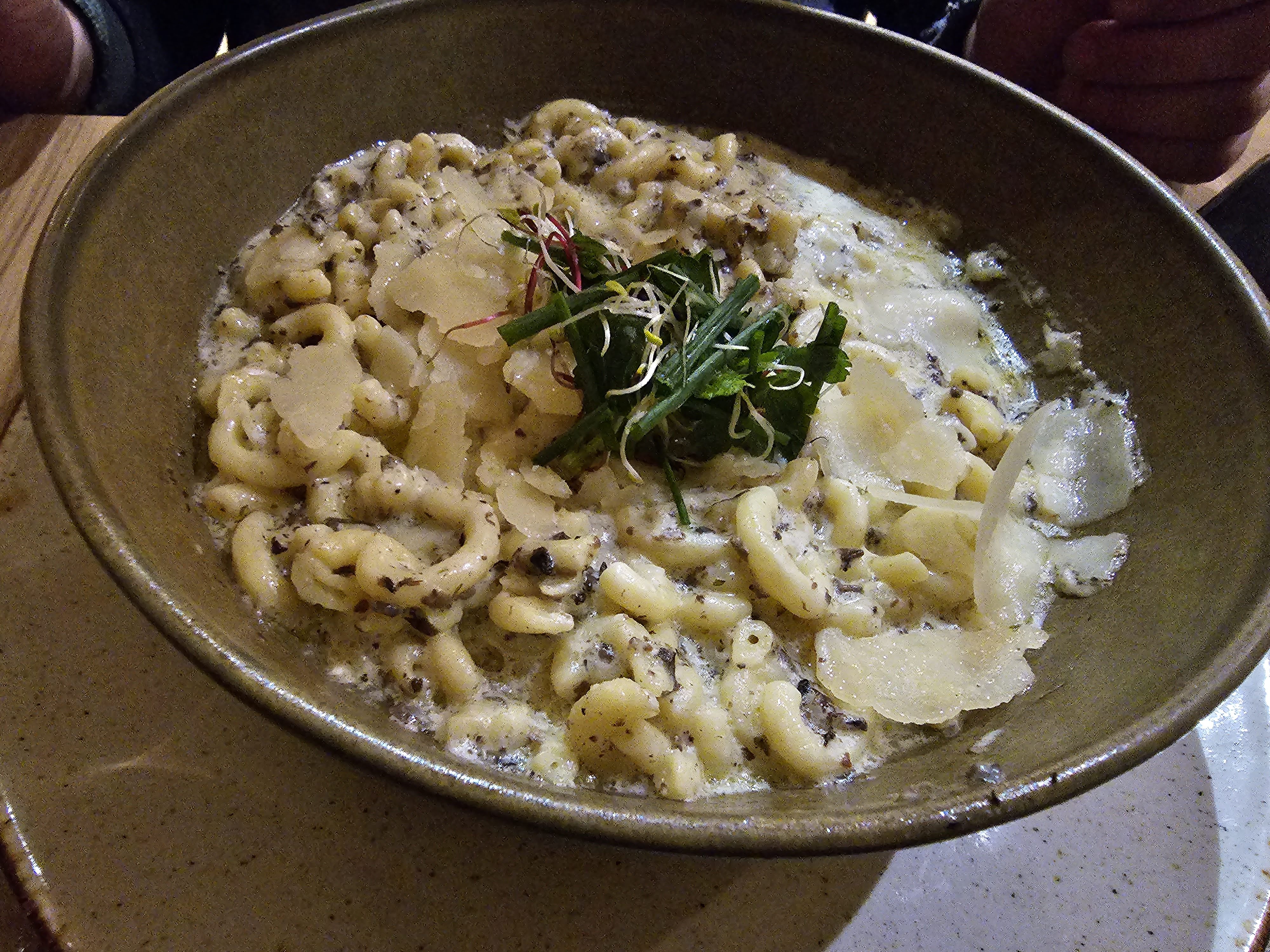 Les pâtes de ma fille étaient servies froides et étaient visiblement restées en ligne depuis un certain temps. Nos repas prenaient 45 minutes pour arriver à table. Notre steak était très savoureux - mais le service extrêmement médiocre et les temps d'attente n'en valaient tout simplement pas la peine. Nous avons dû demander à ce que notre table soit débarrassée car les serveurs semblaient assez jeunes et inexpérimentés.