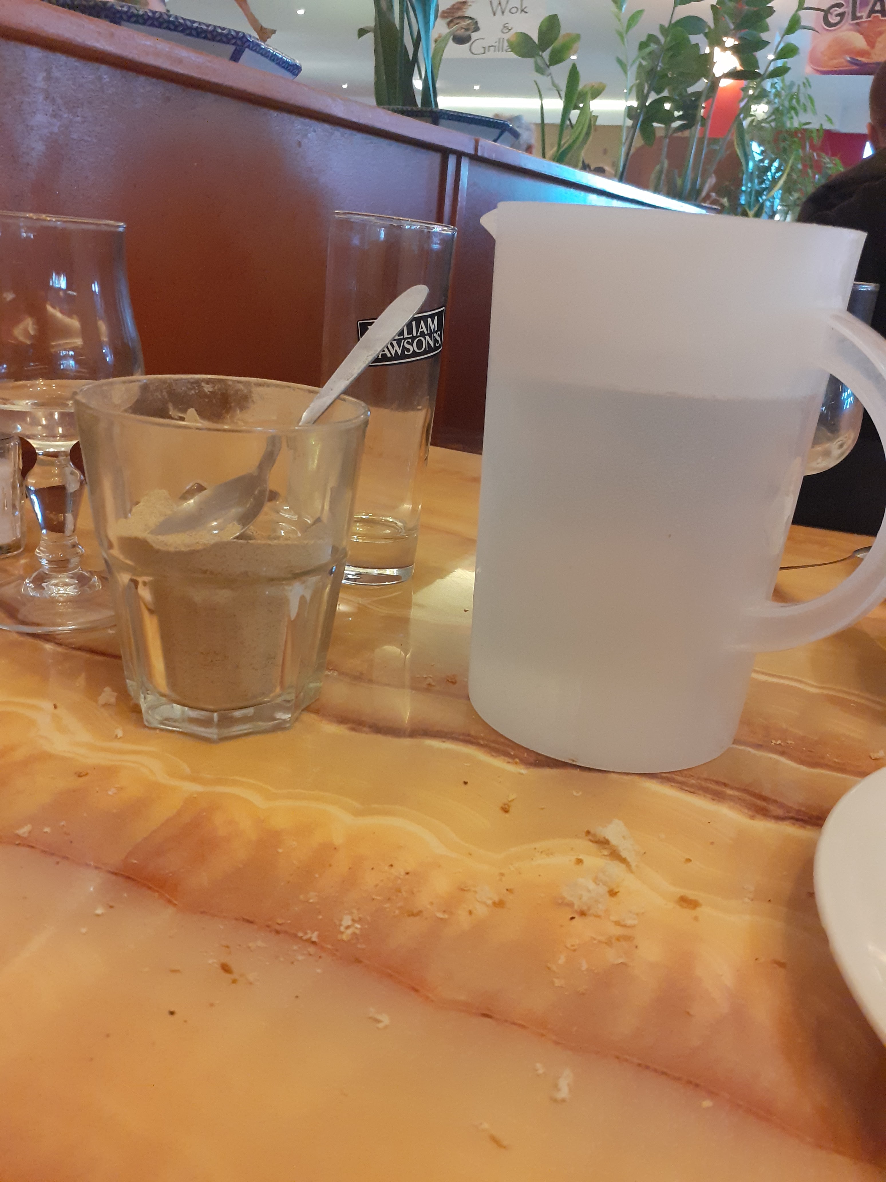 Aucun goût et nourriture à peine chaude. L eau est servi dans des pichets en plastique. Vous devez vous même débarrasser votre table et remplir les pichets d eau.