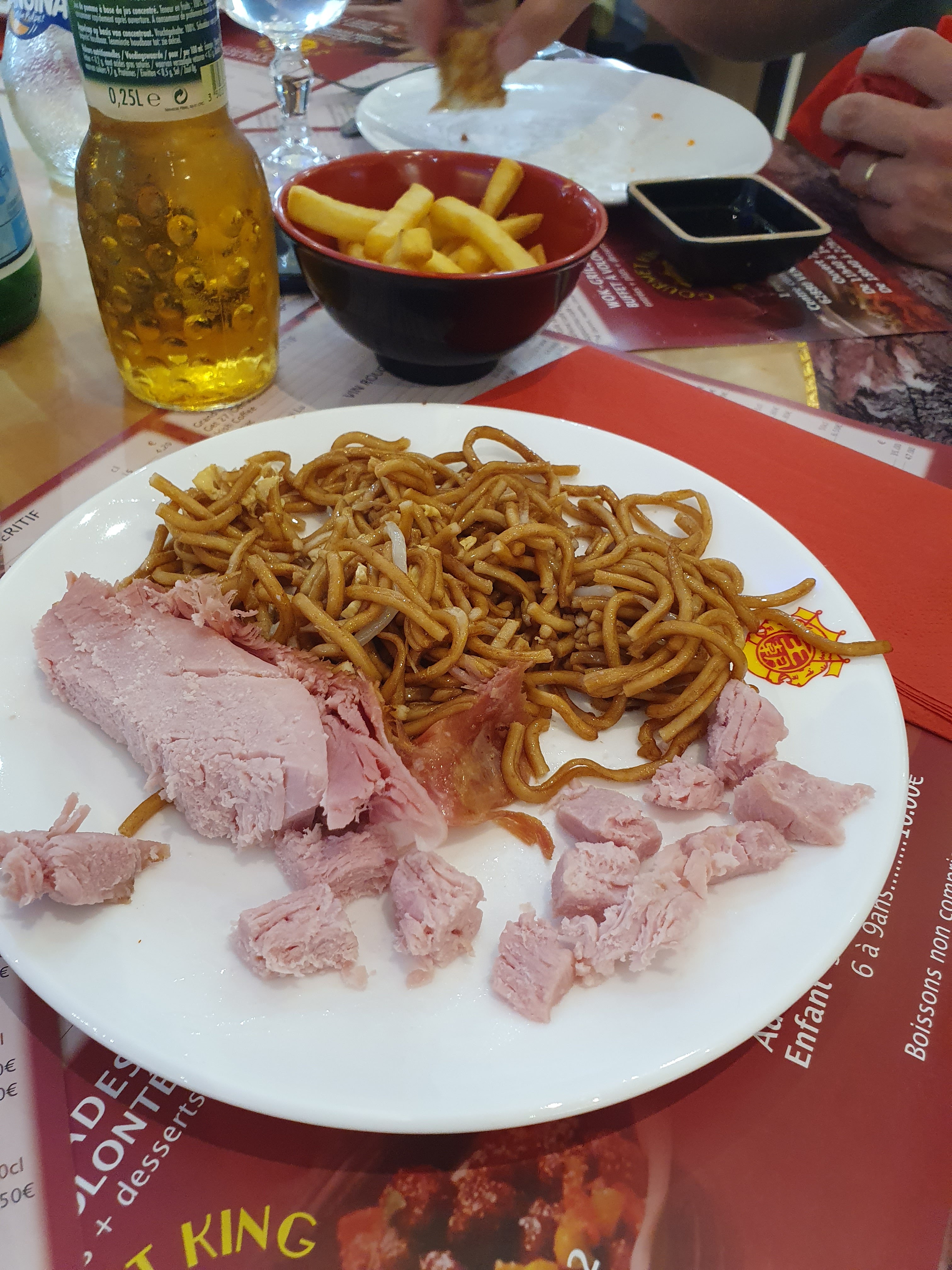 Restaurant moderne , Le service est au top mis à part le fait que nous ne sommes jamais débarrassé avant d’être parti Cependant : Cuisine très mitigée contrairement à d’autres concurrents sur Hénin Beaumont Gratin dauphinois de cantine Nouilles à faire cuire fades Poulet cuit dans l’eau Choix dans la moyenne de ce type de restaurant , Très grande proximité entre les tables Difficile de finir son assiette Nous qui somment habitués de ce genre de restaurant , Pour 21,90€/pers un samedi midi Nous aurions aimé être satisfait .