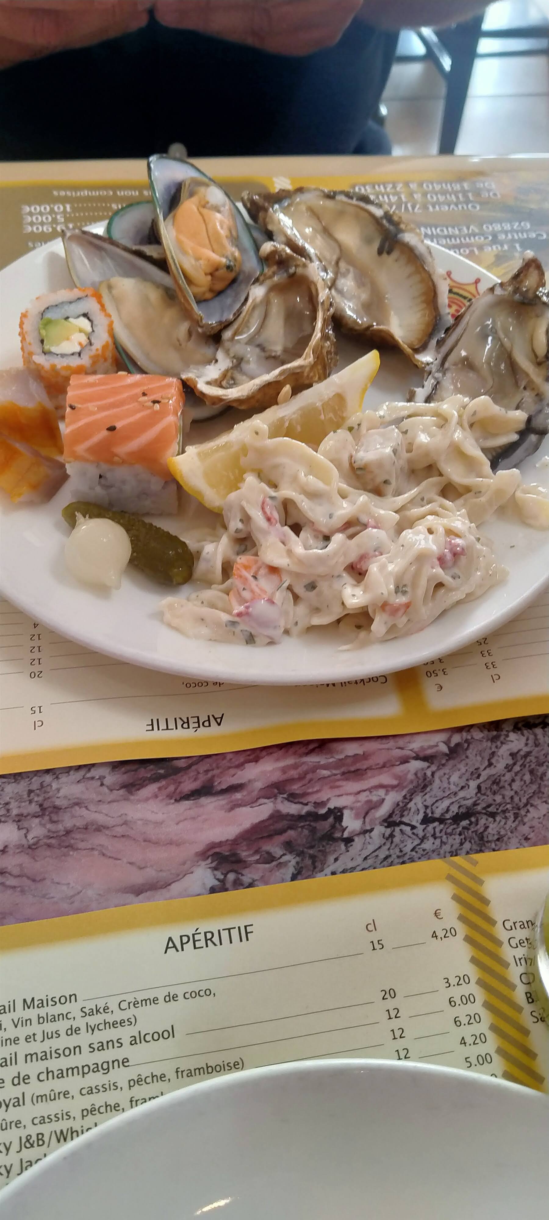 Tout est excellent, bons produits sauf une chose, les températures des fruits de mer , huîtres, coques etc... ces produits étaient chauds alors qu'ils devraient être plus frais. Le personnel est souriant , accueillant sauf que l'on devrait nous débarrasser les assiettes vides régulièrement sinon, les tables sont vite encombrées. Je reviendrais avec plaisir.