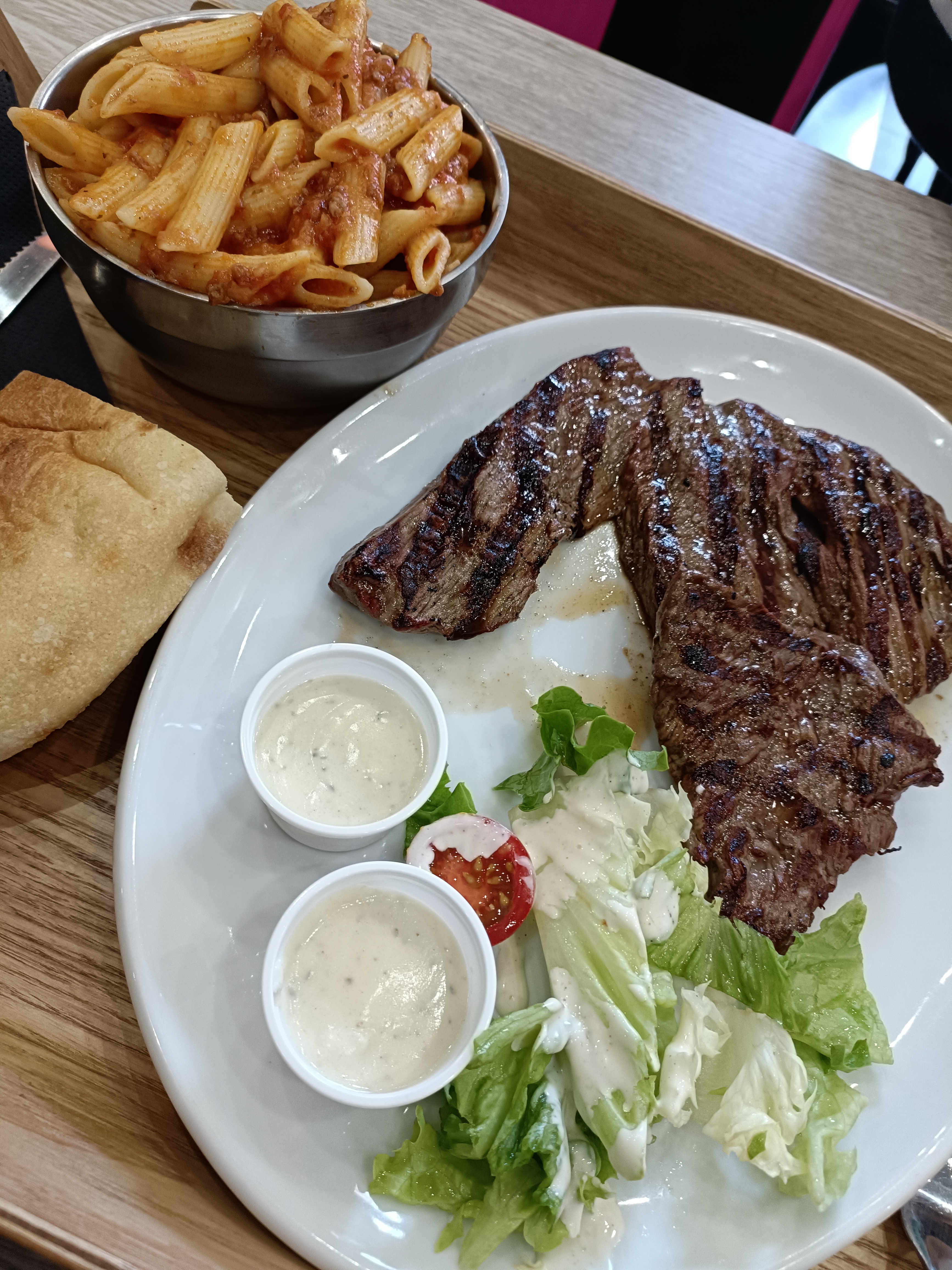 J'ai pris de l'escalope avec des pâtes bolognaise. L'escalope était bonne mais les pâtes étaient nuls, je n'ai pas pu les manger.