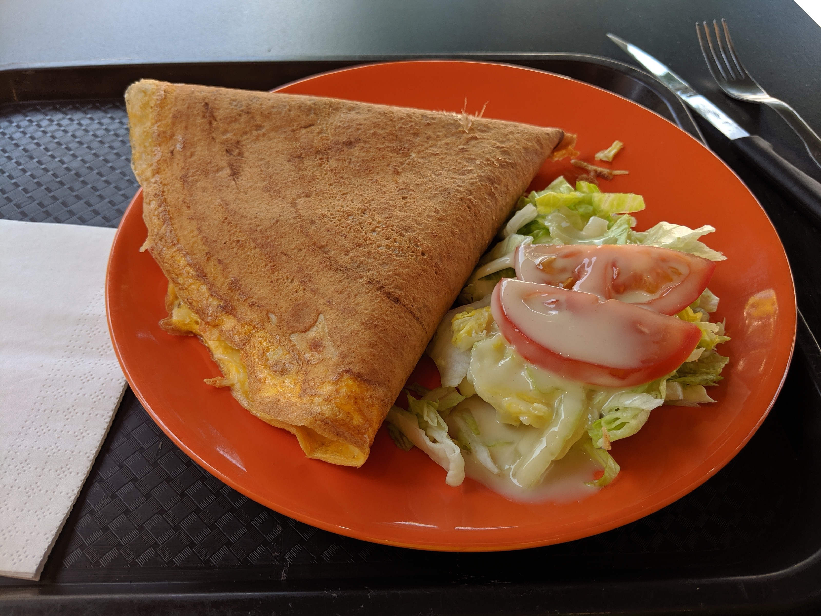 Nourriture délicieuse, nous y avons essayé la crêpe au fromage et à la dinde. Incroyable!