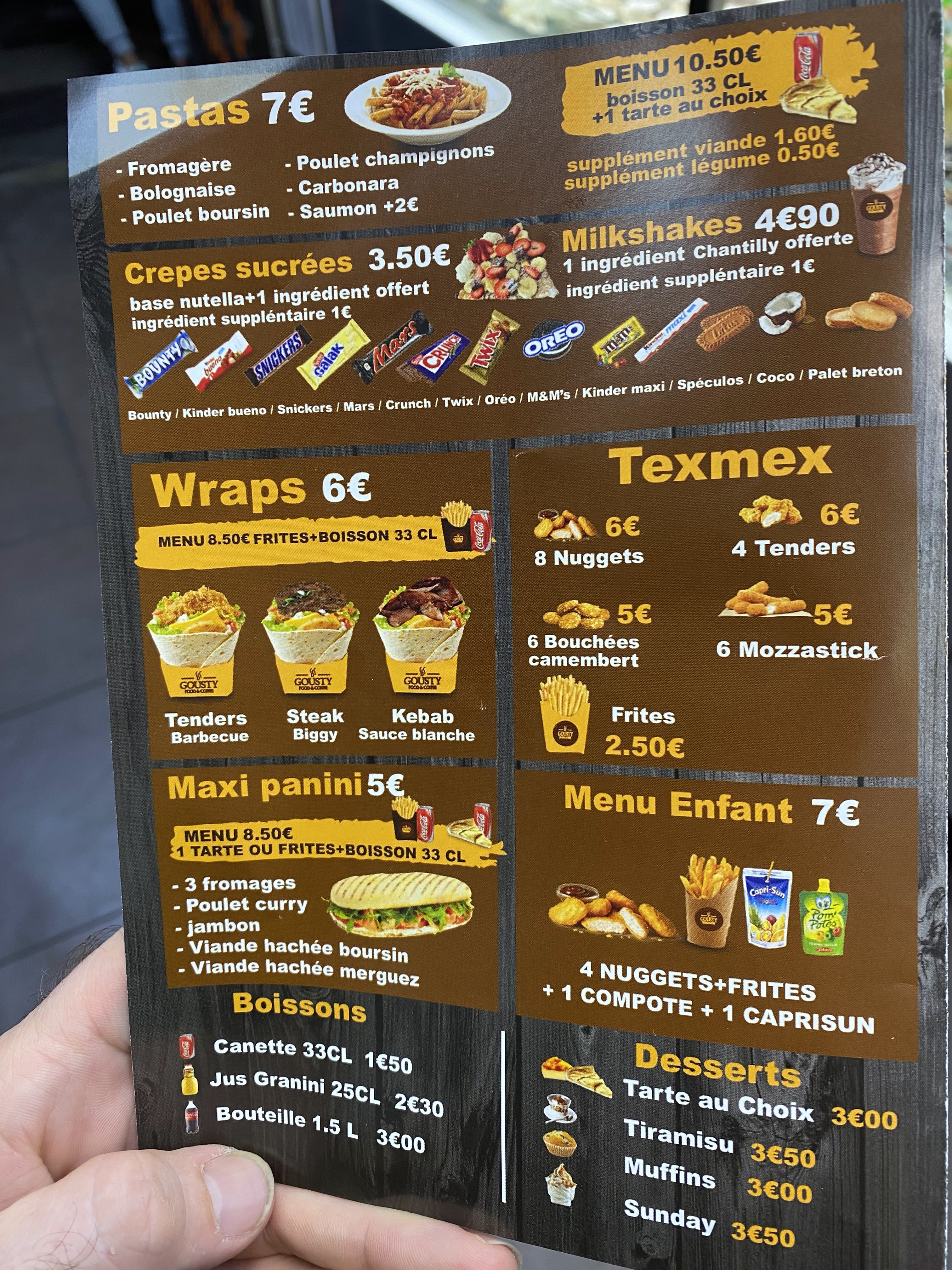 VIENS CHEZ GOÜSTY !! Accueil chalheureux, choix varié déjeuner, goûter, dîner... Végan: tacos végétariens, et le chef est conciliant. TRES HONNÊTE, le Chef m'a interpelé jusque dans la rue parce que j'avais oublié 20 euros et autres bricoles Les Super Héros sont les gens honnêtes, Vas pas au cinéma voir les Avengers X-men... Garde ton argent, et VAS CHEZ GOÛSTY !!!