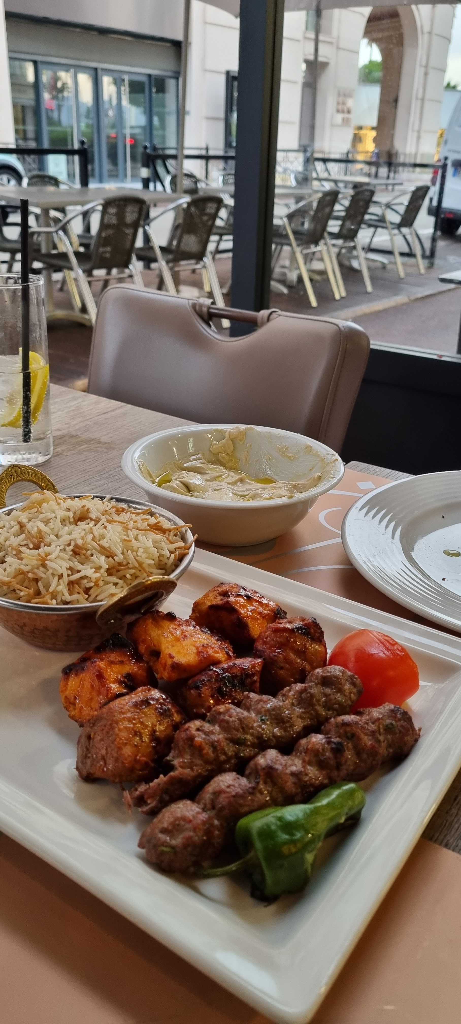 Plats délicieux et bon accueil. L'assiette végétarienne est très bonne ainsi que le chawarma poulet. En revanche prix très excessif pour le thé à la menthe= une étoile en moins.
