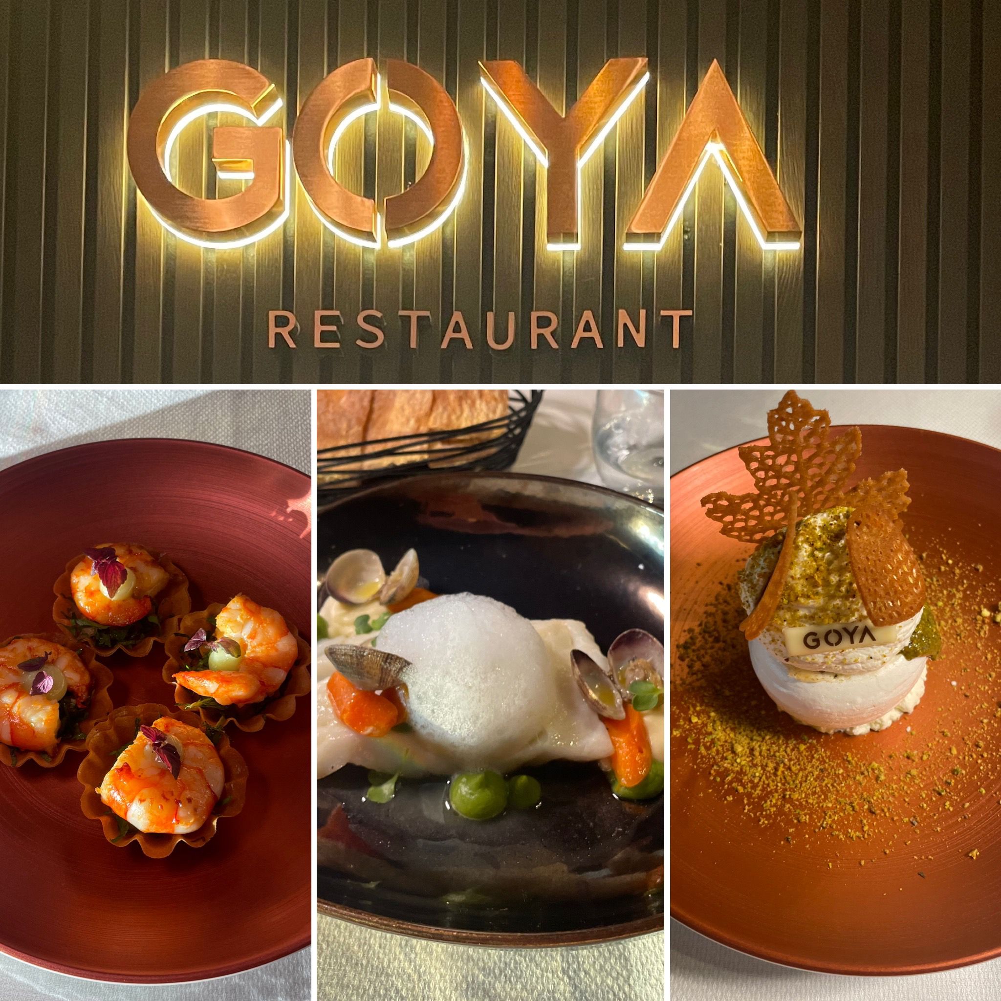 Un cadre de très bon goût, belle décoration avec un mobilier très confortable. Une cuisine raffinée et un service remarquable. Je vous recommande nos entrées: croustillant aux gambas et l’opéra de foie gras. Un délice !!! Suivis par un filet de bœuf black Angus et un cabillaud aux palourdes, tout simplement excellent. Quand aux desserts variés et faits maison, nous avons testés et apprécié le vrai tiramisu et le pavlova pistache. Nous vous recommandons ce nouveau resto « GOYA » entre amoureux ou amis sans hésitation !!