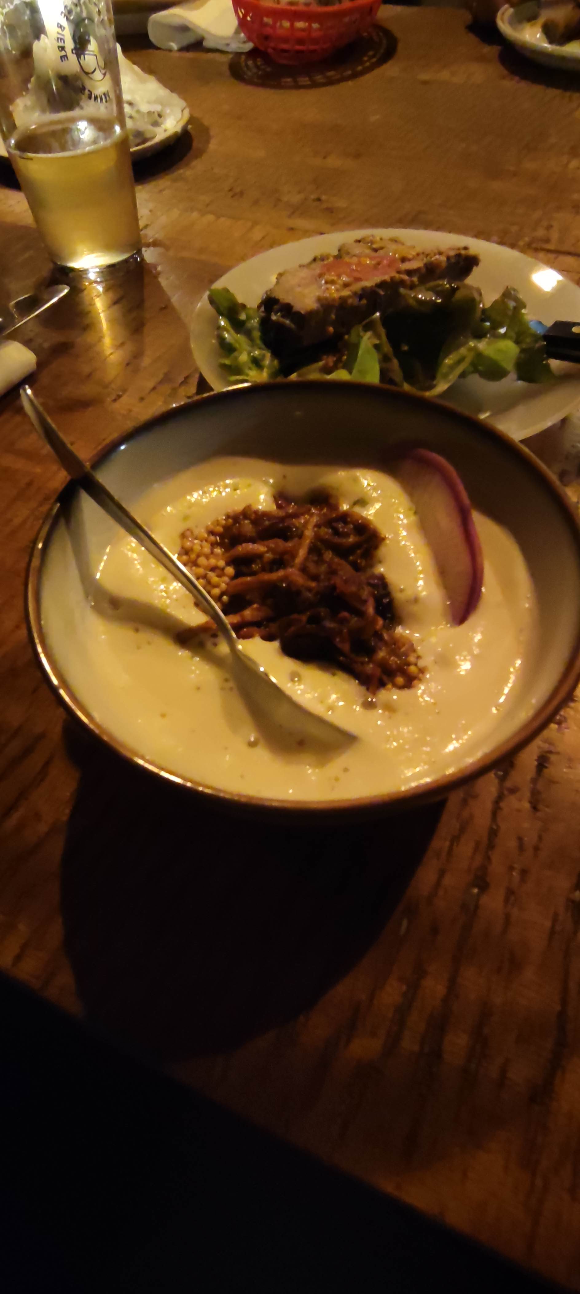 Découverte du lieu lors d'une soirée sur le thème du cidre avec la présence de la productrice AU TOP ! Rien à redire, de l'accueil à l'ambiance, du service aux plats. Une cuisine fine avec des accords recherchés. La palme revient au chou craquelin cardamome-persil !!! 👌