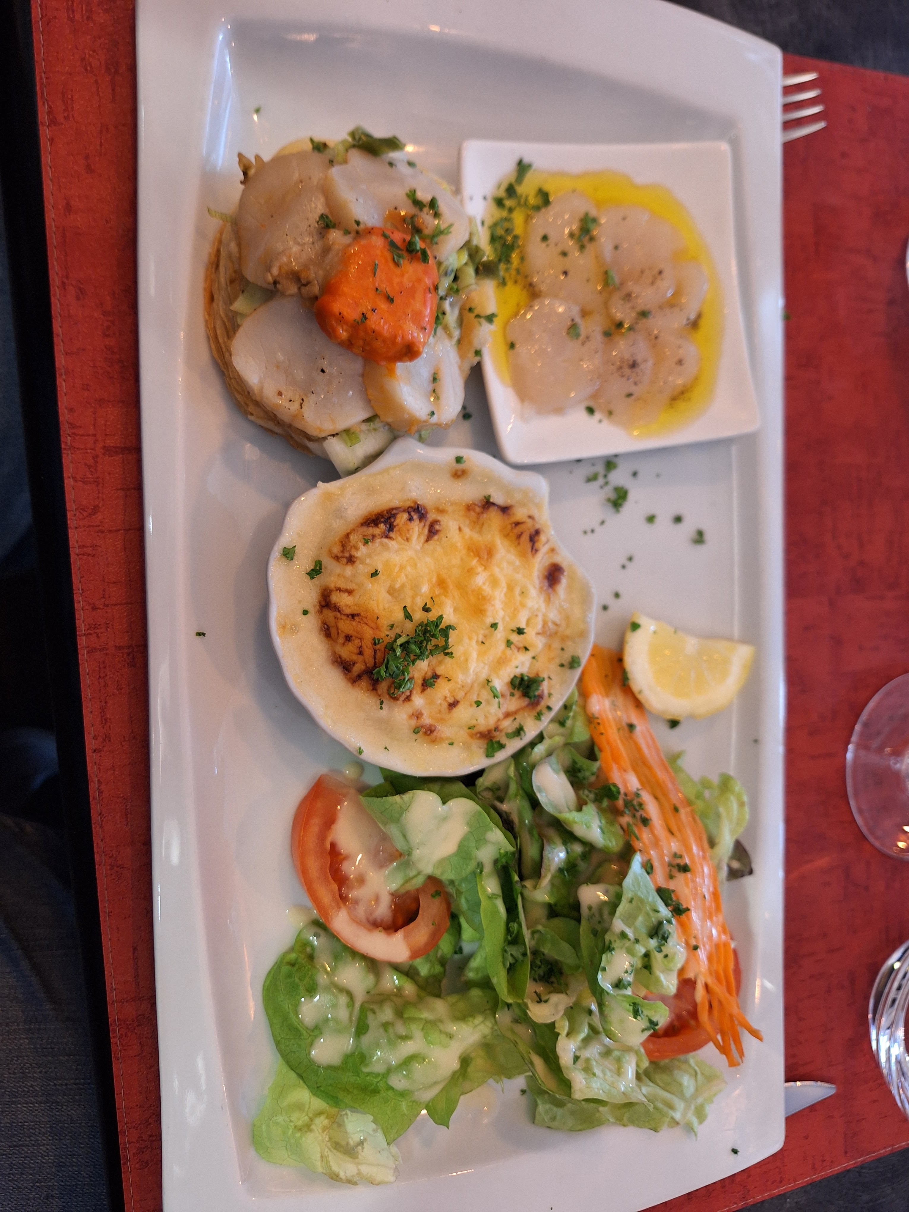 Le menu noix de Saint Jacques était parfait et très goûteux et surtout de saison. Petit restaurant, réservation conseillée, personnel accueillant. Nous avons passé un excellent moment en famille. A recommander