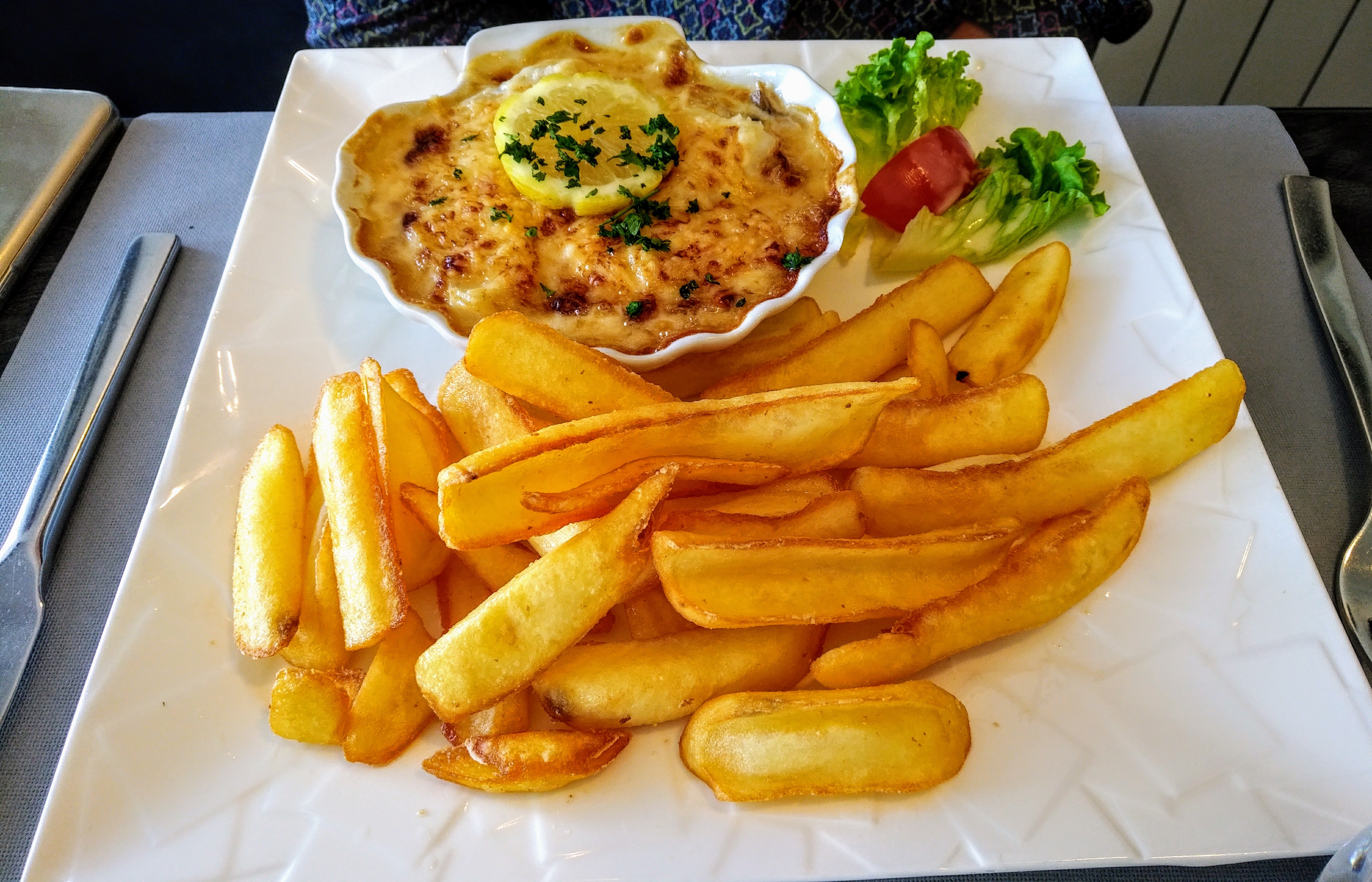 Excellent de l'entrée au dessert, fruits de mer ,saumon rôti sauce Neuchâtel et profiteroles...super, serveuse agréable, situé en face du Casino je recommande 😁