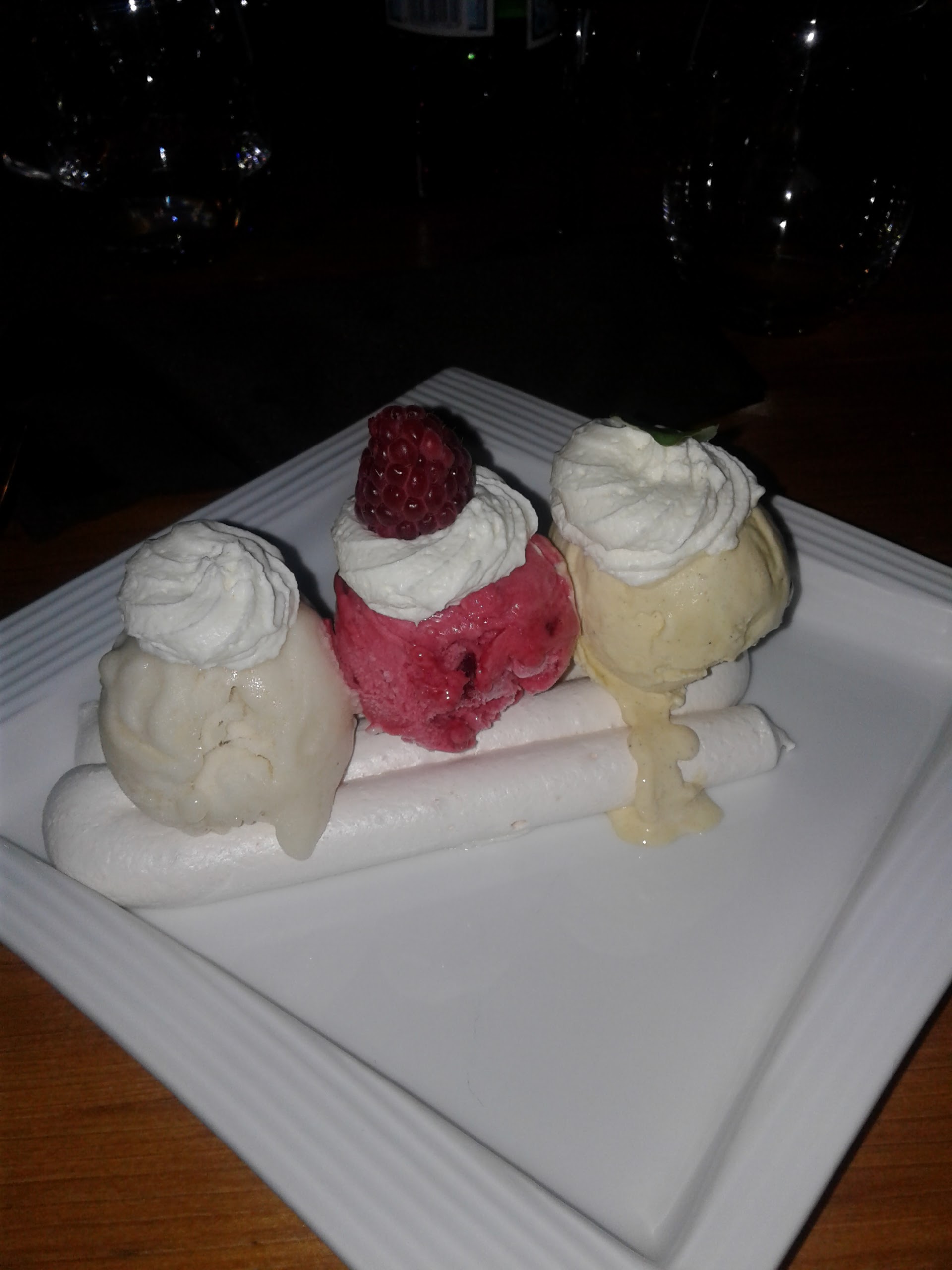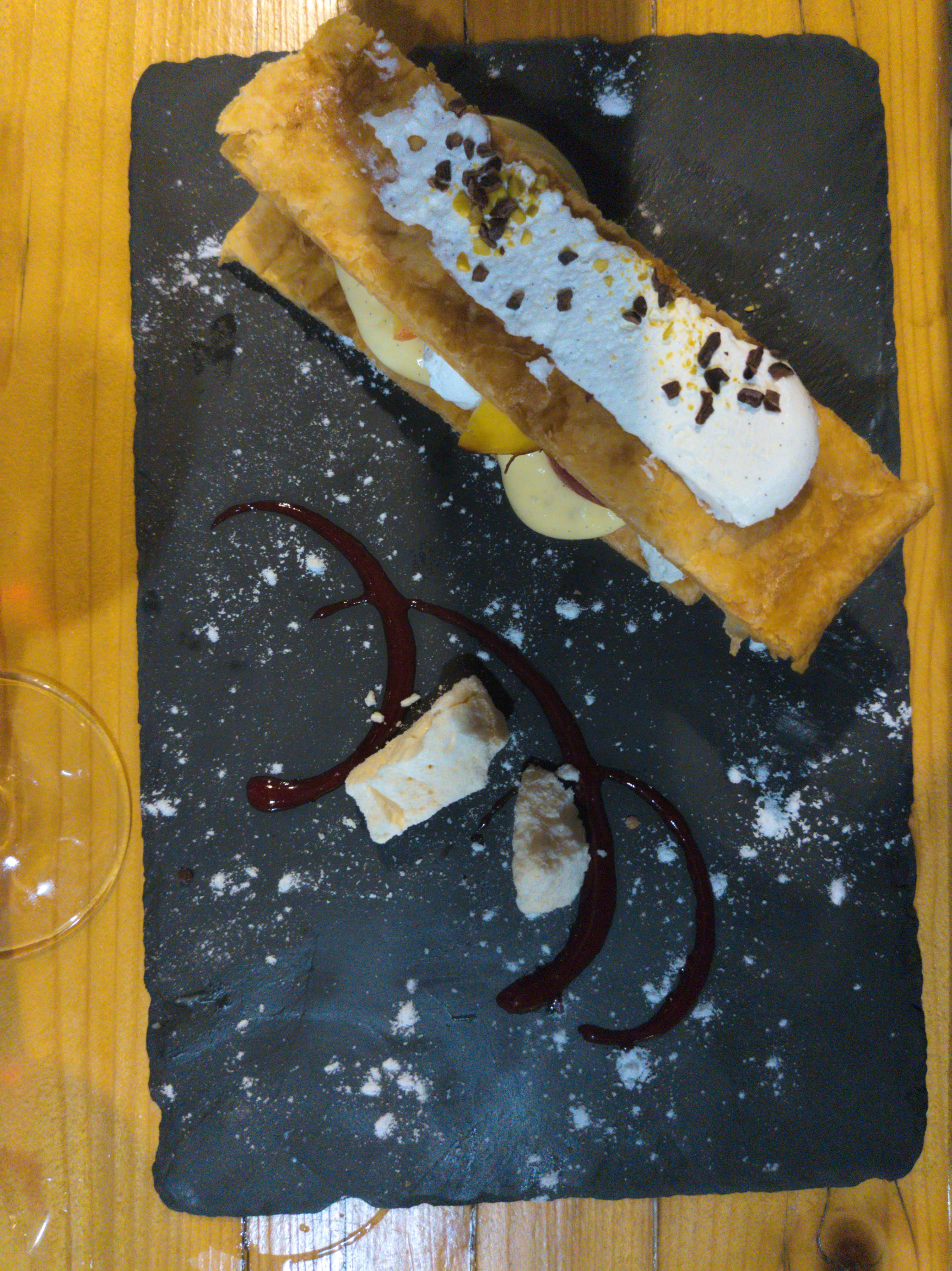 Service désorganisé, verre de vin commandé avec le plat mais servi avec l'apéritif, filet Rossini avec une viande bien raide et un foie gras bien sec, dessert pavlova et ardéchoise quelquonque....