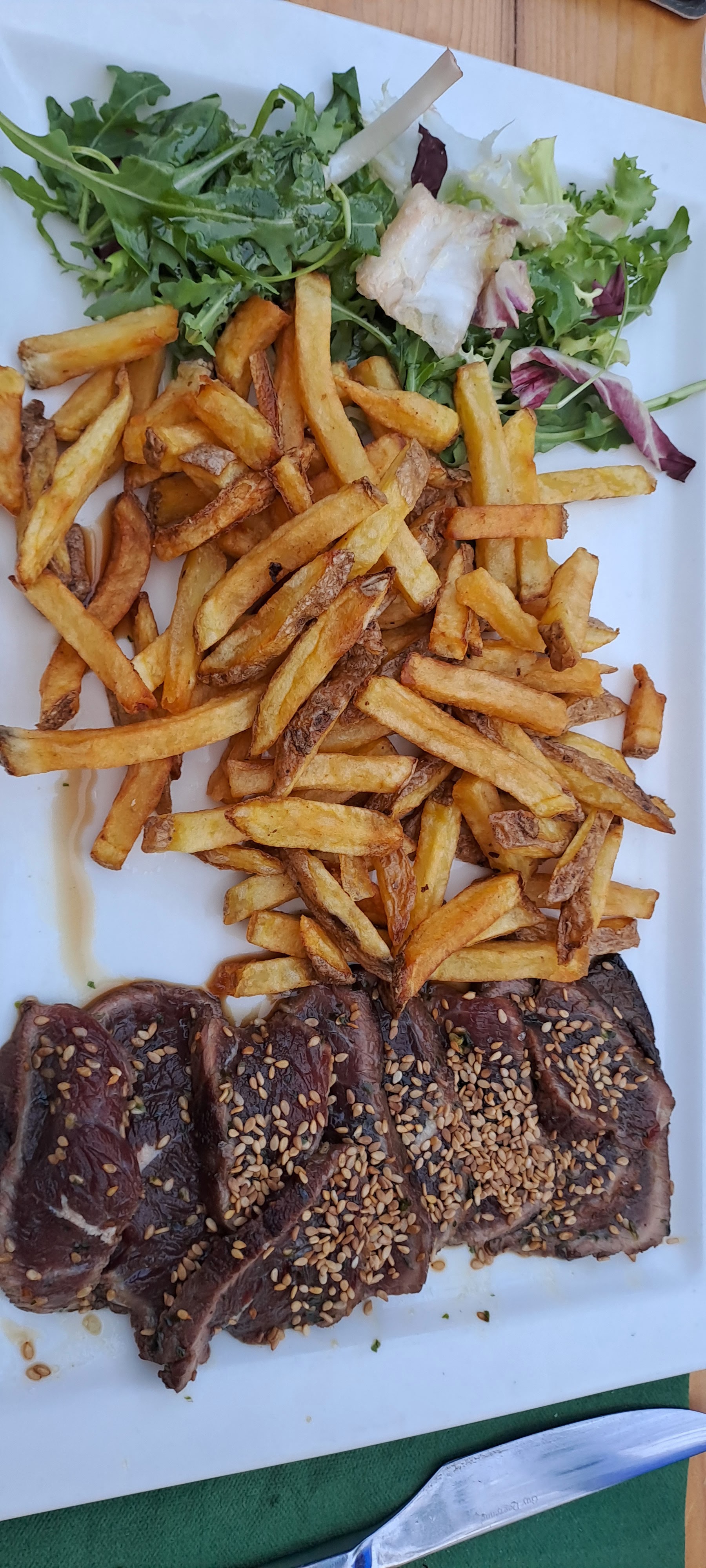 A déconseiller totalement. Aucun goût que ce soit la Viande, la salade, les accompagnements. Les apéritifs très allégés, les vins blanc et rosé chauds ainsi que le rouge. Très chers et à éviter. Piège à touristes.