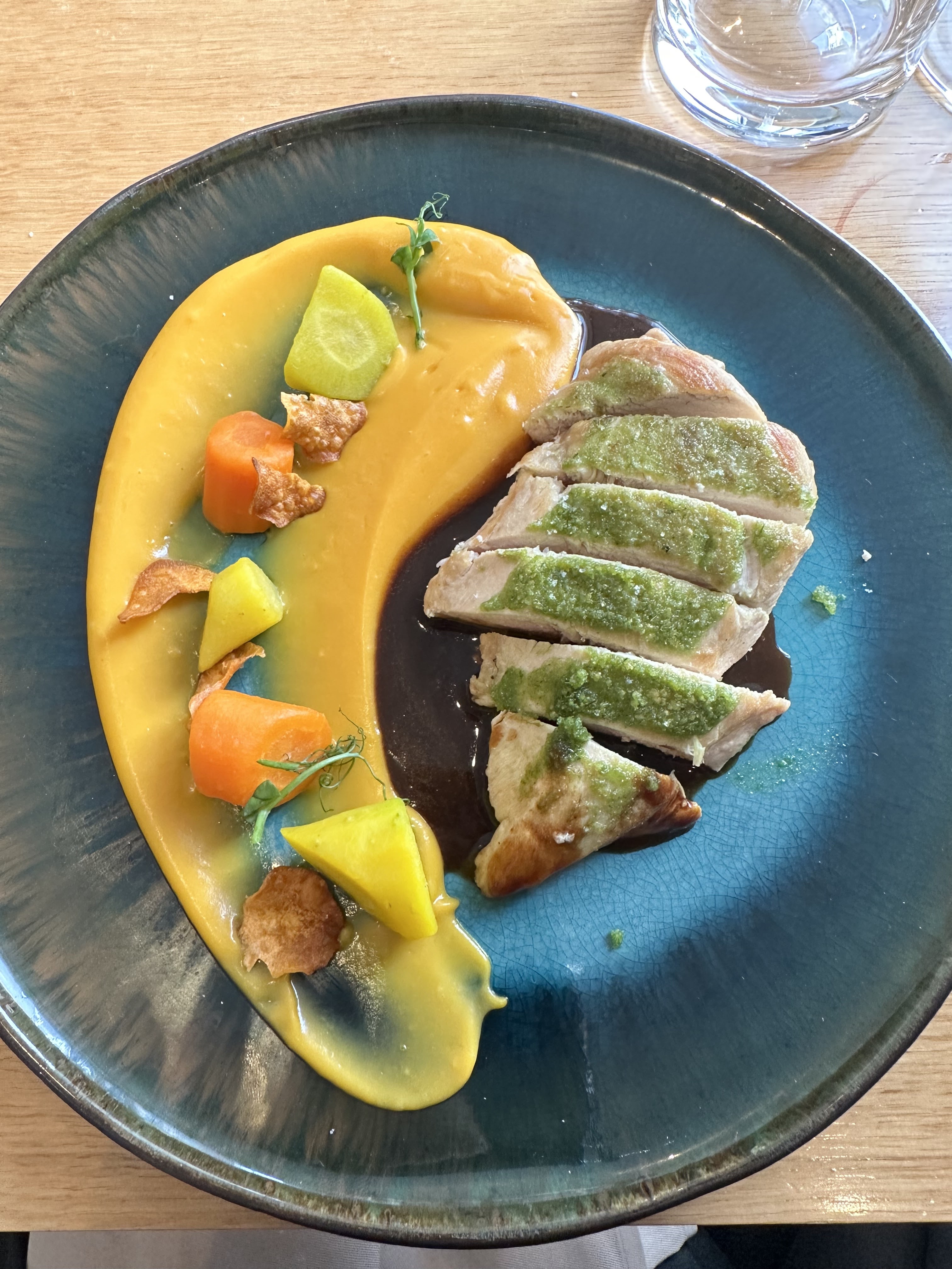 Délicatesse, inventivité, produits de saison frais, justesse des cuissons, recherche de beaux vins, ambiance cosy et jazzy, confort à table et acoustique, professionnalisme et connaissances du chef de salle pourtant encore en formation,..... Tout est aussi beau que bon ! À recommander vivement !