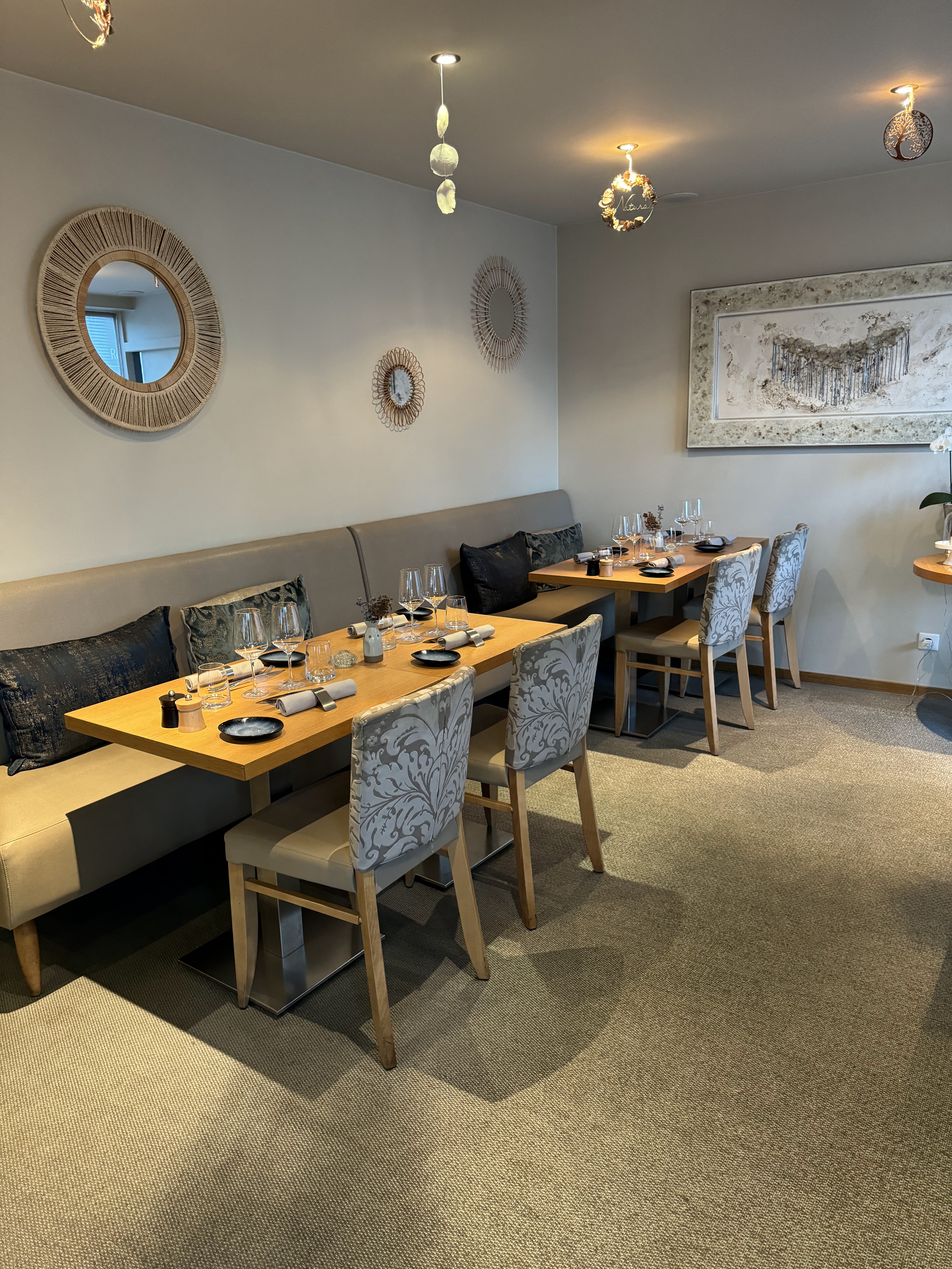 Nous avons été très agréablement surpris par ce petit restaurant moderne. Le menu était très clair, mais ne laissait rien à désirer. Le Crémant était excellent. Les plats commandés étaient excellents ! Et le service était impeccable et très attentionné et sympathique. En termes de prix, ce n'est pas donné mais ça vaut le coup. Dans l'ensemble, fortement recommandé !