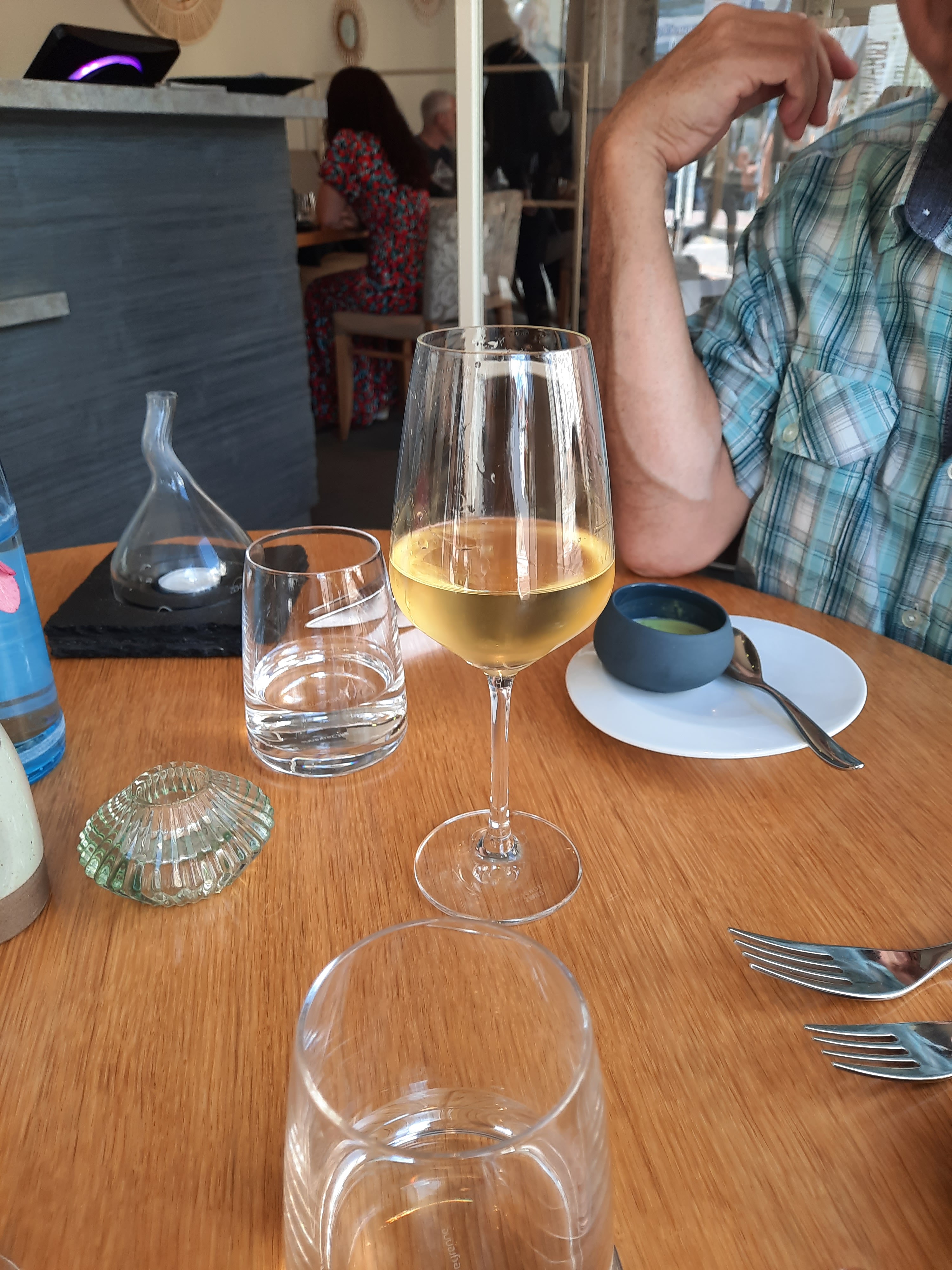 Une visite très étrange dans un restaurant. Bonne cuisine (****) mais service très faible (*). Malheureusement, les deux jeunes femmes du restaurant étaient complètement dépassées par leur tâche et n'avaient apparemment reçu aucune formation ni aucun encadrement. Ils font de nombreuses erreurs, par exemple, le vin a été versé du verre dans la bouteille. Lorsque nous avons demandé, l'employé a répondu que le vin n'était pas utilisé ! Les deux semblaient complètement indifférents, se tenant derrière un comptoir, l'air ennuyés et se chuchotant. Le vin n'était pas servi à table, mais les verres pleins étaient apportés à table (avec toute la main sur le gobelet), l'accompagnement du vin était changé sans aucun sens ni sens du vin lorsque soudain une bouteille particulière était vide. C'était comme être dans un bar de gare. Les plats et les boissons étaient servis à haute fréquence. Nous avons commandé le grand menu (apéritif, puis quatre plats avec accompagnement de vin). Le menu complet serait servi en moins de 60 (!) minutes. C’est ce qu’on appellerait du « fast food avec de la pression » mais peut-être que l’équipe avait autre chose de prévu ce soir-là ? De retour dans la rue à 20h30, nous nous sommes regardés gênés et nous nous sommes demandé ce que c'était ? Nous n’avons rien vécu de tel. Malheureusement, le gérant du restaurant n'a pas répondu à notre email pour l'instant, voici donc notre avis.
