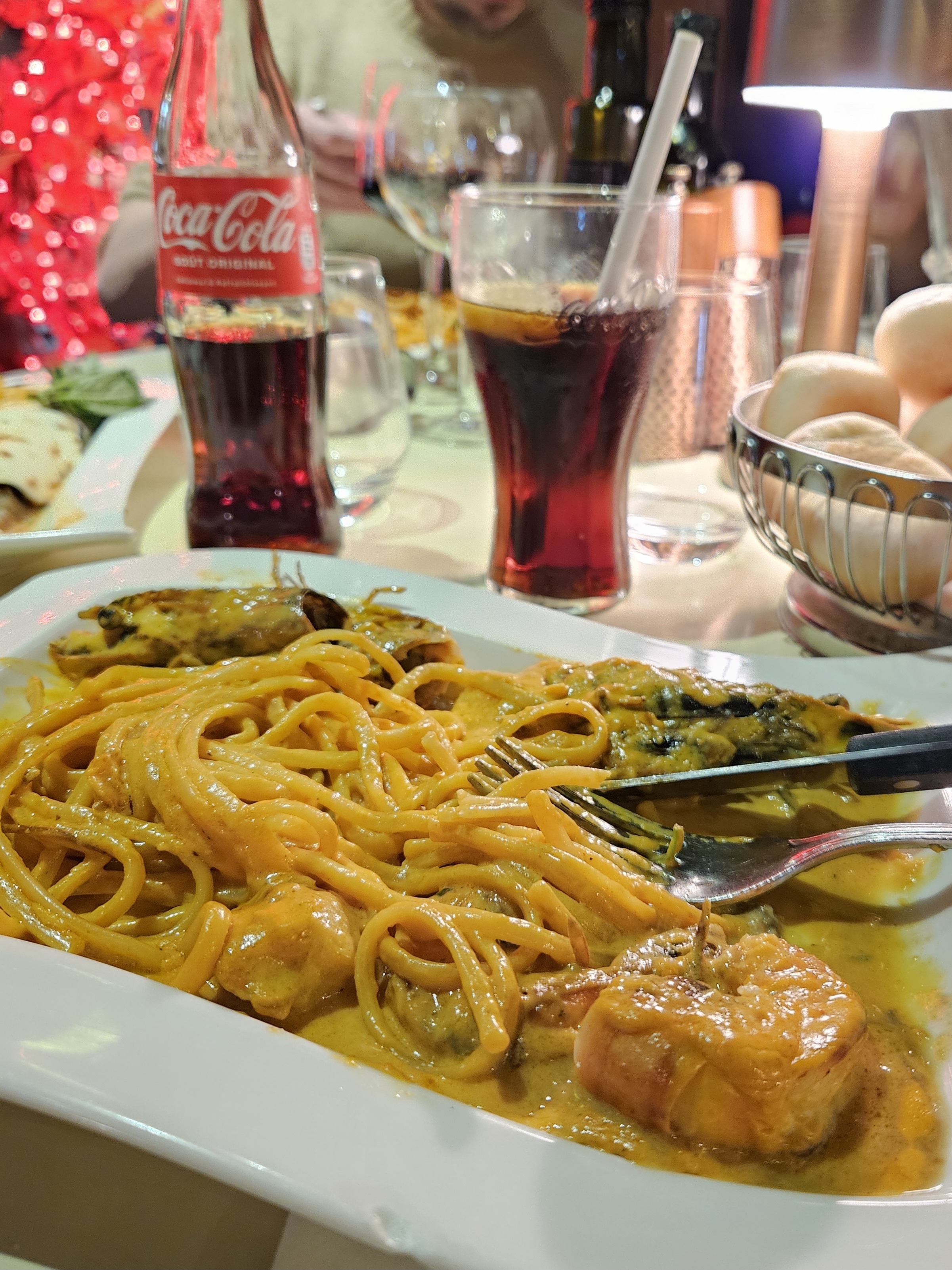 Les assiettes arrivent chargées à ras bord, promettant un festin aussi généreux que délicieux. Un conseil : essayez absolument les pâtes aux fruits de mer, un plat céleste qui ravira les amateurs de saveurs marines. L'escalope, tendre et parfaitement assaisonnée, est également incontournable. Mais peu importe votre choix, vous ne serez pas déçu – chaque création culinaire est préparée avec soin et maîtrise.