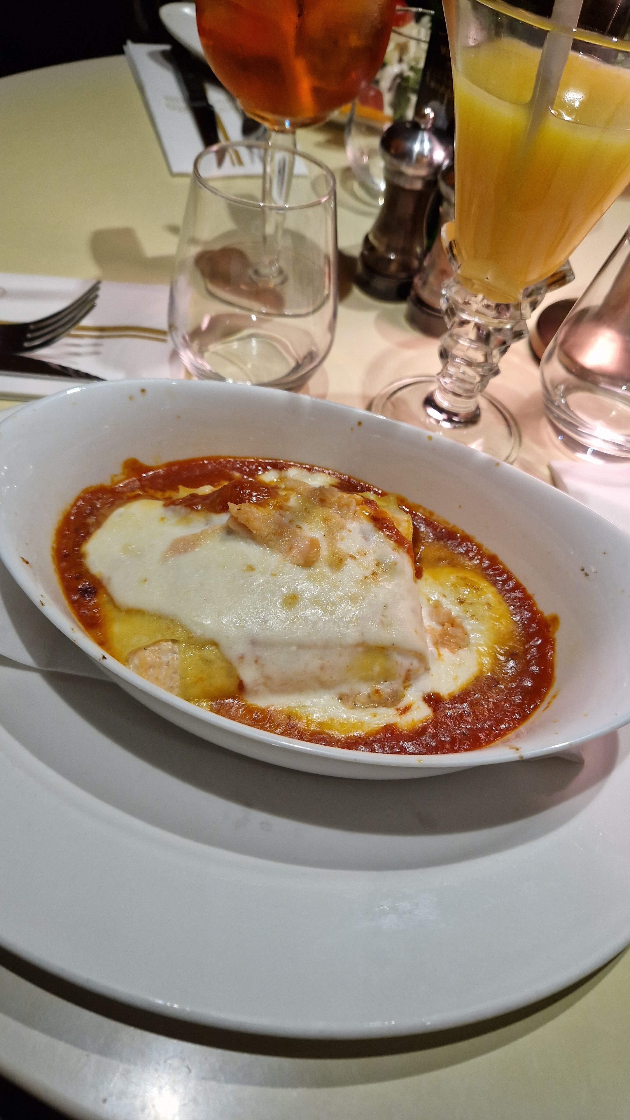 Service excellent rien à dire. Seulement , mon conjoint et moi avons été déçu du plat au cannelloni aux fruit de mer Nous avions l’habitude de prendre ce plat lorsque nous venions dans ce restaurant mais cette fois ci , nous avons pas apprécié Le goût du plat était différent que les autres fois comme ci quelque chose avait changé dans la recette , beaucoup de crème ce qui a rendu le plat un peu fade . Les tranches de lasagnes ont diminués , nous sommes restés sur notre faim. Avant c’était mieux et très succulent.