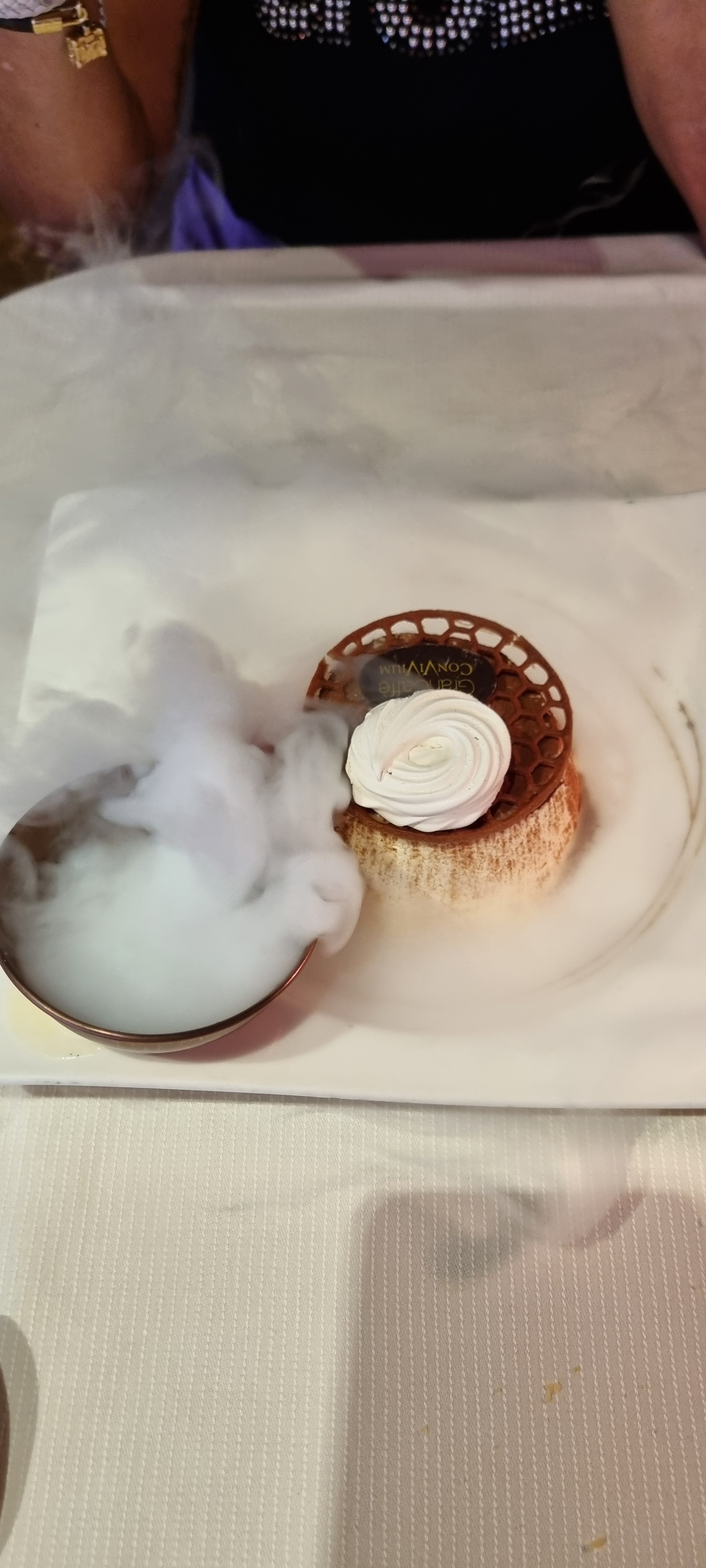 C’était trop bien du service et plat jusqu’au dessert ont a eu un petit désagrément le serveur jiji s’est occupé de nous jusqu’à la fin il été très professionnel aimable le patron été très aimable souriant il nous a offert un dessert franchement leur gentillesse et professionnalisme m’ont laissée sans mot convivium toujours au top Merci jiji merci jianni