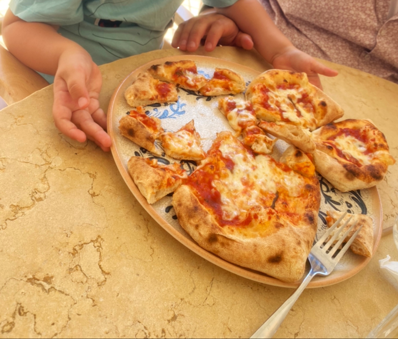 Réservation téléphonique confirmée le matin pour le soir mais elle a été oubliée, donc mangé dehors et pas vraiment chaud ! 3 apéritifs servies sur 4. Un verre ébréché. Le ticket d'envoi dans l'assiette sous la pizza. Mon fils l'a presque mangé !