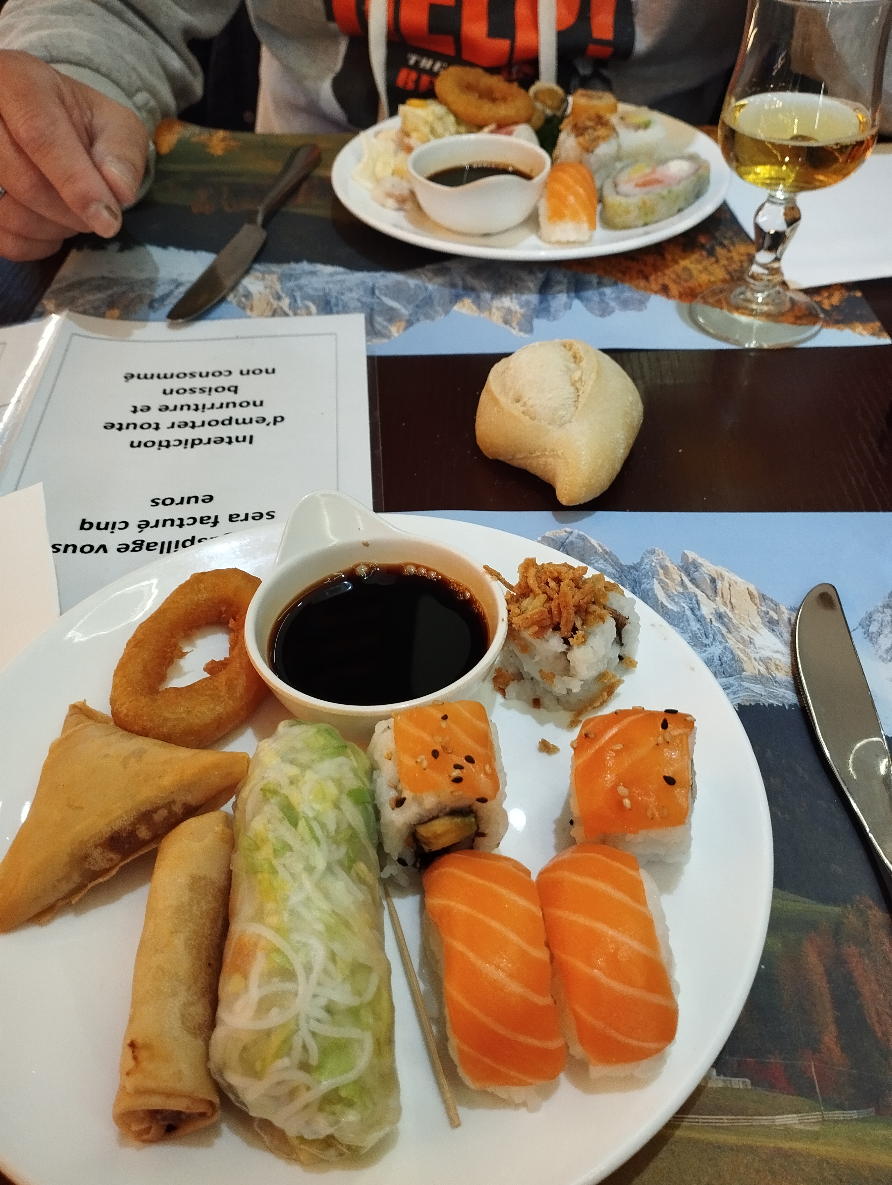 Repas décevant plats réchauffé nem trop dur les sushis non pas de goût saumon plein de flotte pas assaisonné. Riz cantonnés sans goût . Décevant ils on énormément perdu de qualité depuis leurs ouvertures. DOMMAGE !!!